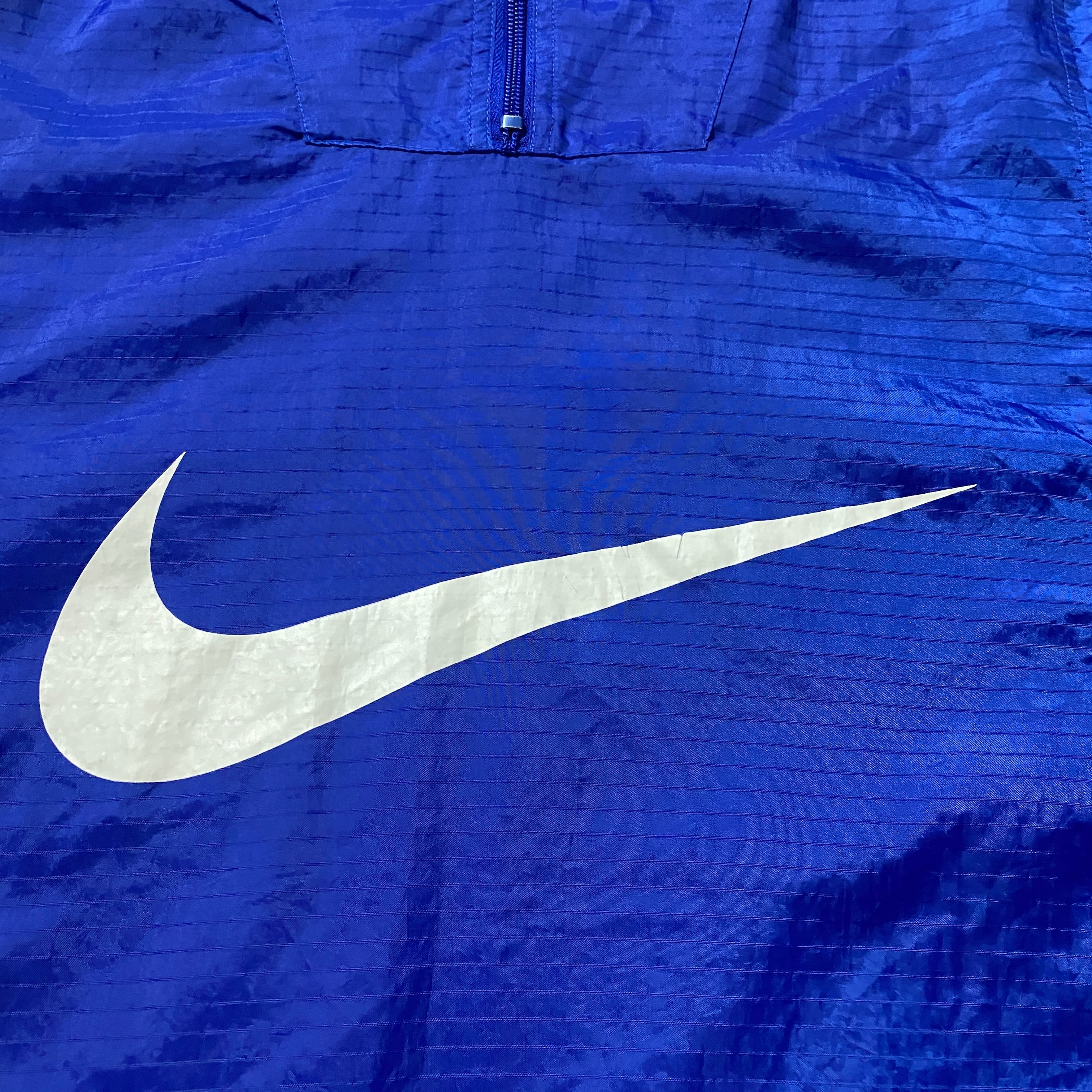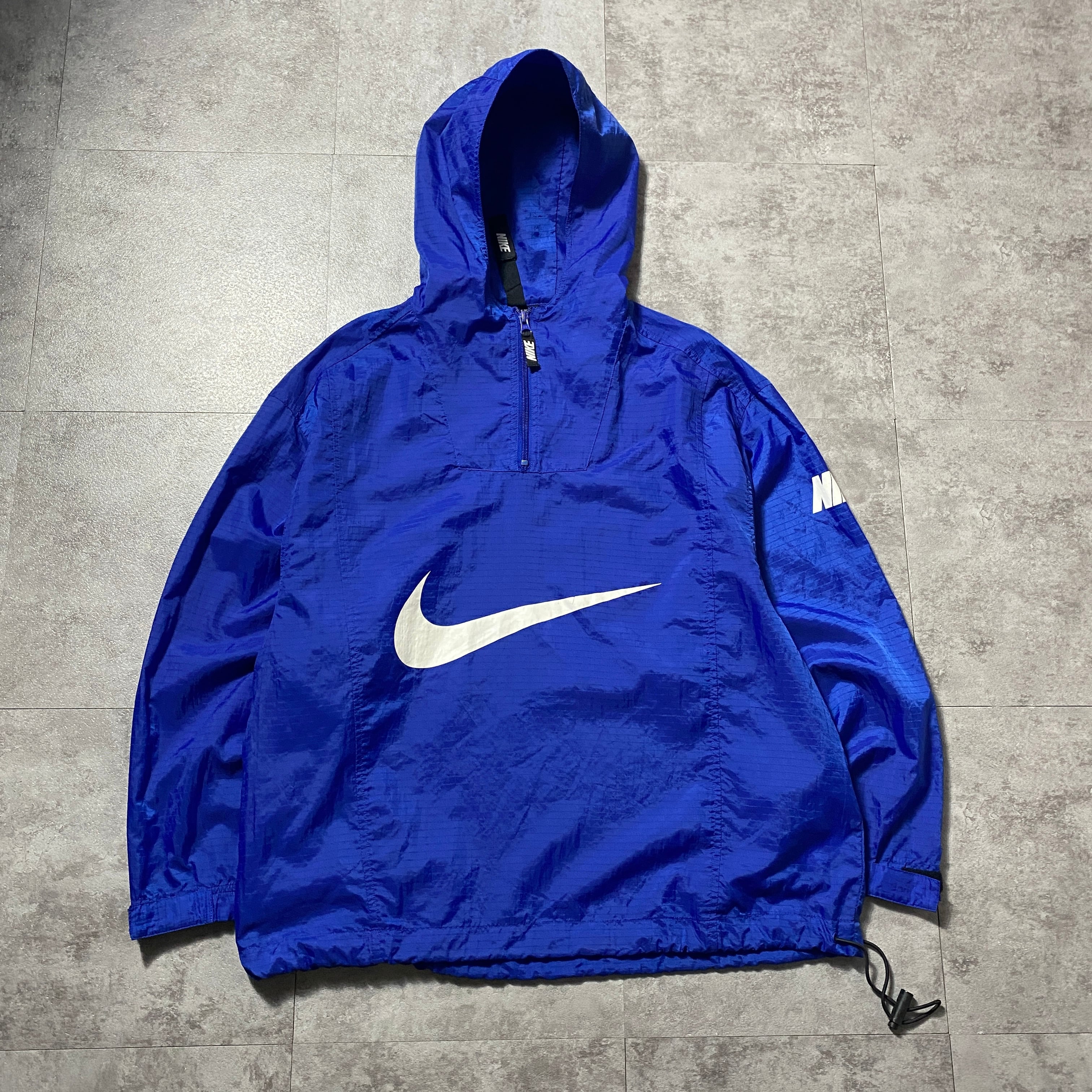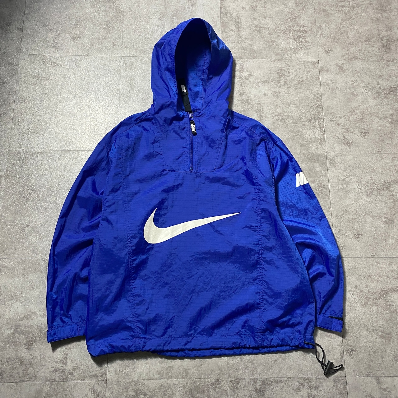 90's NIKE ナイキ ビックスウォッシュ 両面プリント ハーフジップ ブルー 薄手 ナイロン アノラックパーカー