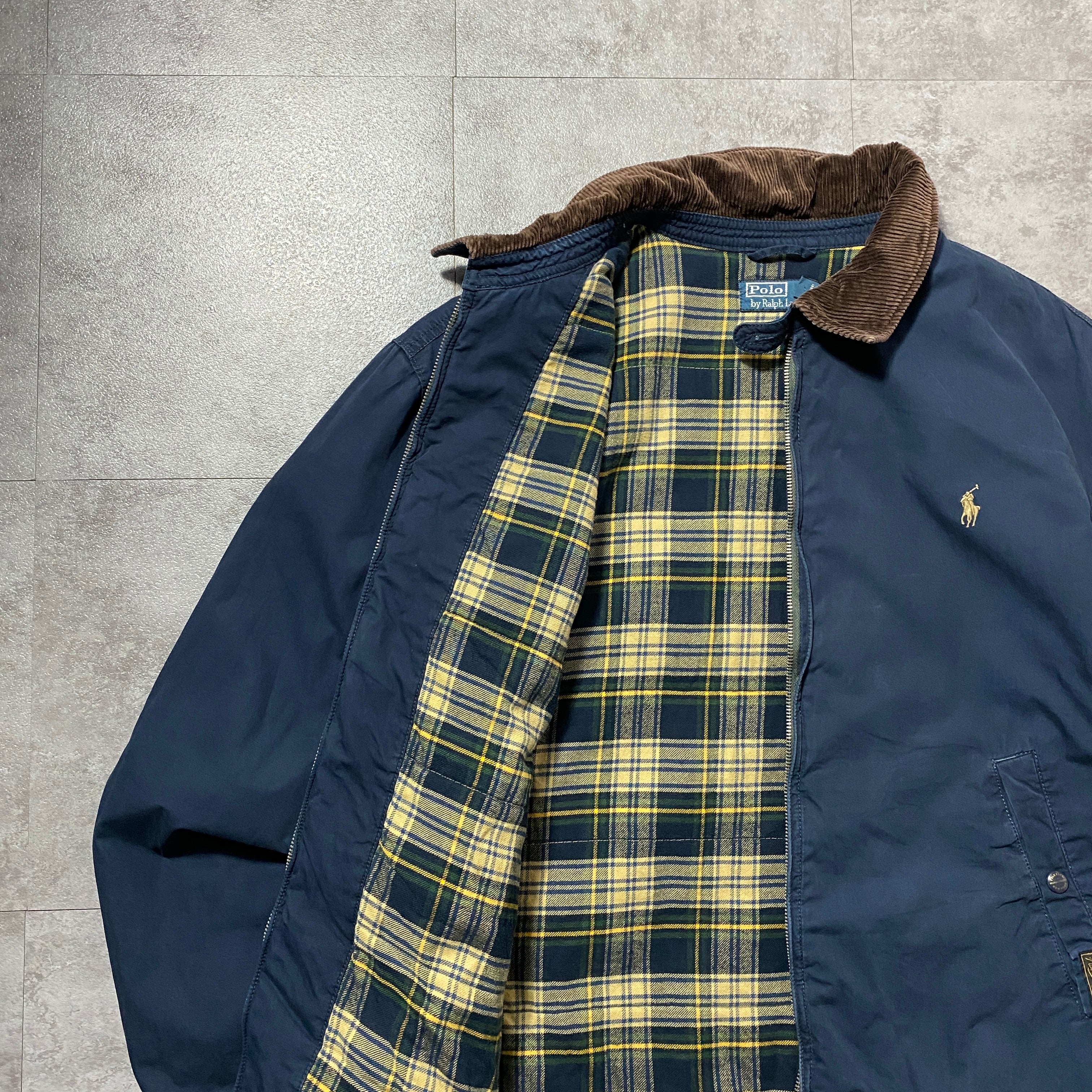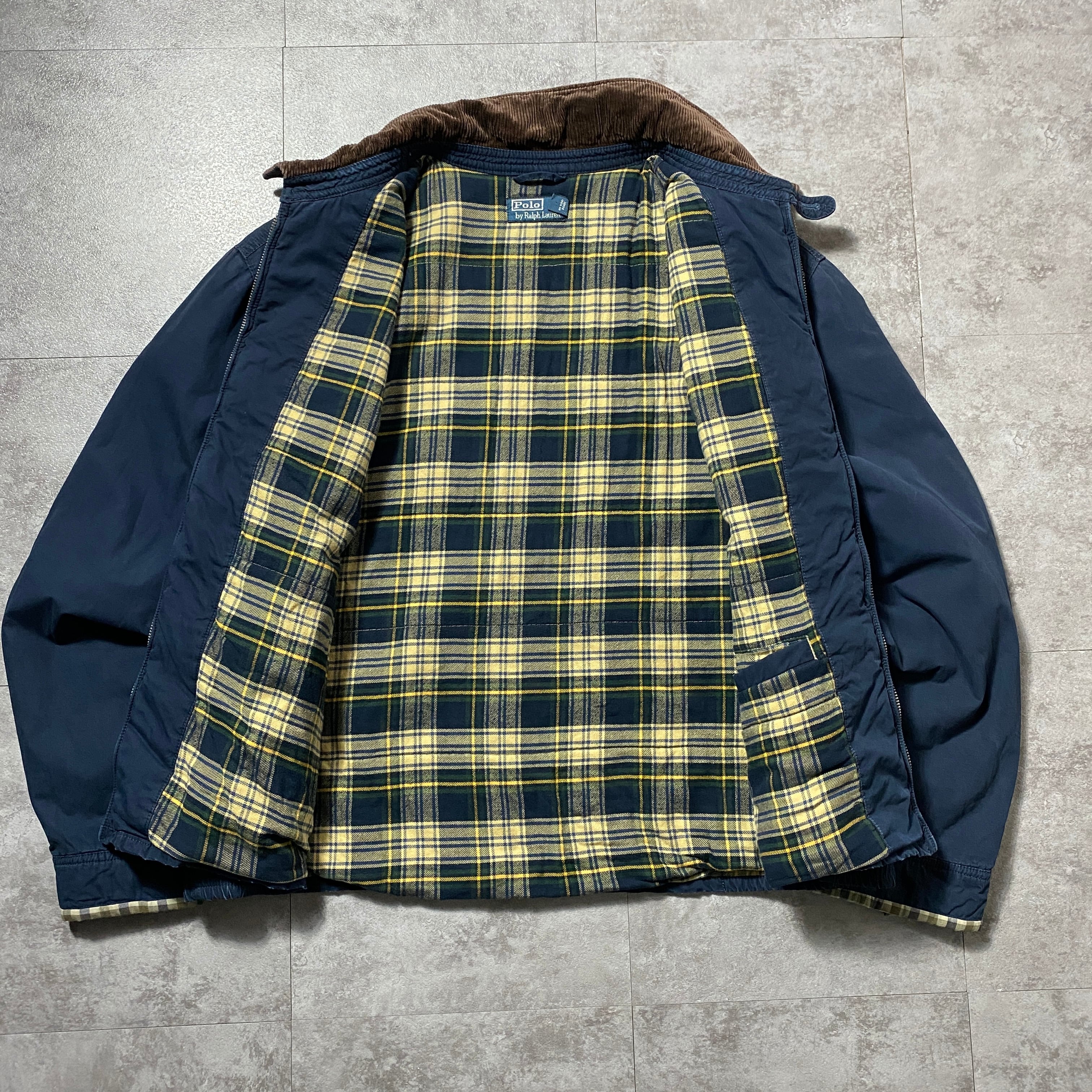 【Size.XXL】Polo by Ralph Lauren ポロバイラルフローレン 刺繍ロゴ ポニー チェックライナー コーデュロイ襟 中綿ジャケット ブルゾン