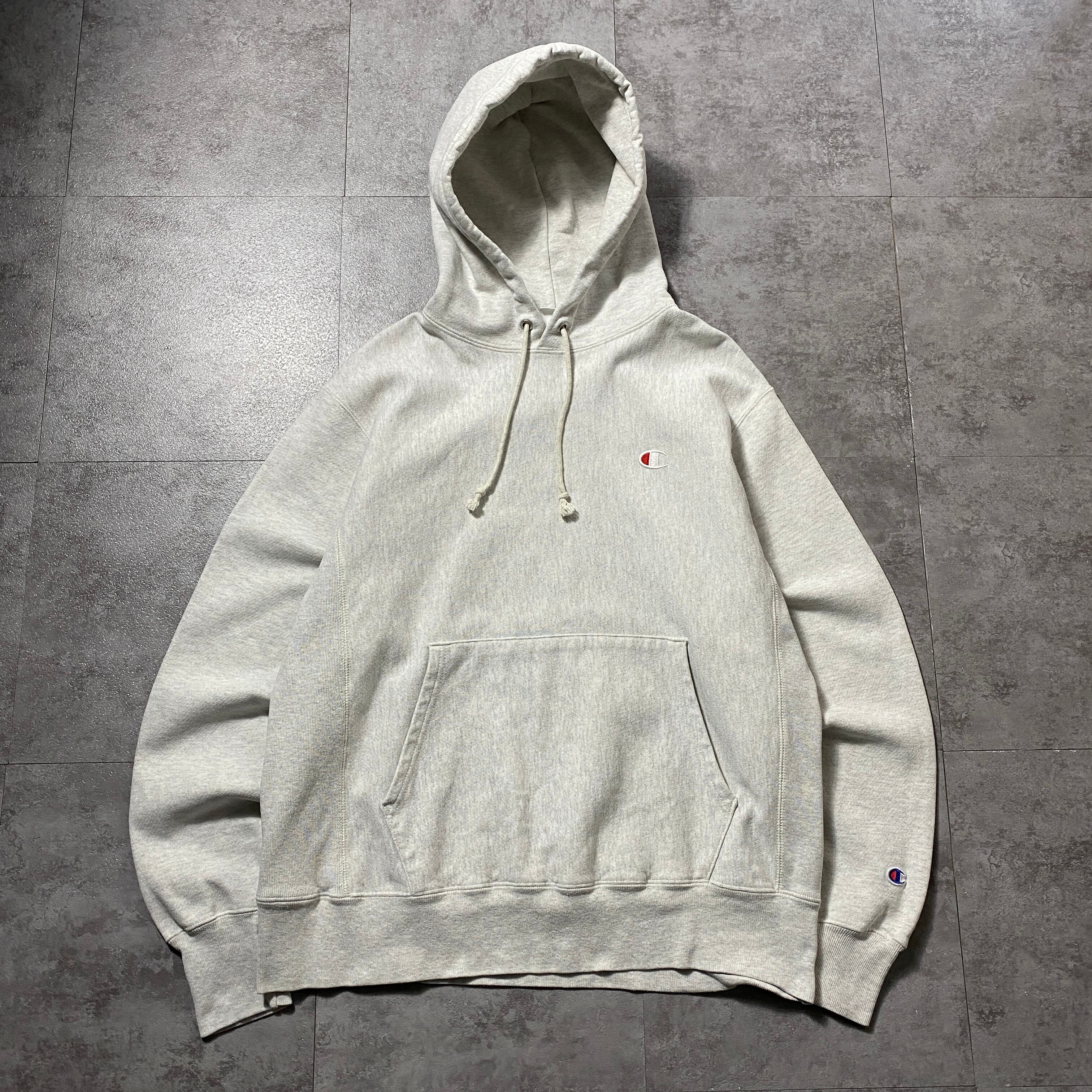 00's Champion チャンピオン リバースウィーブ 刺繍ワンポイント ヘビーオンス グレー スウェット パーカー