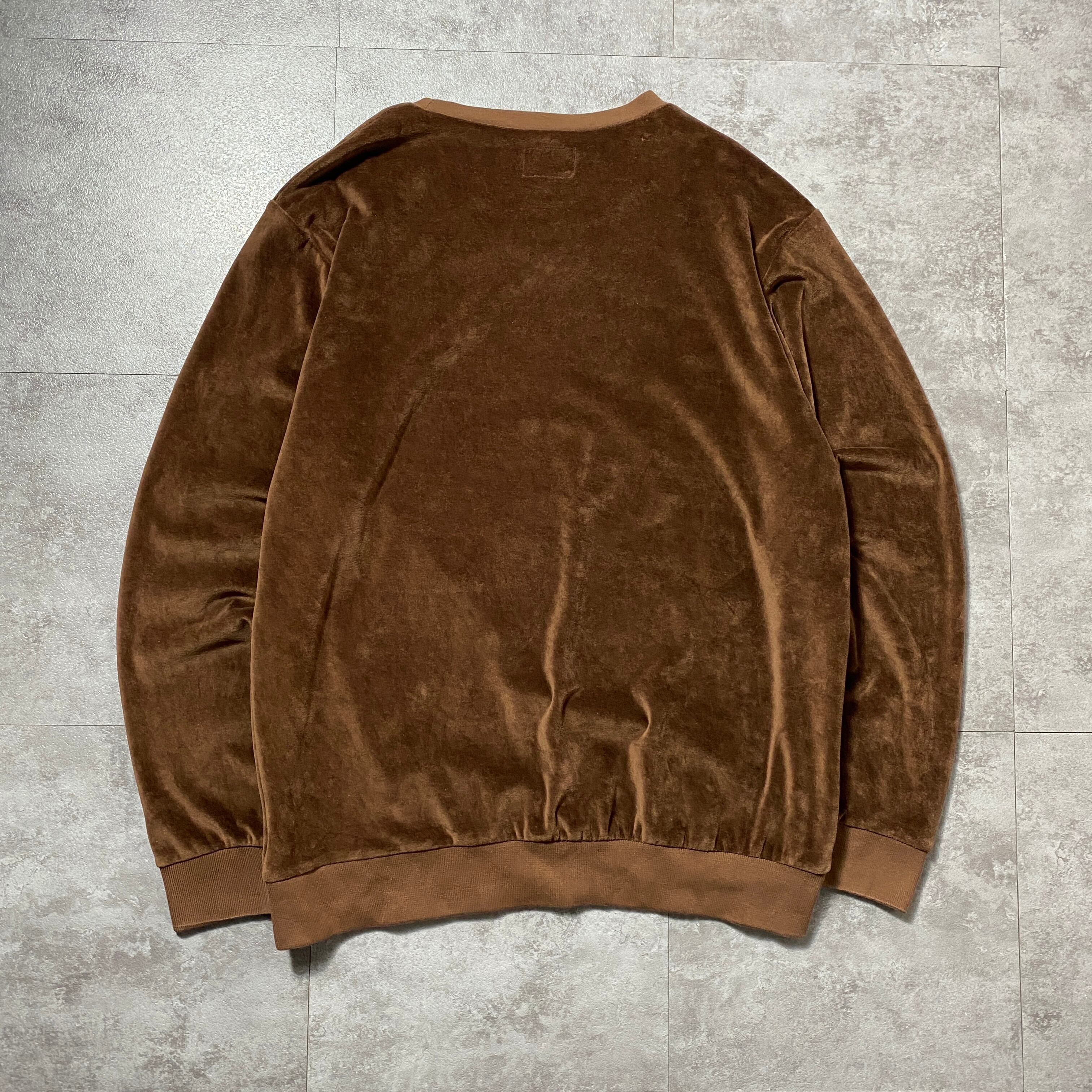 stussy ステューシー ベロア生地 刺繍ワンポイント ストックロゴ ブラウン スウェット トレーナー