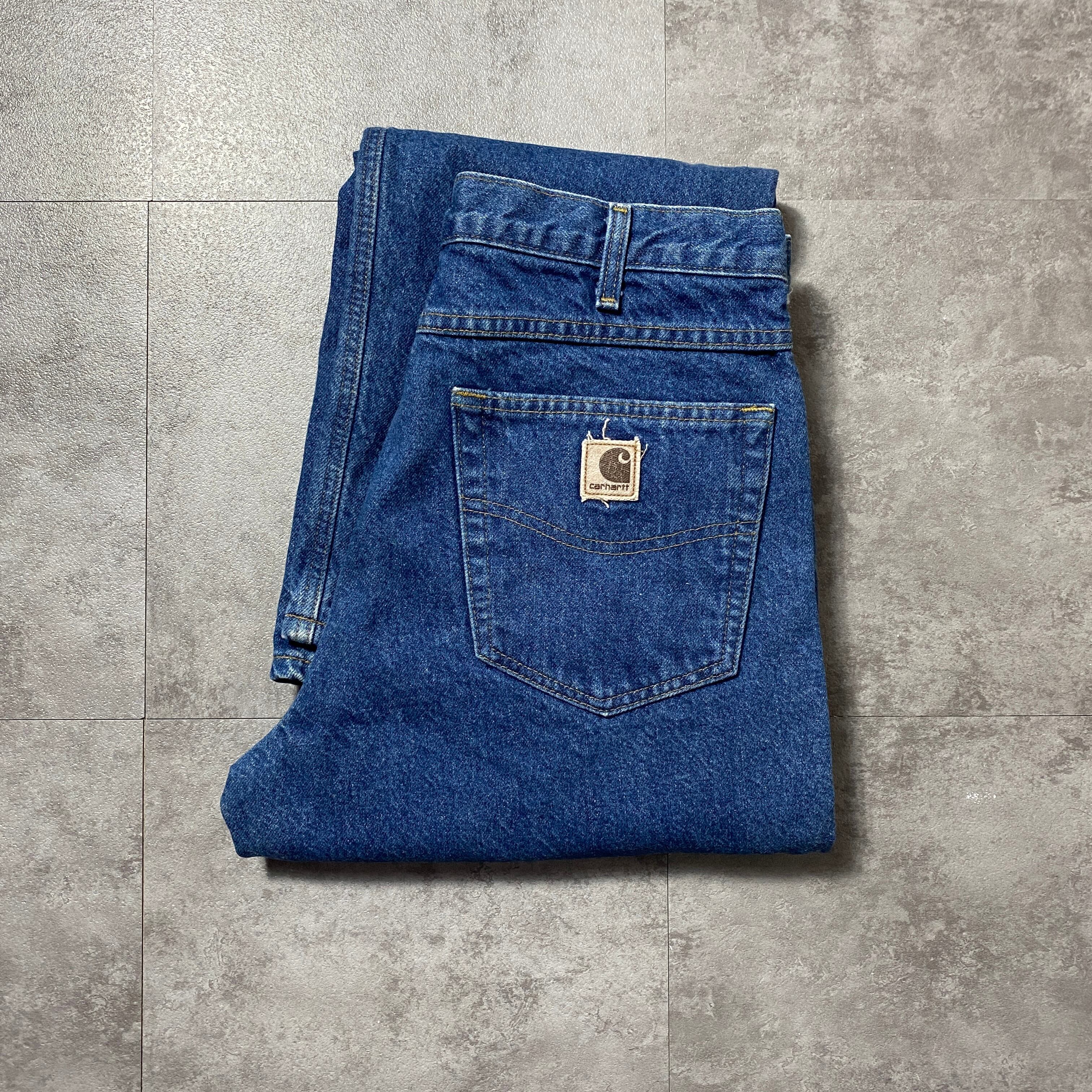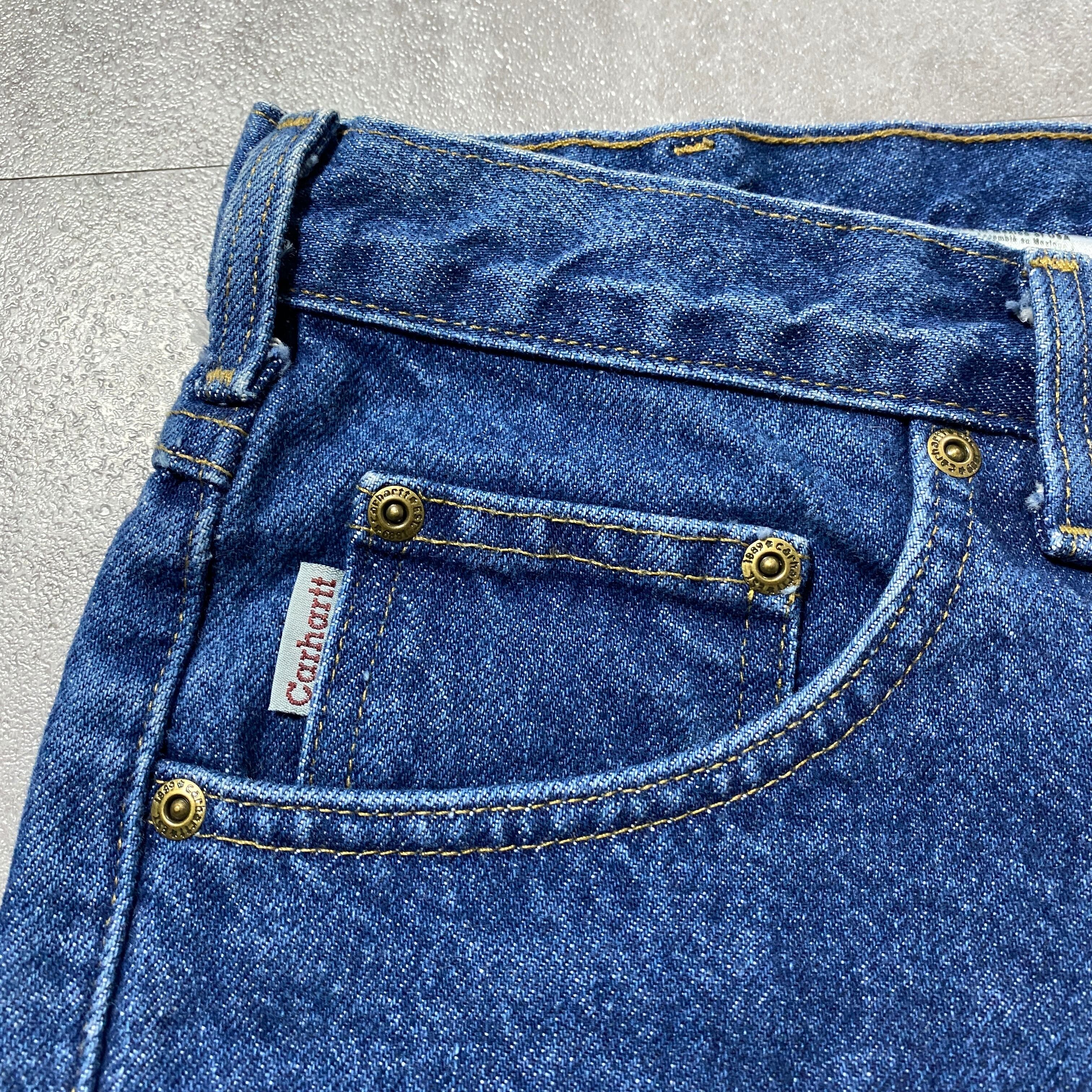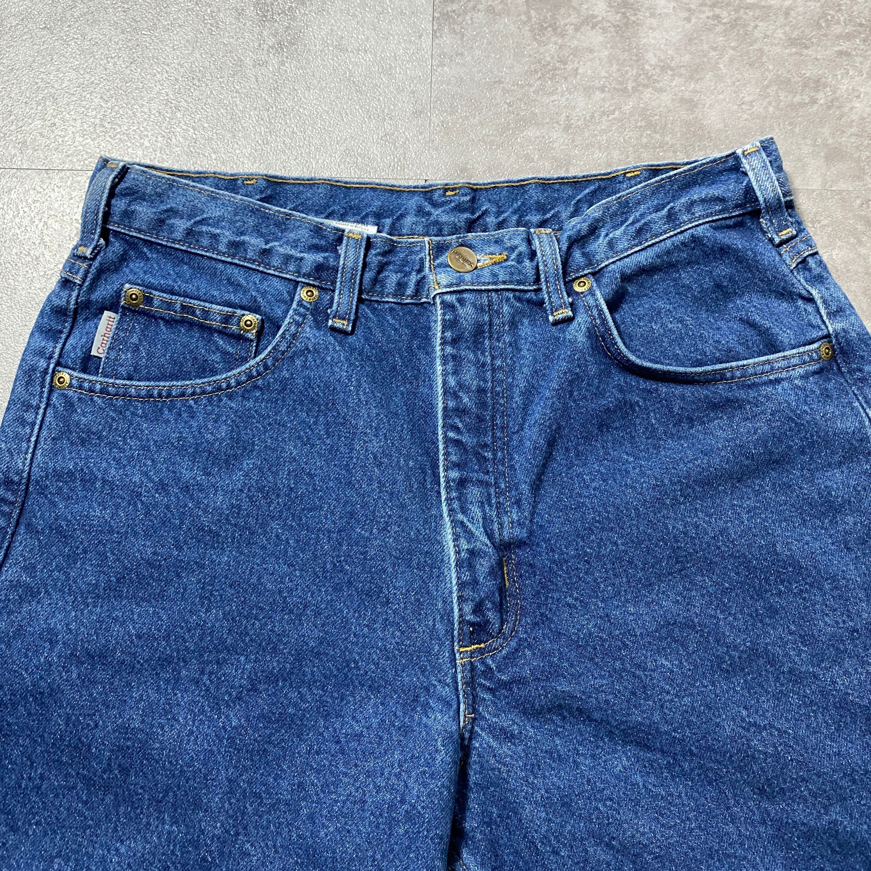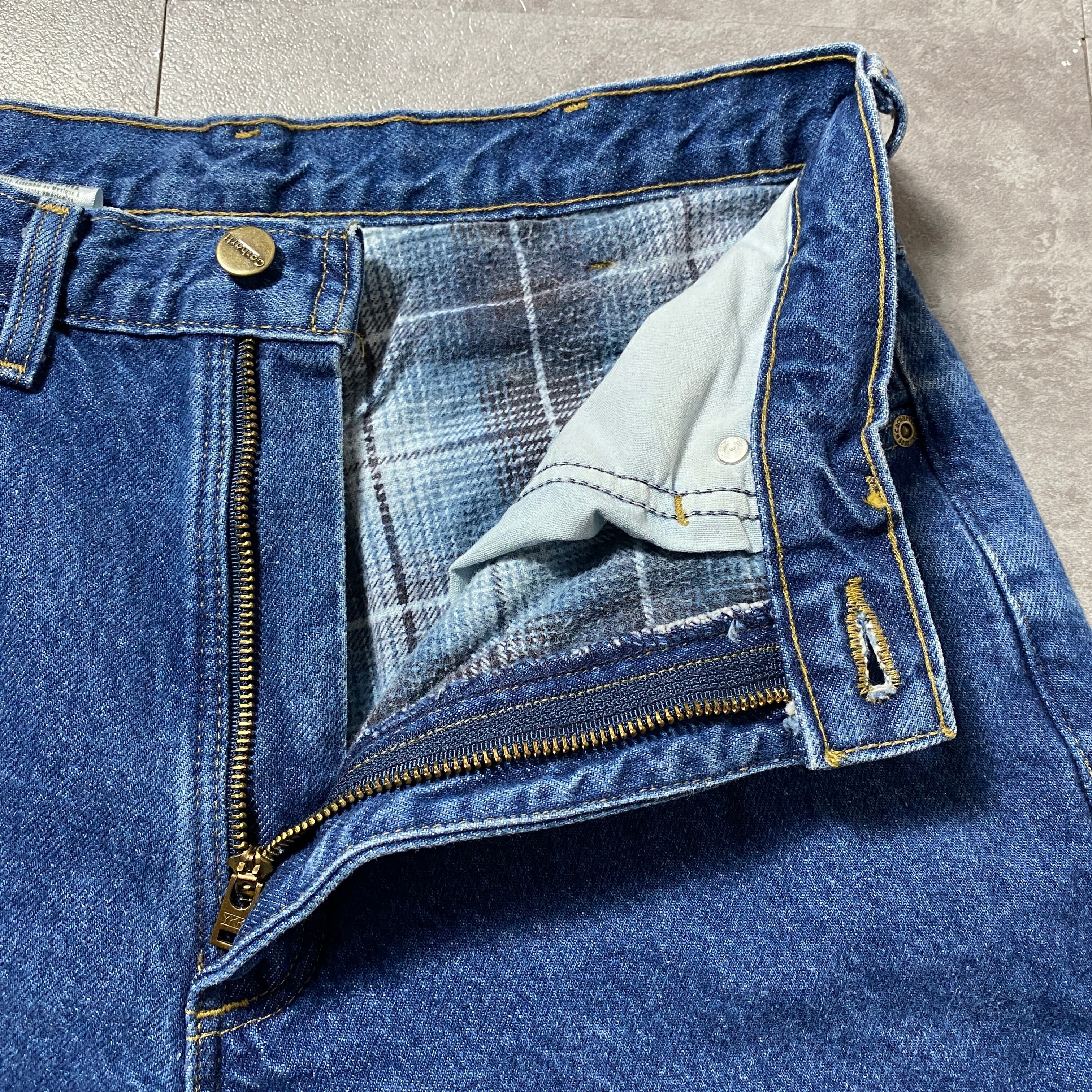【32×32】00's carhartt カーハート ジッパーフライ チェックライナー 濃紺 デニムパンツ