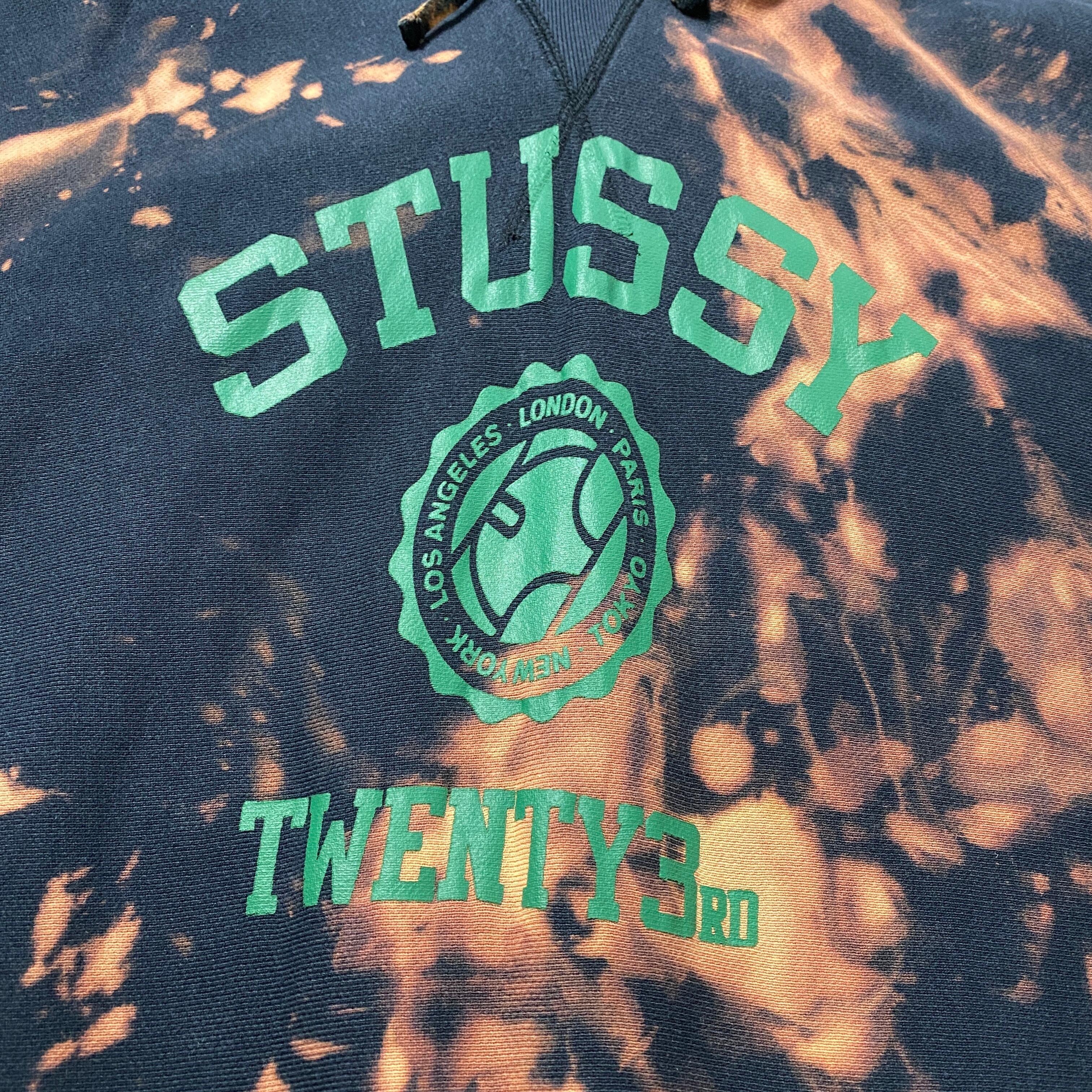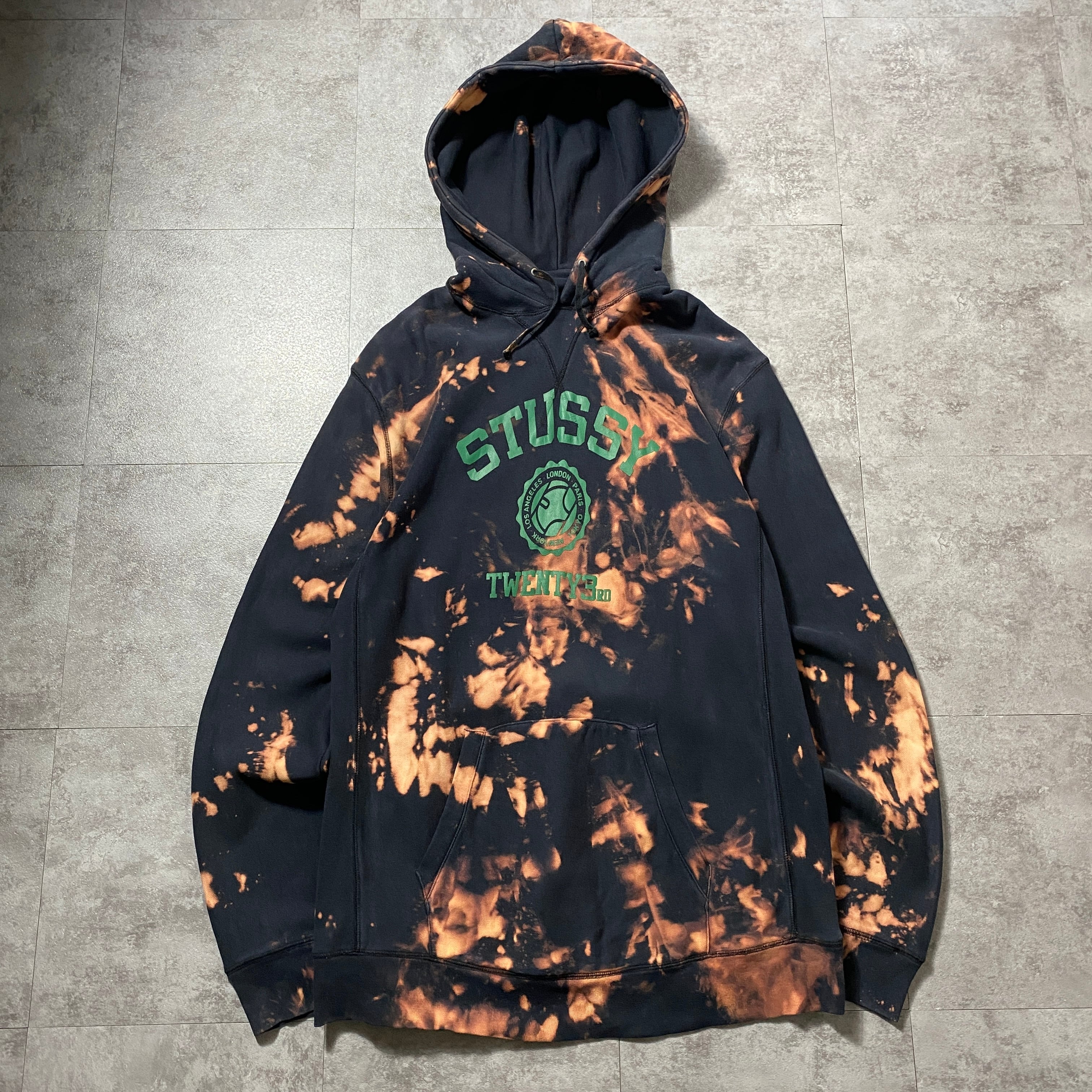 【Size.XL】 00's stussy ステューシー カレッジロゴ風プリント リバースウィーブ ブリーチ加工 スウェット パーカー