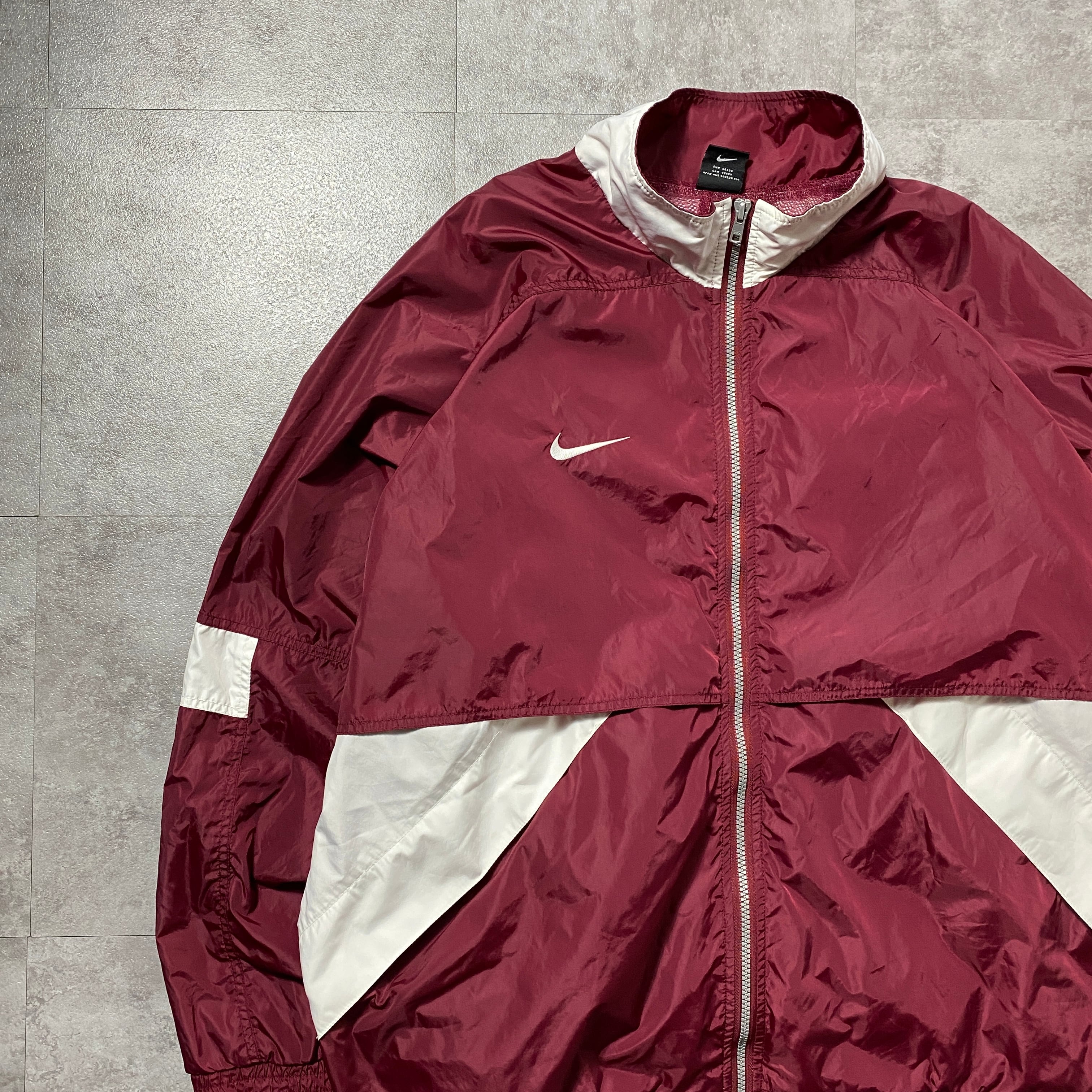 90's NIKE ナイキ スウォッシュ 刺繍ロゴ ワインレッド ナイロンジャケット