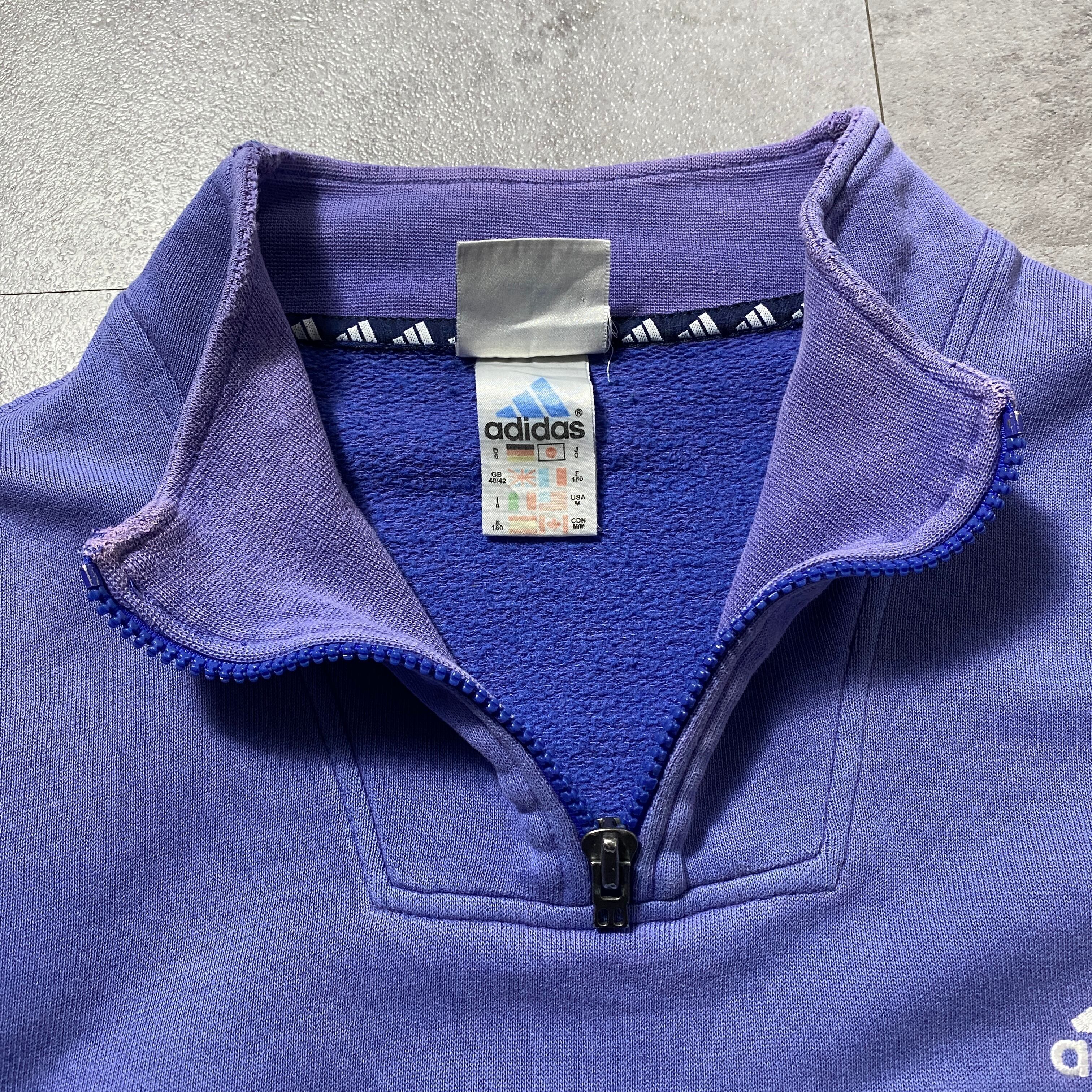 90's adidas アディダス ハーフジップ 刺繍ワンポイント パープル スウェット トレーナー