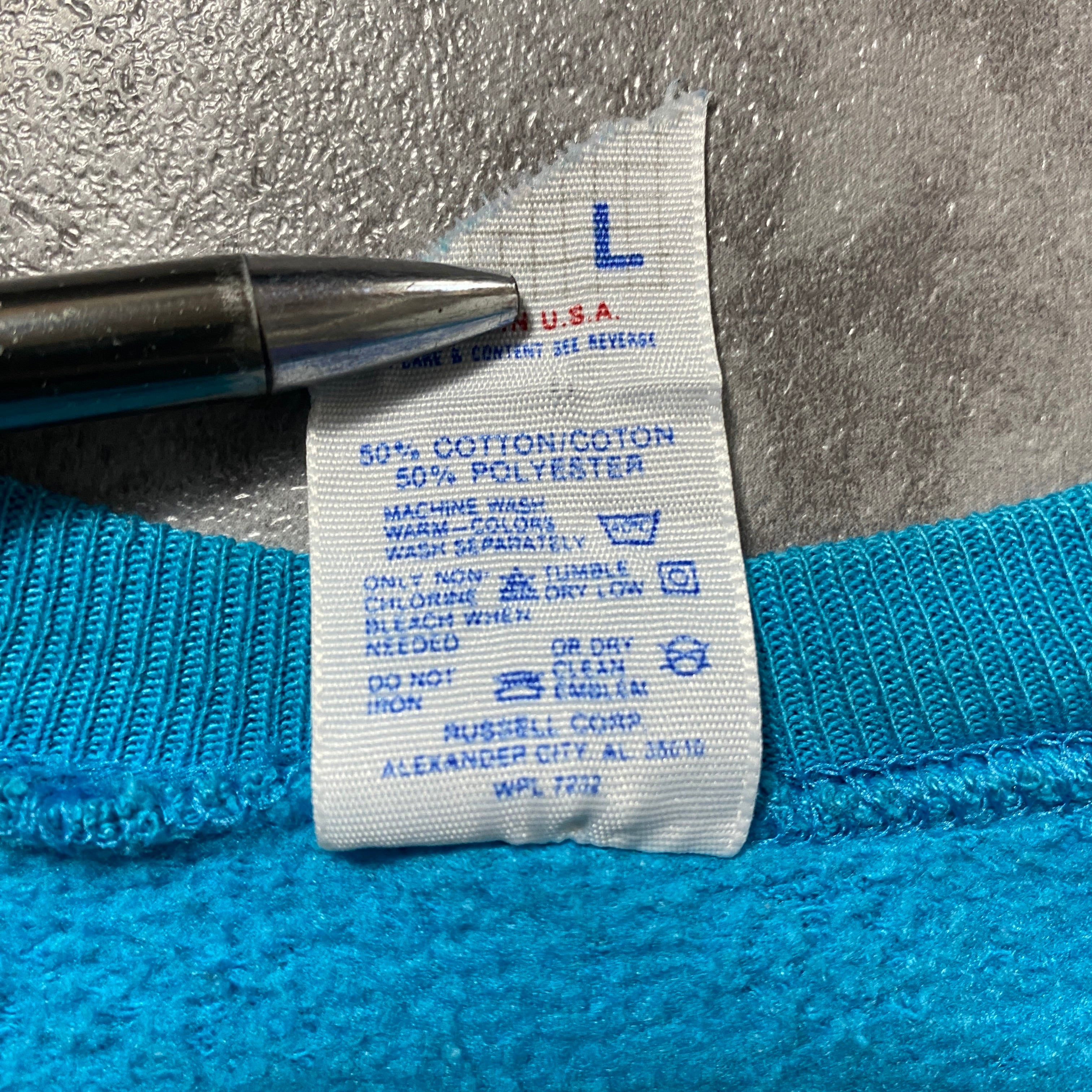 【USA製】90's NIKE ナイキ ブート ジャージーズボディ スウォッシュ プリント ブルー スウェット トレーナー ビンスエ
