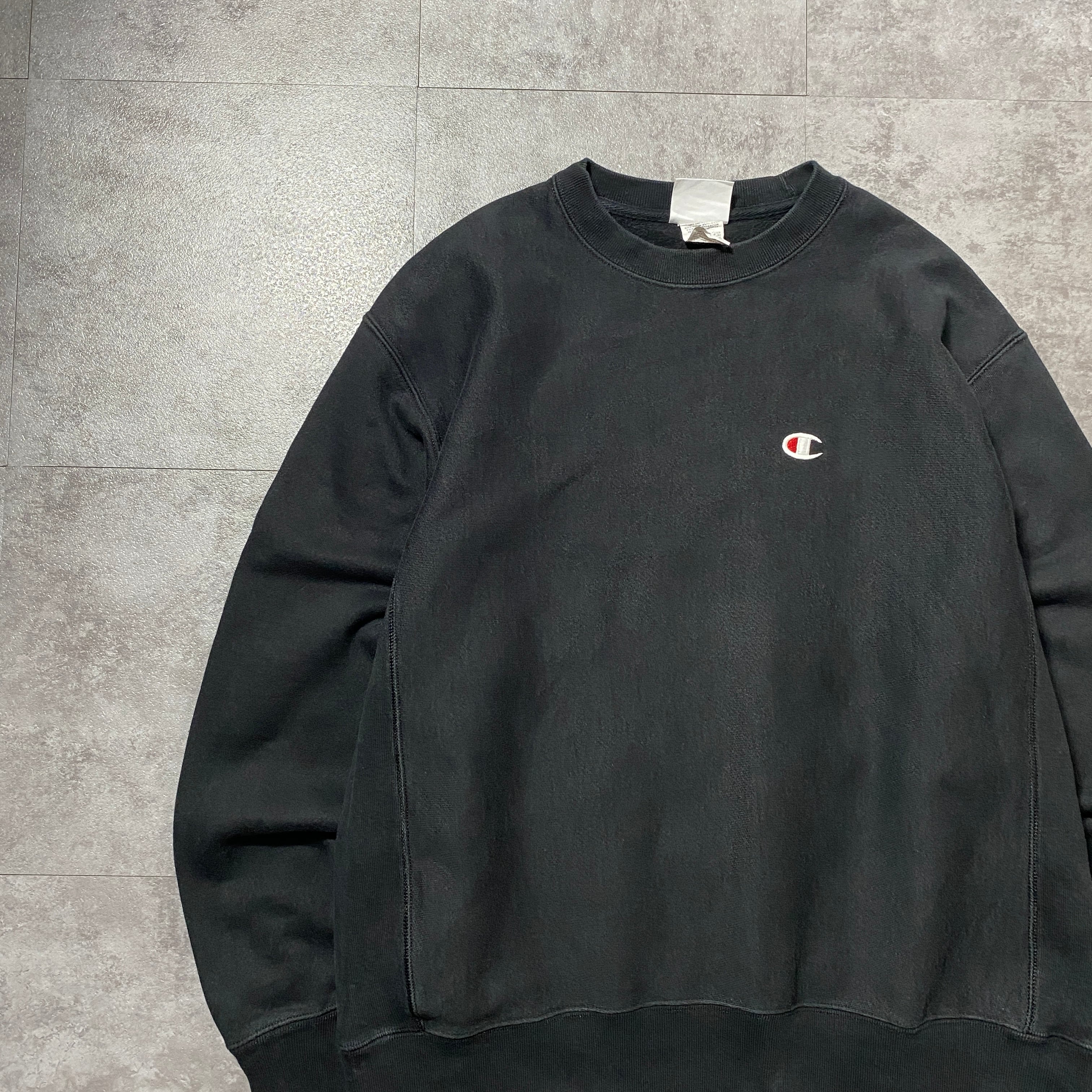 00's Champion チャンピオン リバースウィーブ 刺繍ワンポイント ヘビーオンス ブラック 黒 スウェット トレーナー