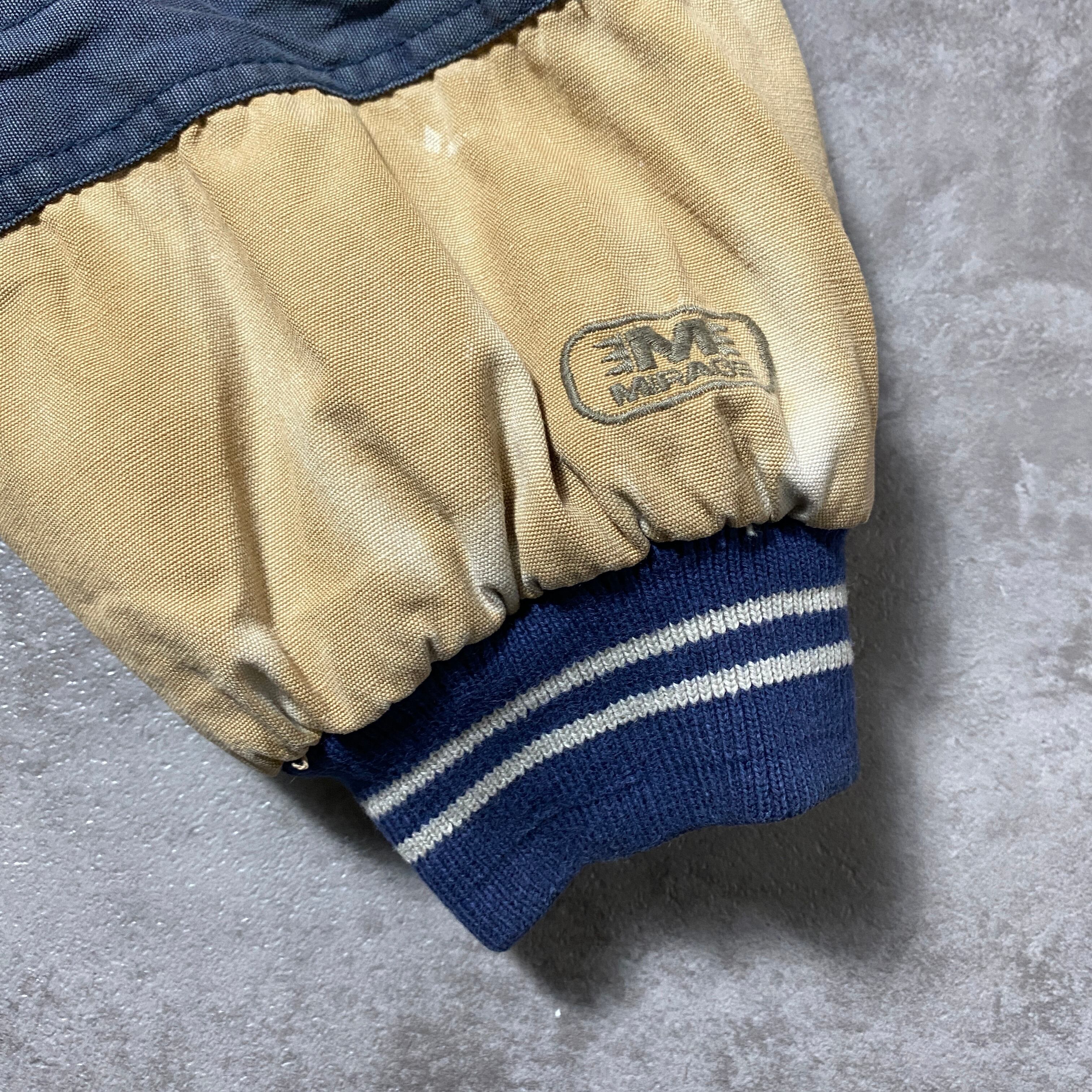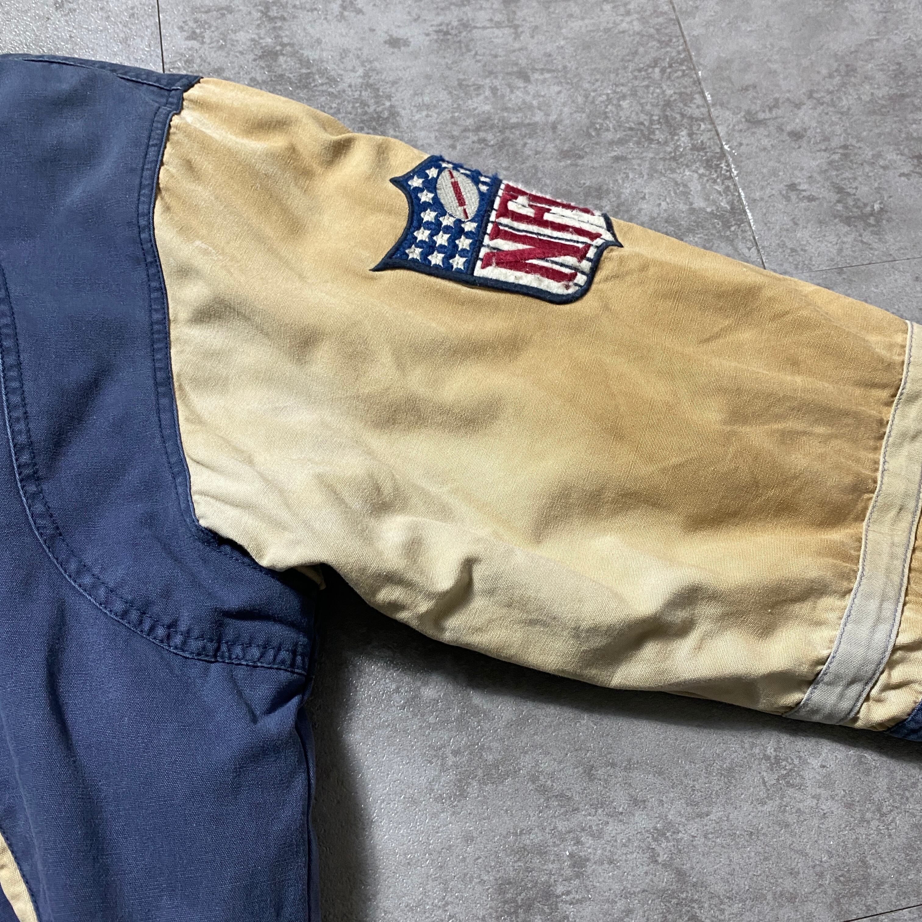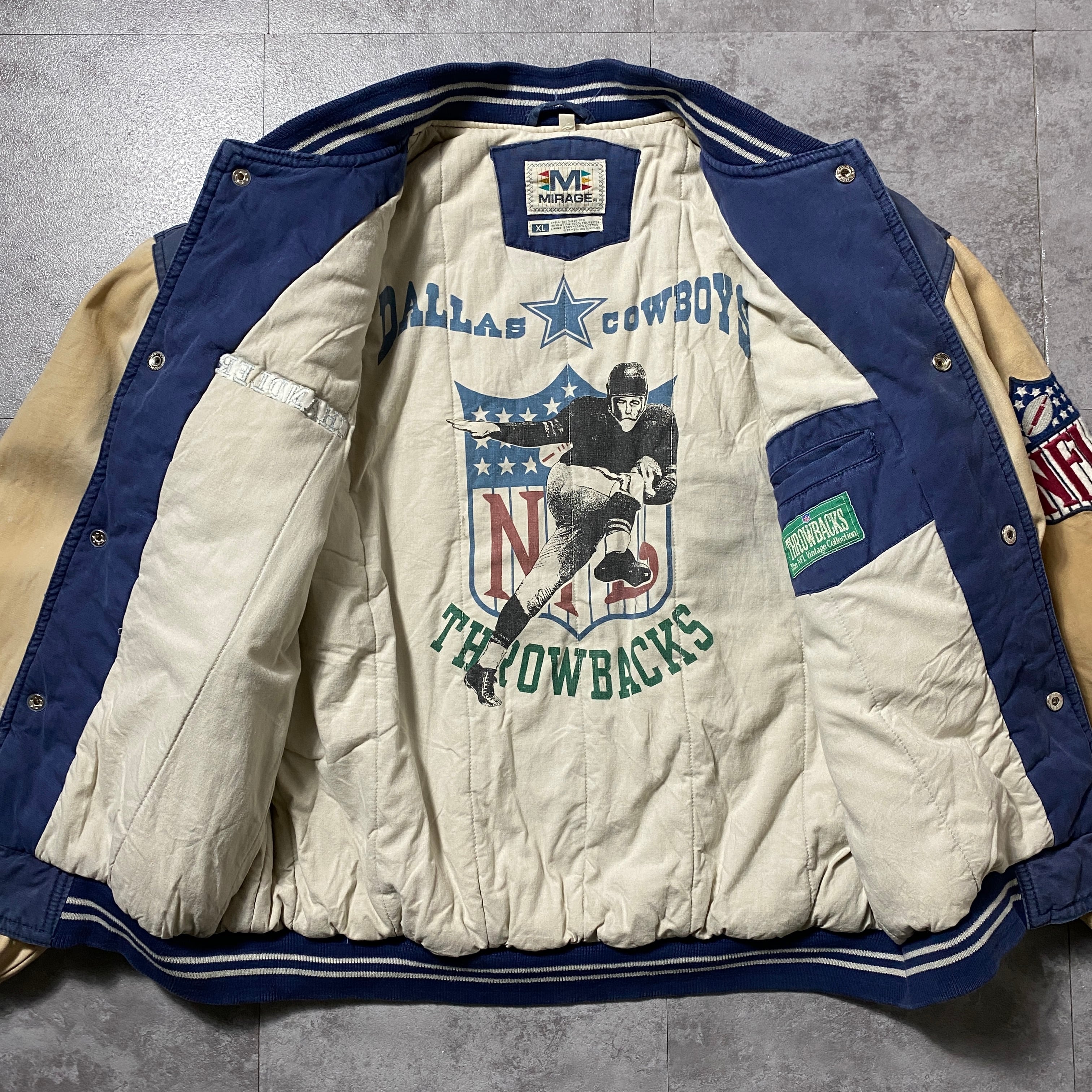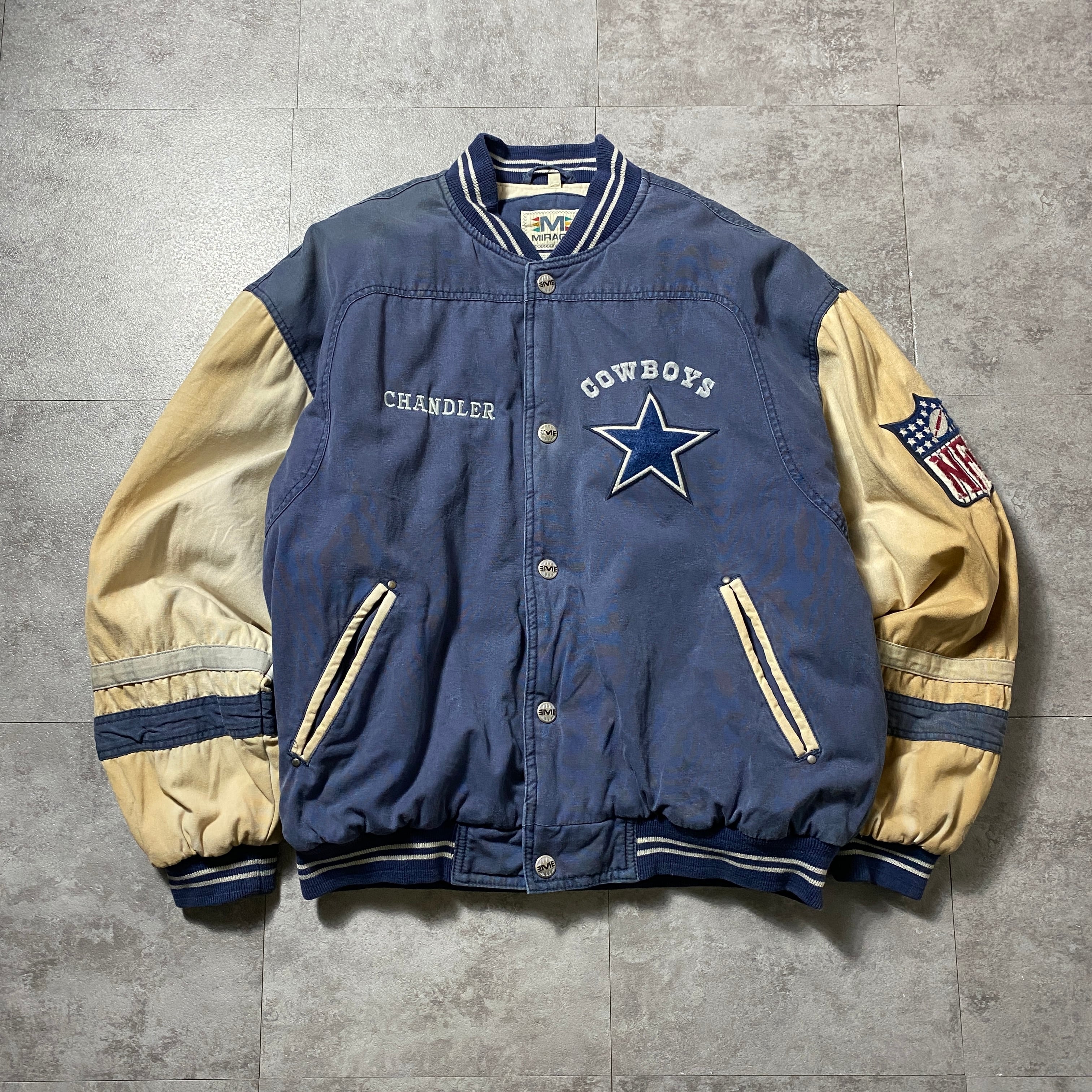 【Size.XL】90's NFL ダラス・カウボーイズ 刺繍バックロゴ ラインリブ 中綿 スタジャン スタジアムジャンパー