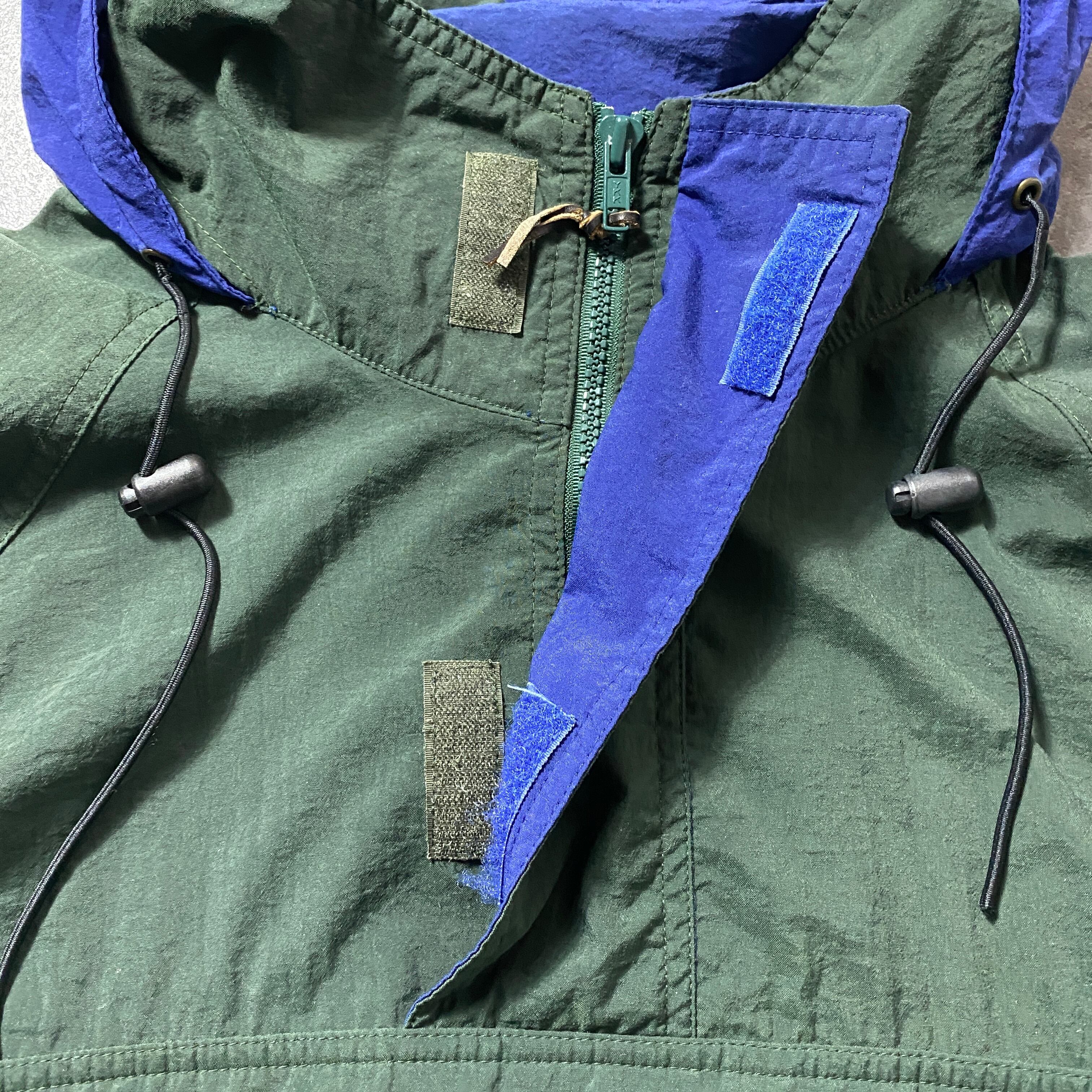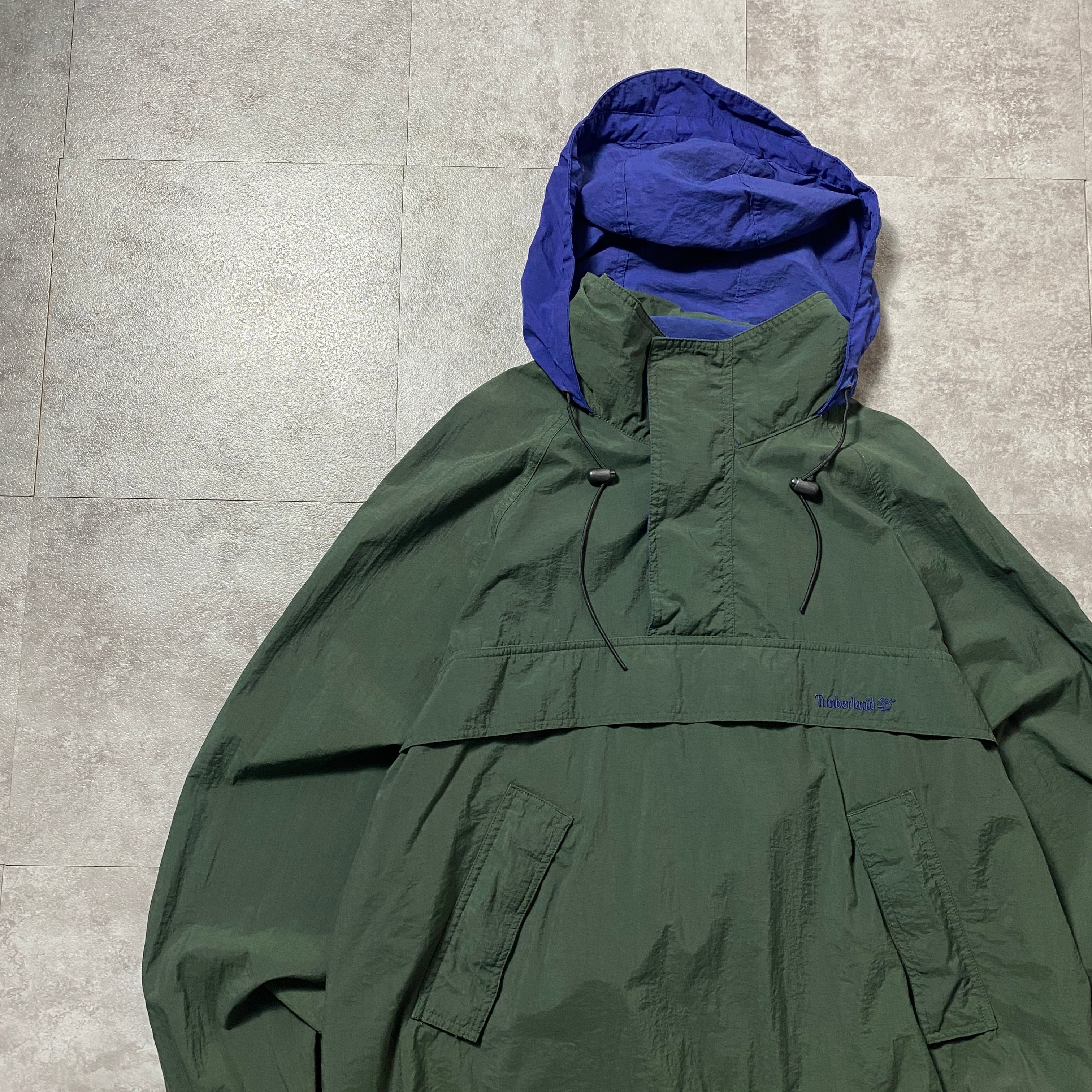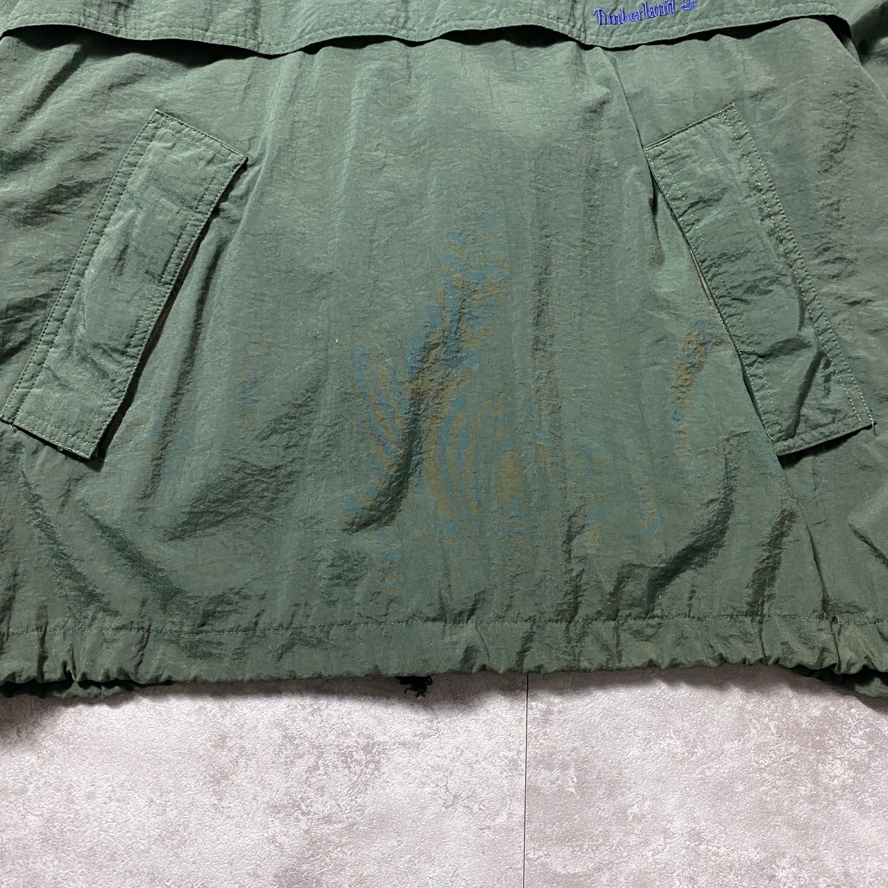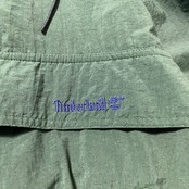 90's Timberland ティンバーランド 刺繍ワンポイント ハーフジップ グリーン ナイロン アノラックパーカー
