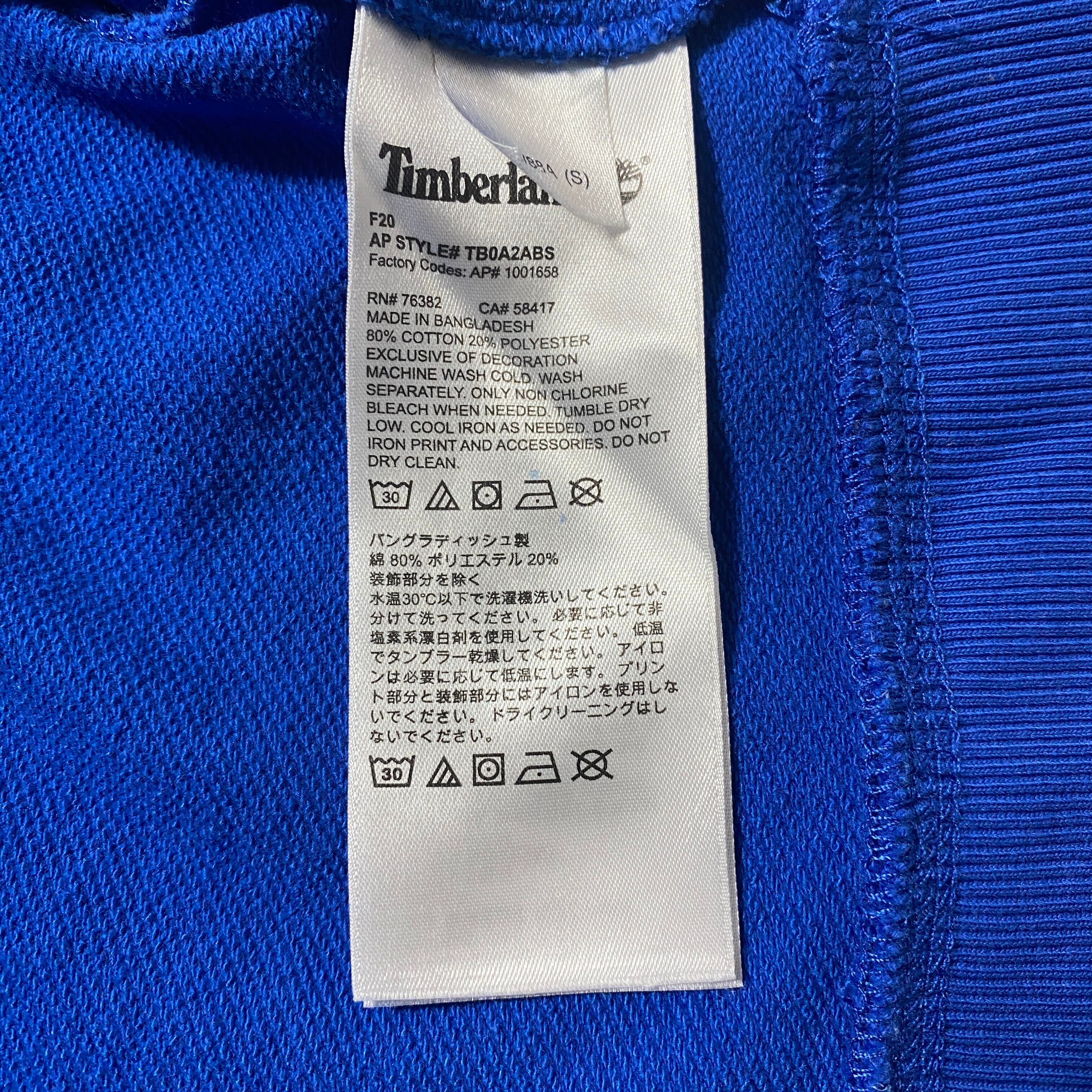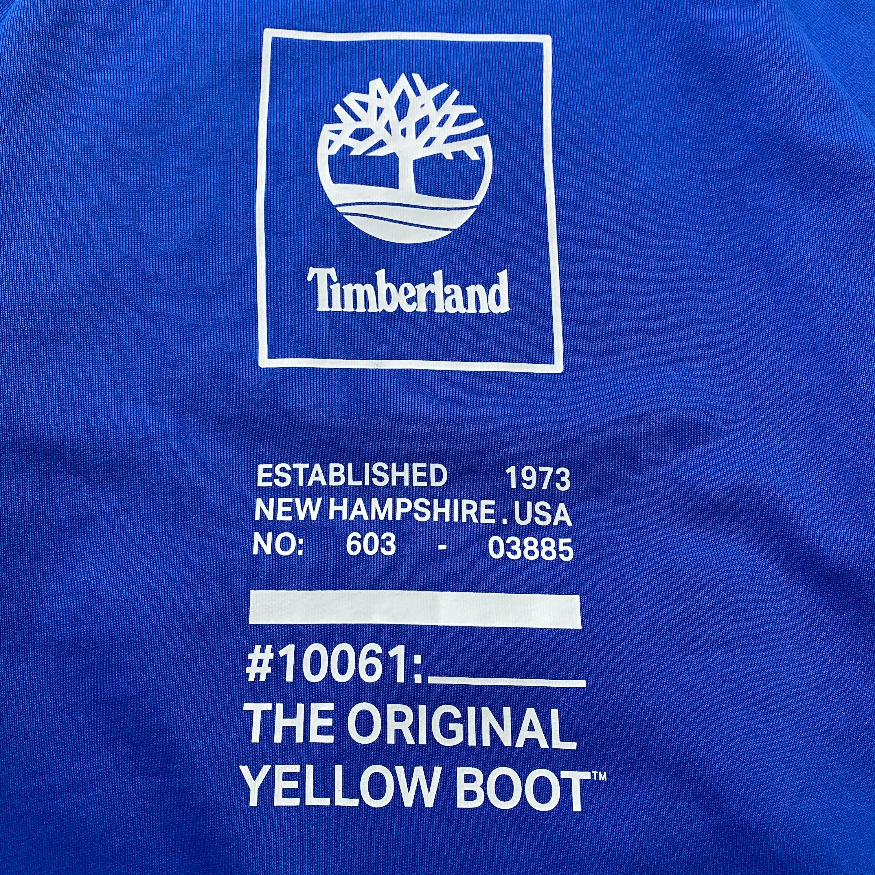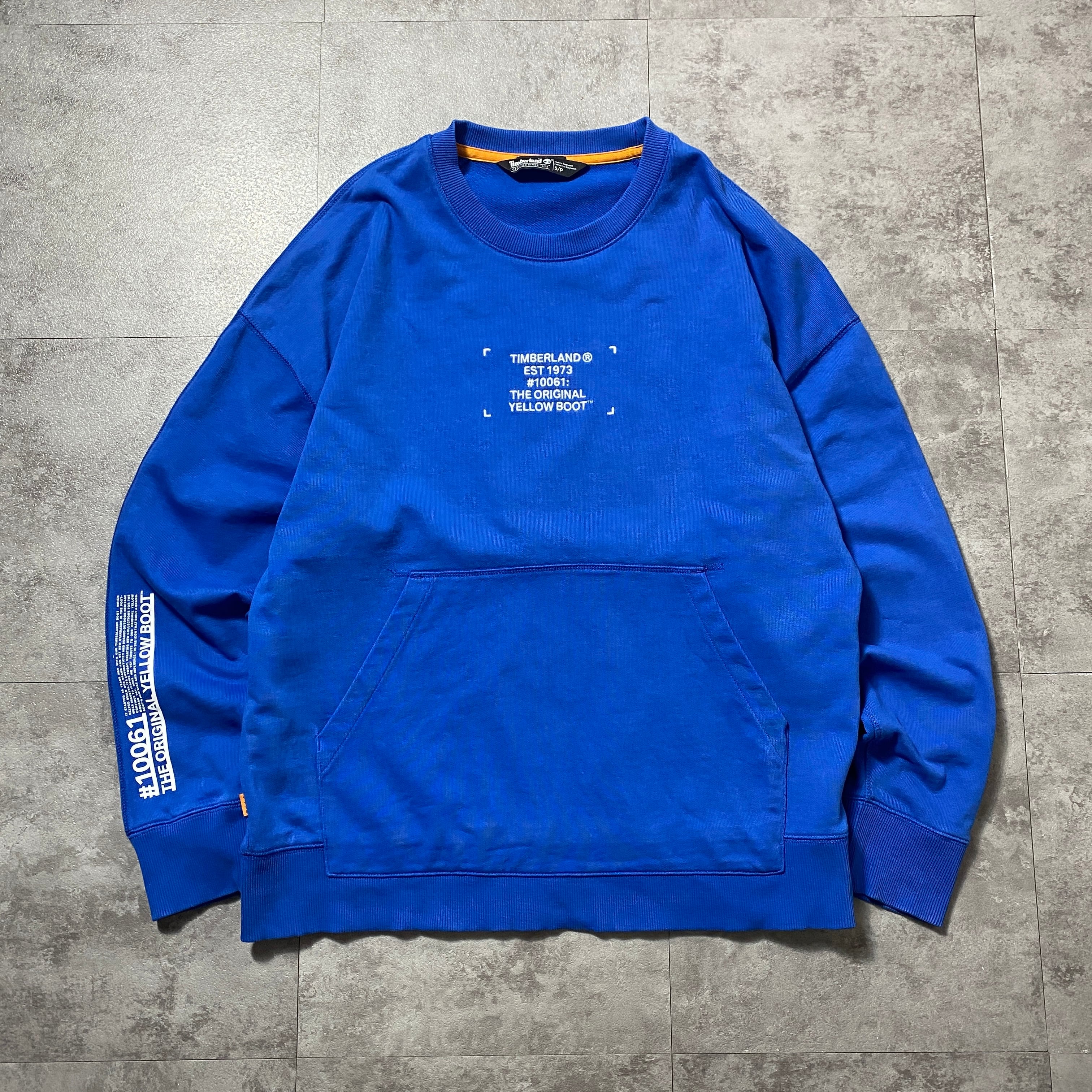 Timberland ティンバーランド 刺繍ロゴ バックプリント フロントポケット ブルー スウェット トレーナー