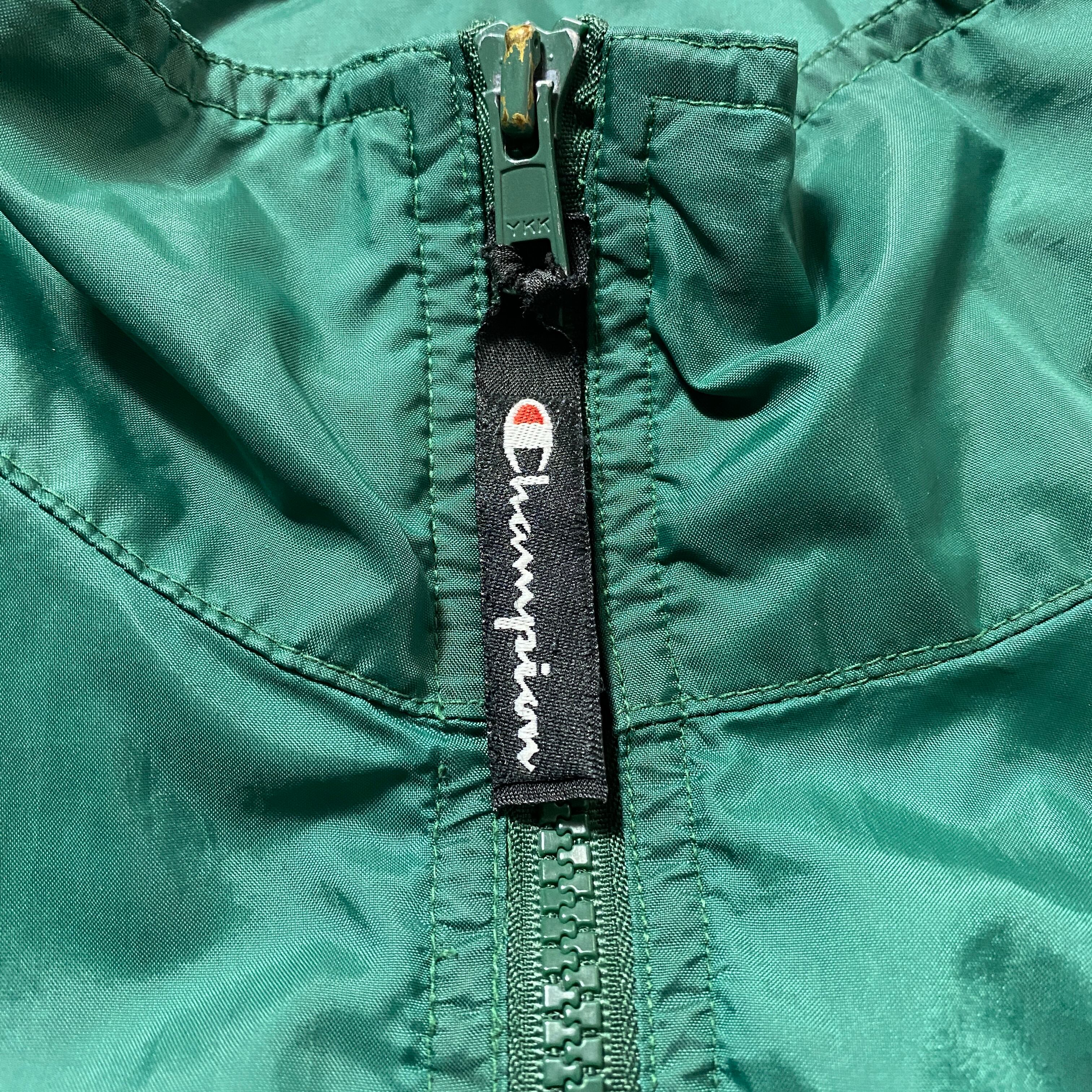 00's Champion チャンピオン 刺繍企業ロゴ グリーン ナイロンジャケット