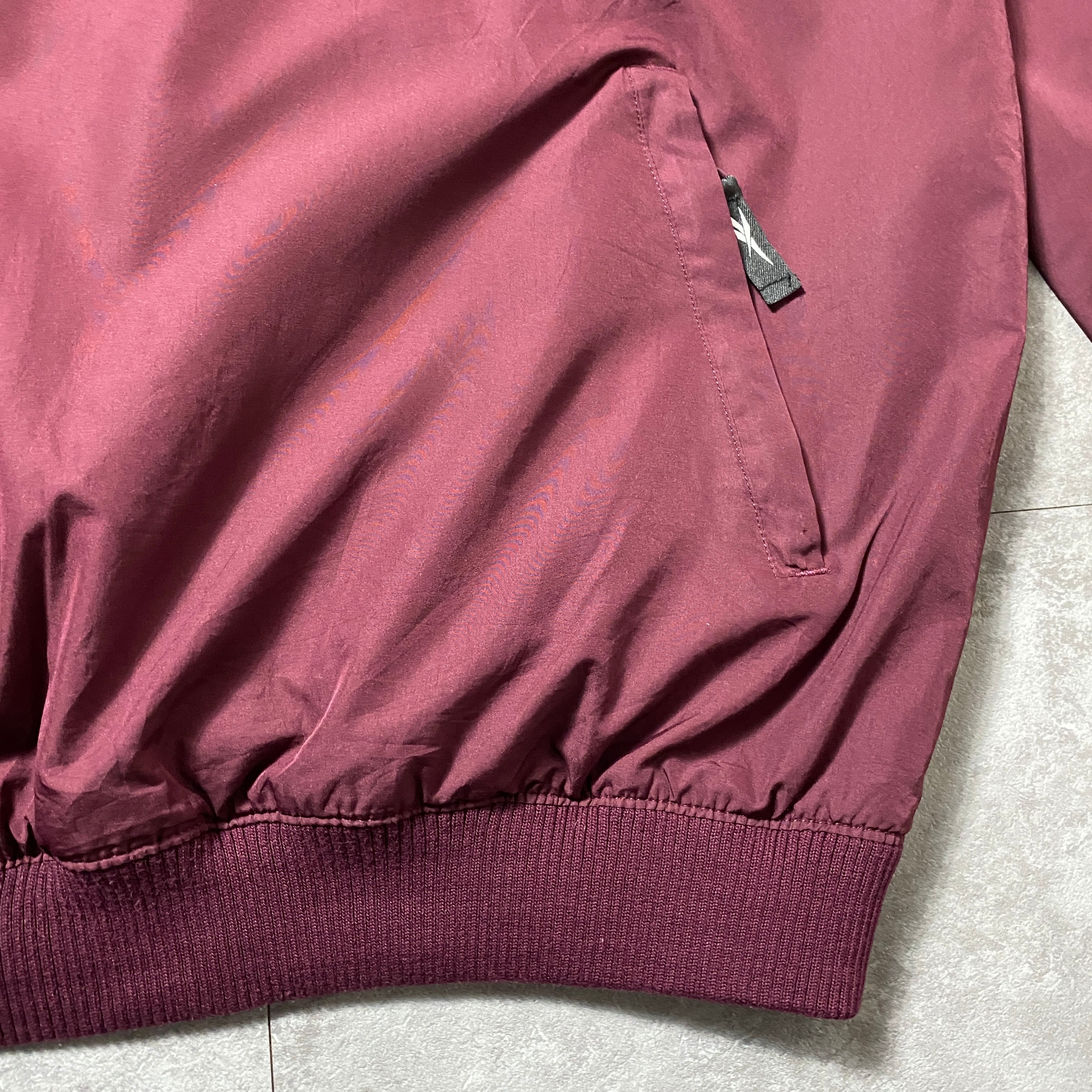 90's Reebok リーボック 刺繍ワンポイント ベクターロゴ ハーフジップ ラインリブ ナイロンプルオーバー