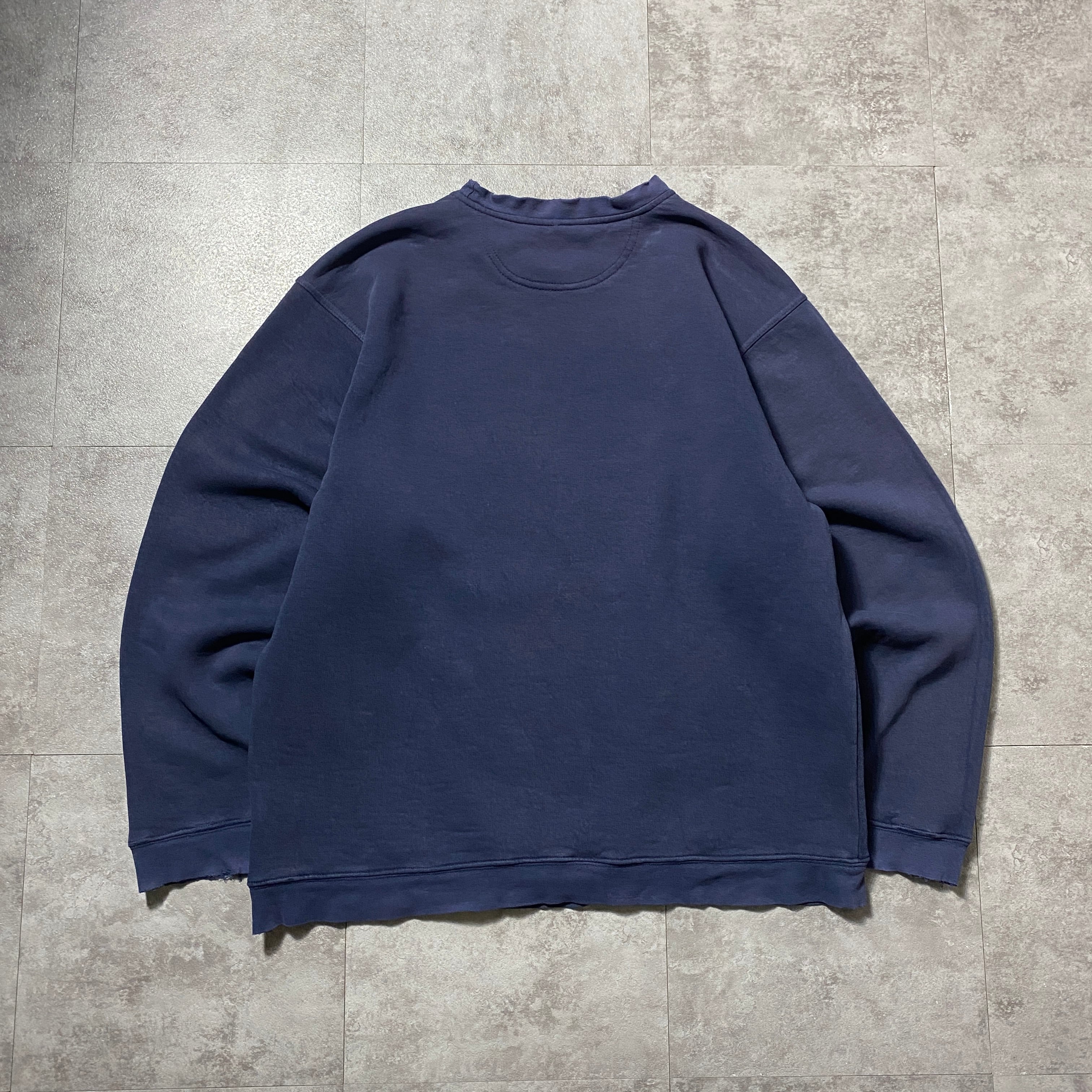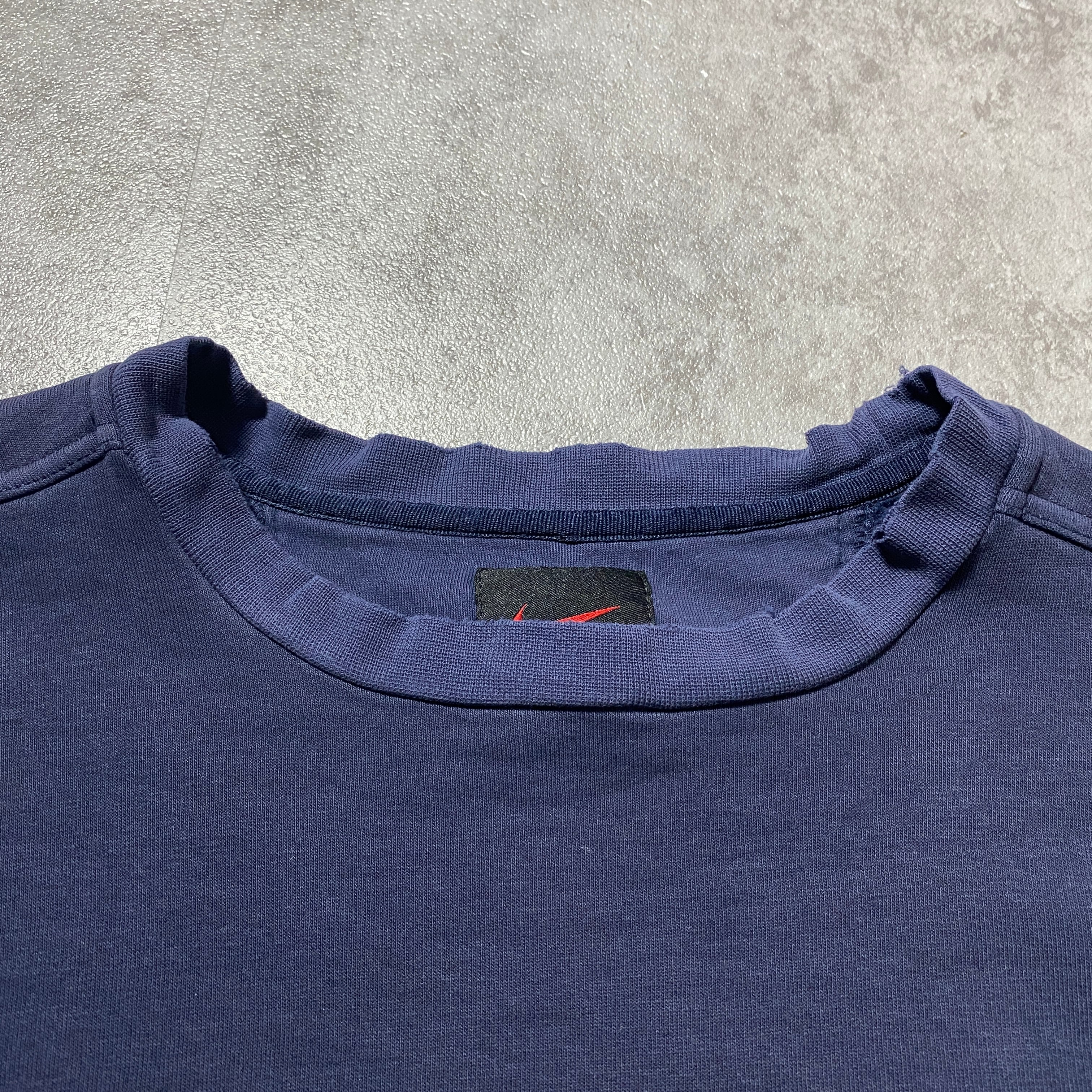 【ギリシャ製】00's Euro NIKE ナイキ スウォッシュ 刺繍ワンポイント ダメージ ネイビー スウェット トレーナー