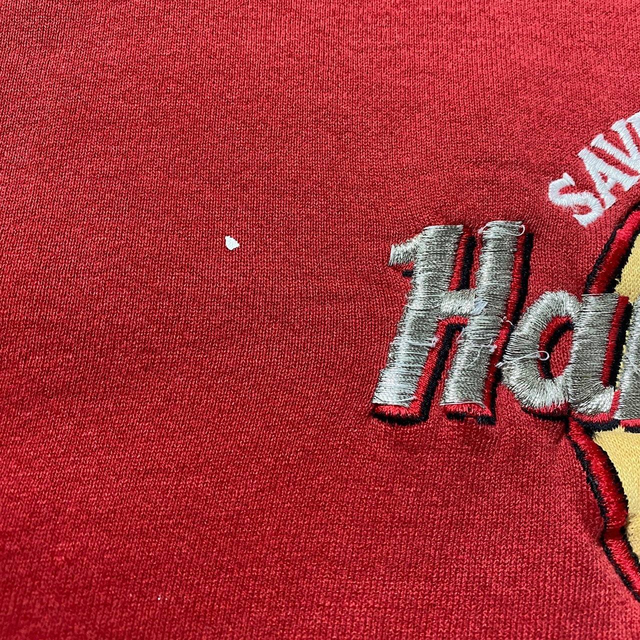 【USA製】80's Hard Rock Cafe ハードロックカフェ ジャージーズボディ 刺繍ロゴ レッド スウェット トレーナー