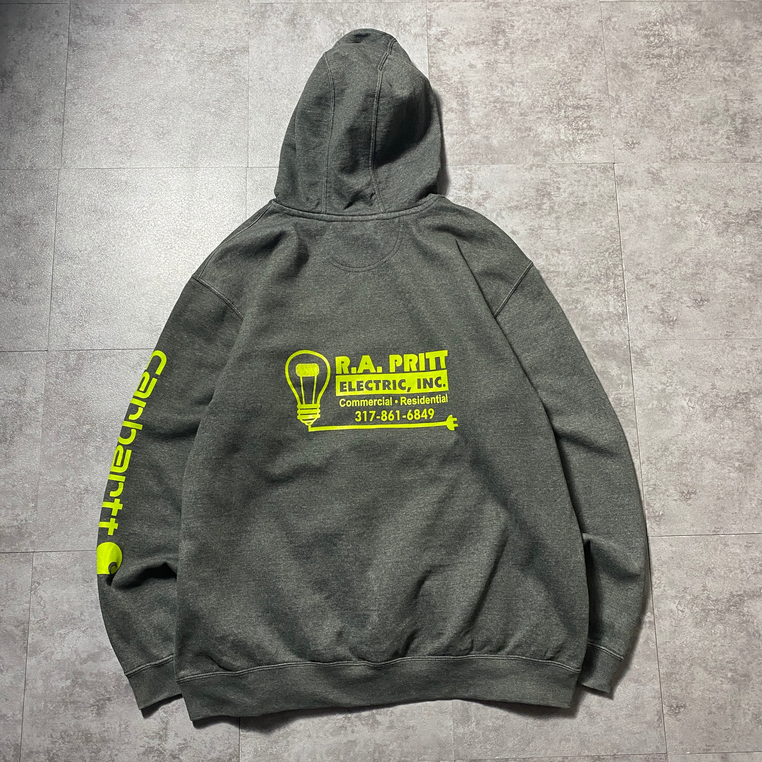 【Size.XL】carhartt カーハート 企業ロゴ バックプリント アームプリント ヘビーオンス グレー スウェット パーカー