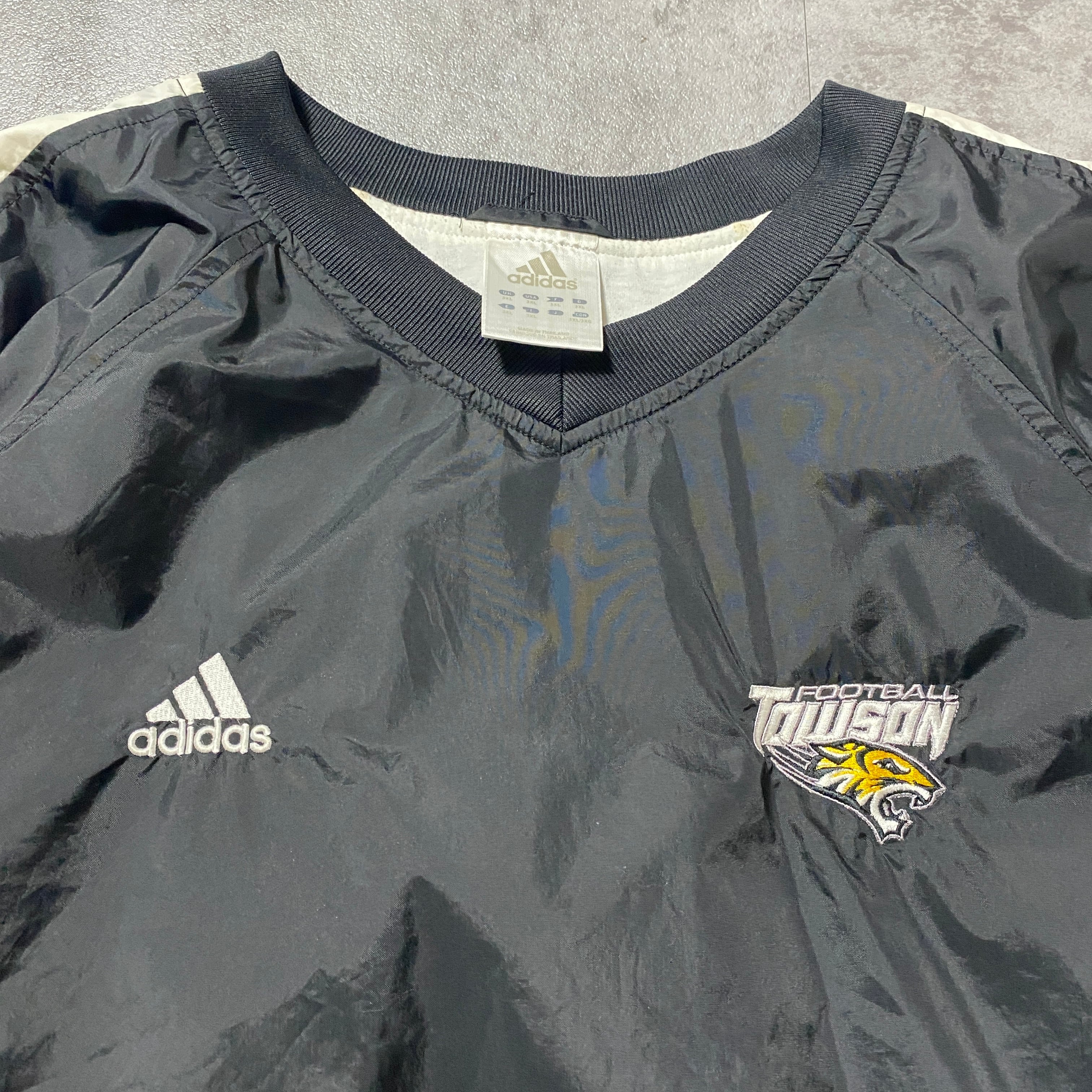 00's adidas アディダス 刺繍チームロゴ ブラック ナイロンプルオーバー