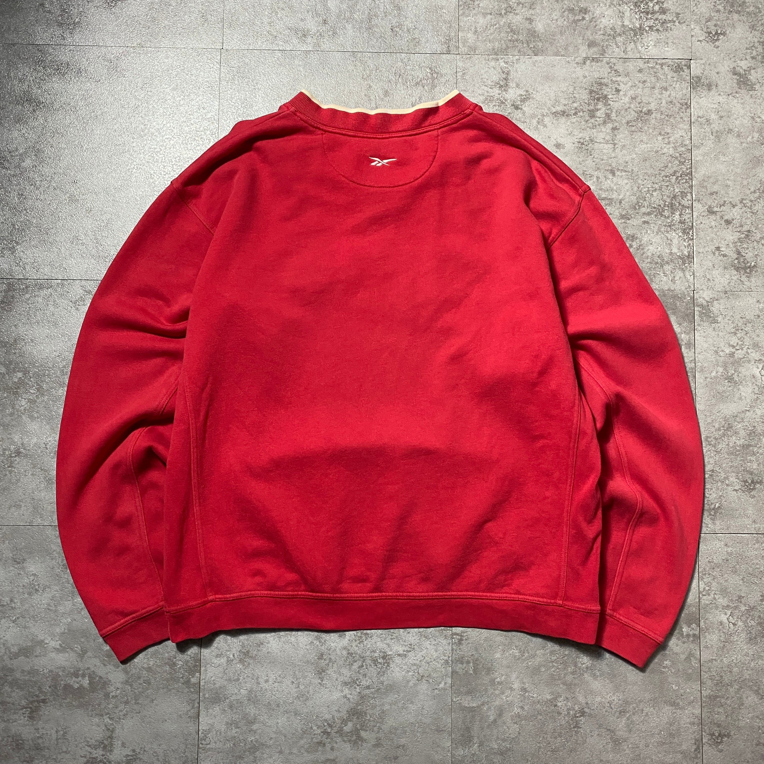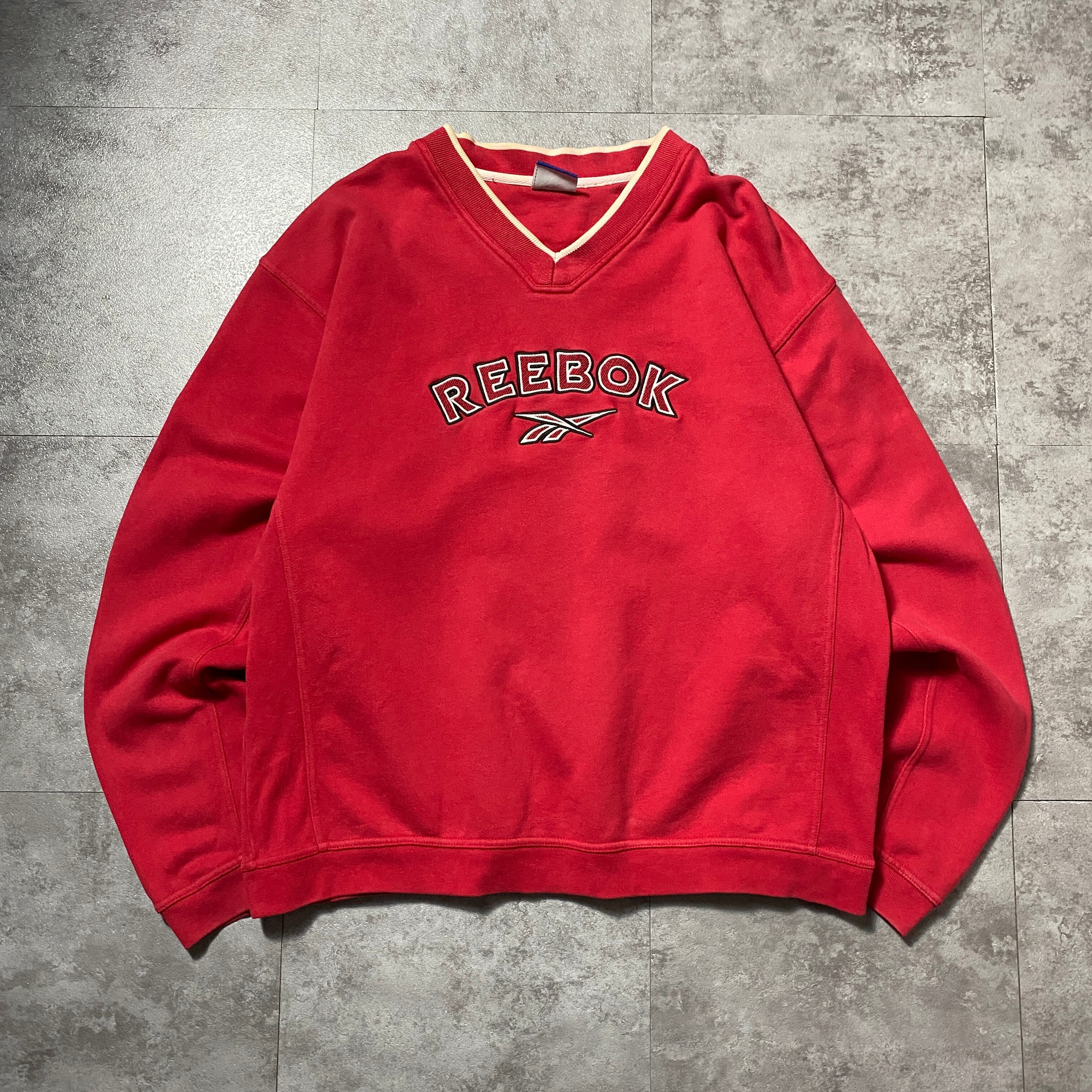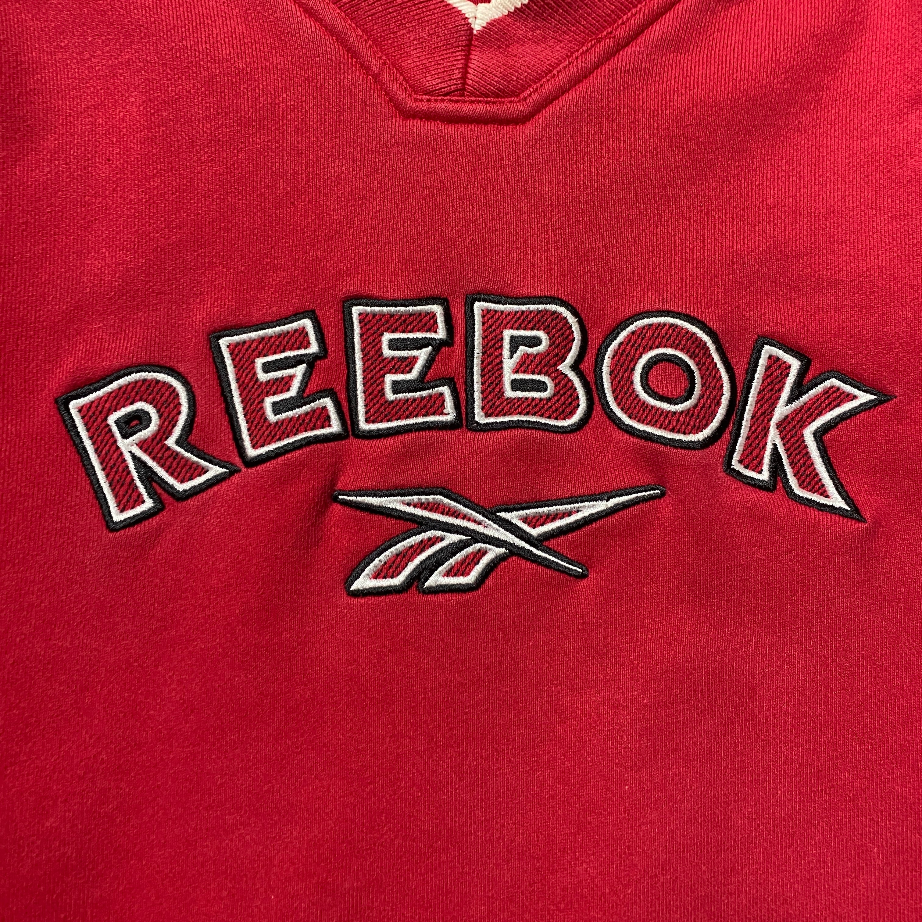 90's Reebok リーボック 刺繍ベクターロゴ ラインリブ レッド スウェット トレーナー