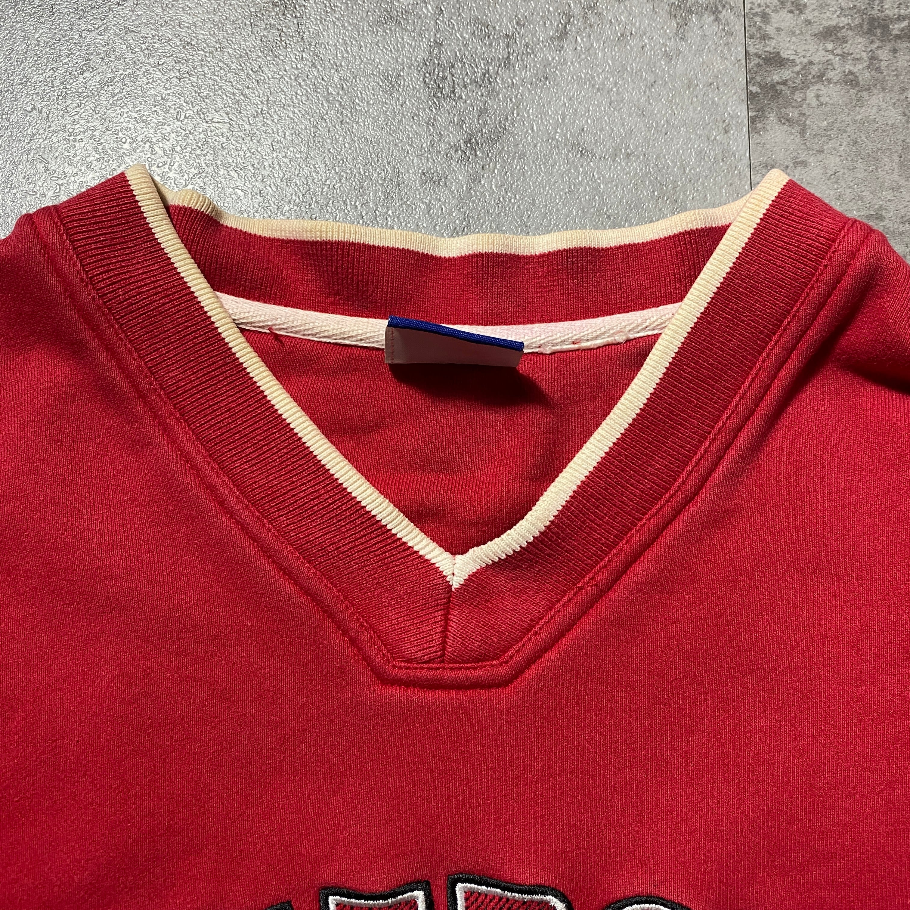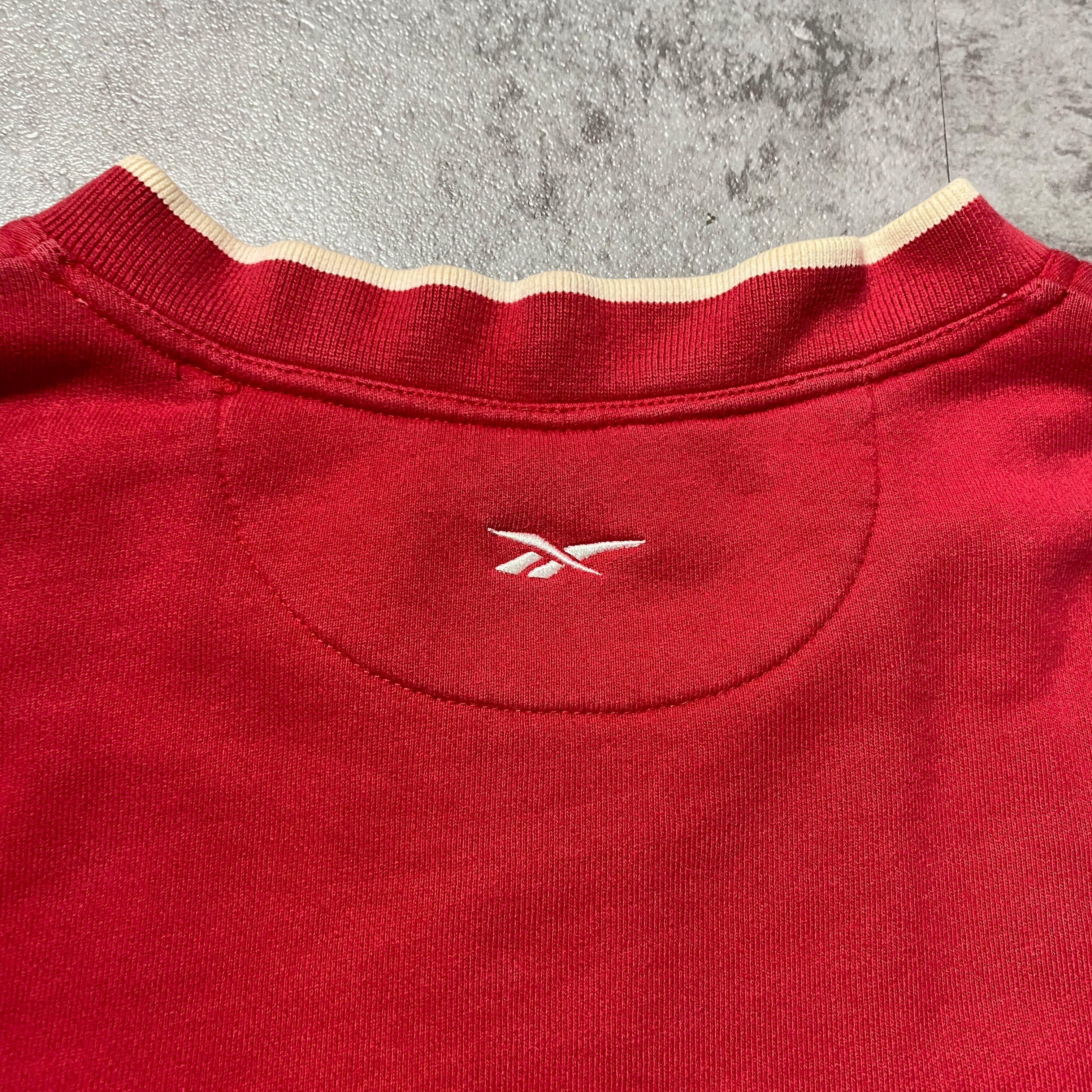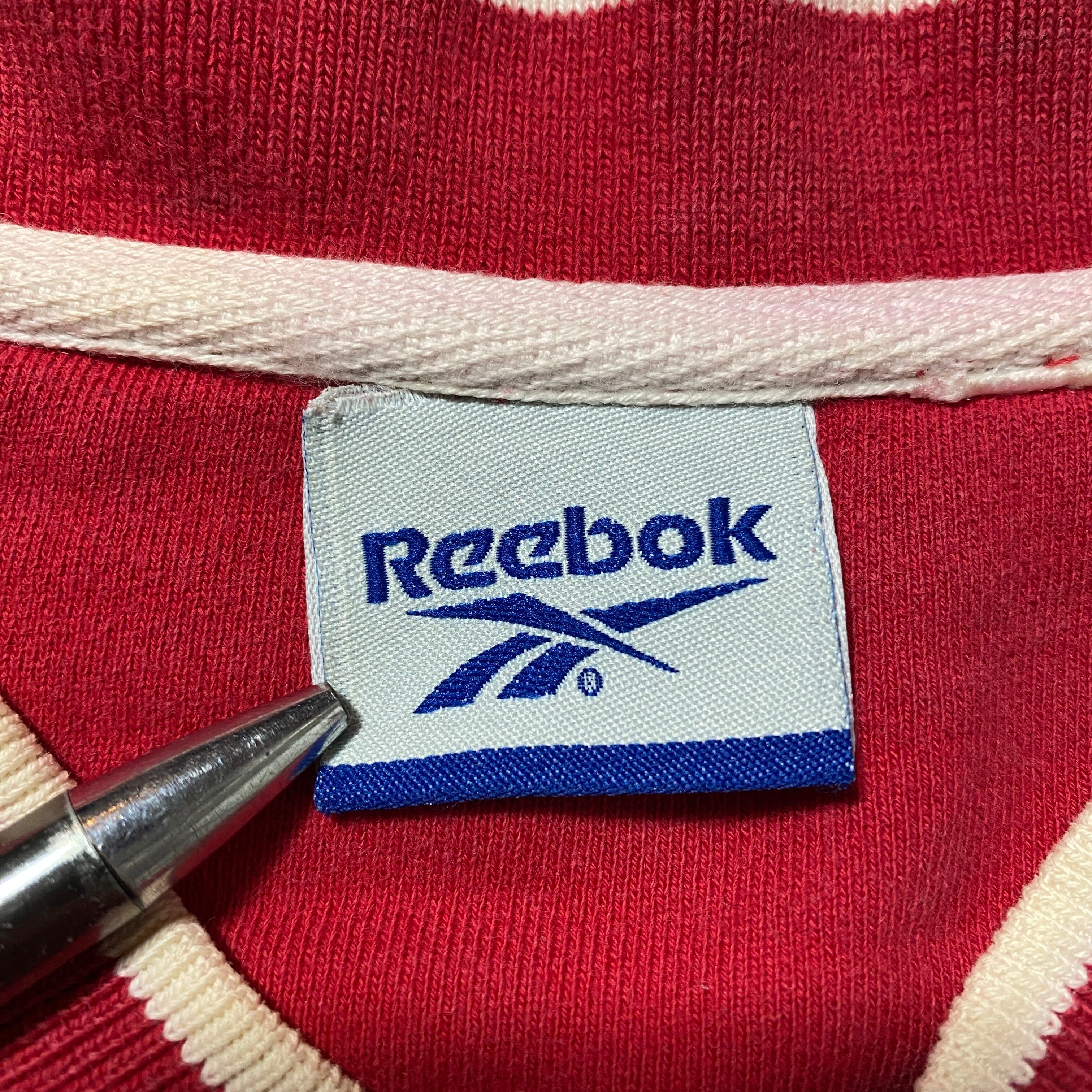 90's Reebok リーボック 刺繍ベクターロゴ ラインリブ レッド スウェット トレーナー