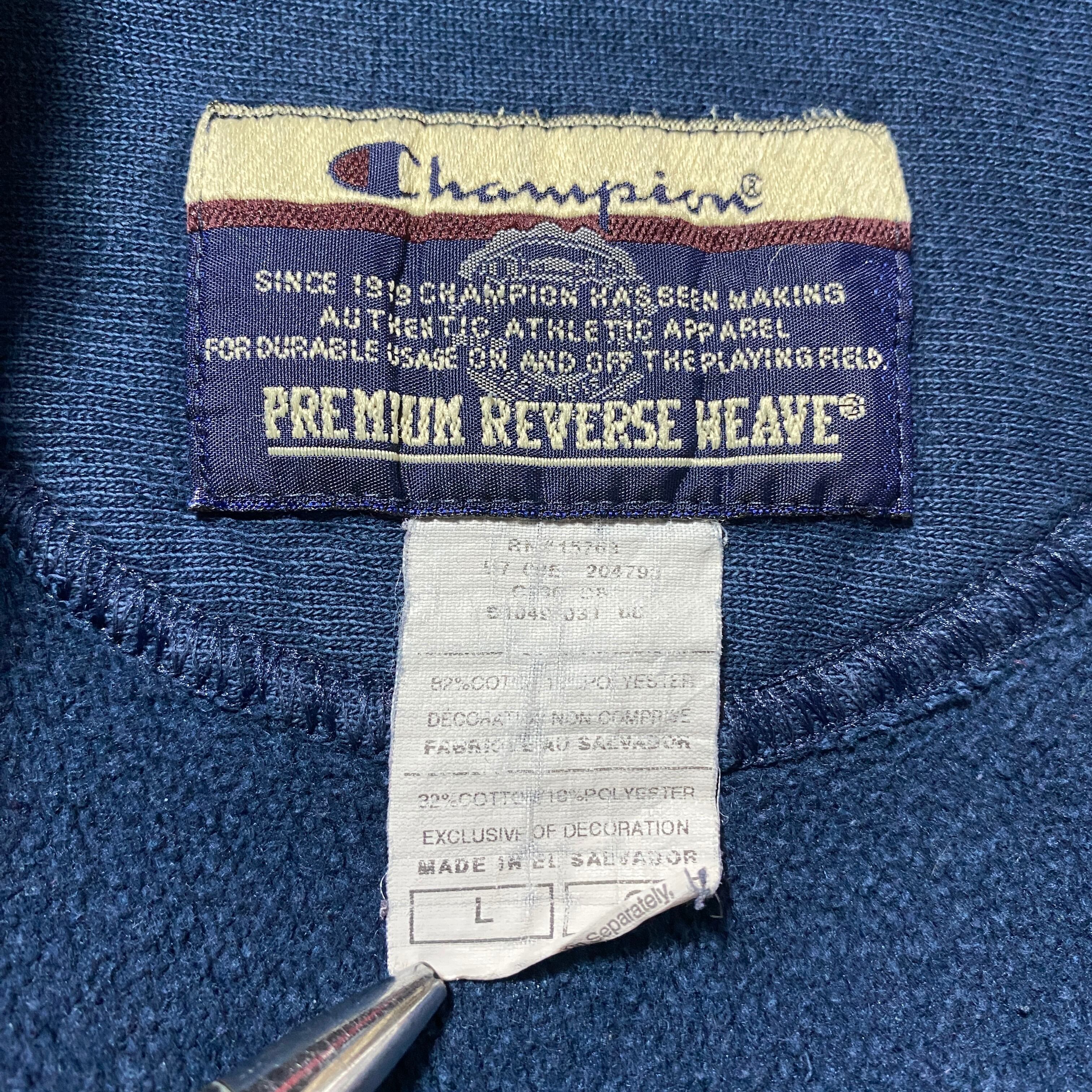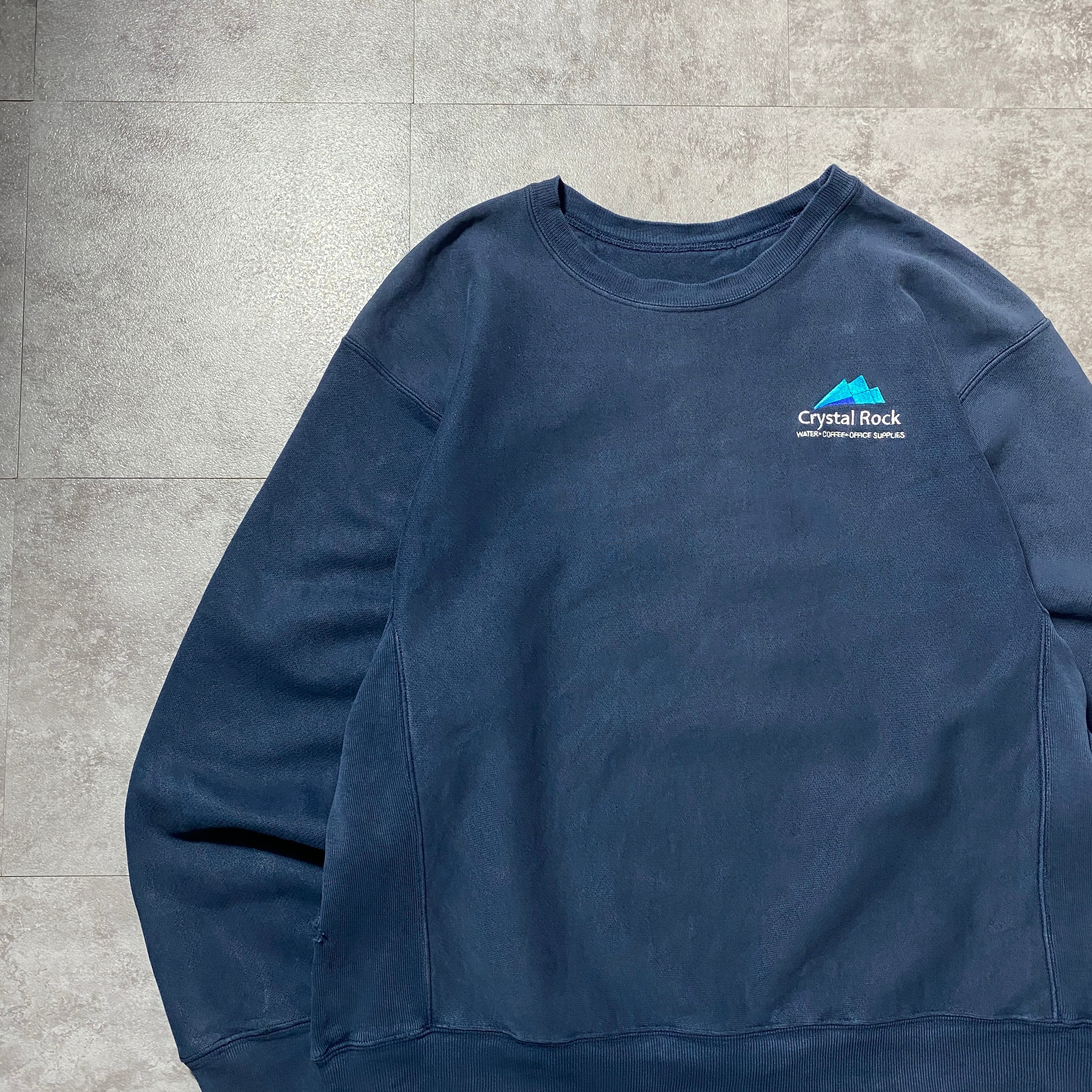 00's Champion チャンピオン プレミアムリバースウィーブ 刺繍企業ロゴ フェードネイビー スウェット トレーナー