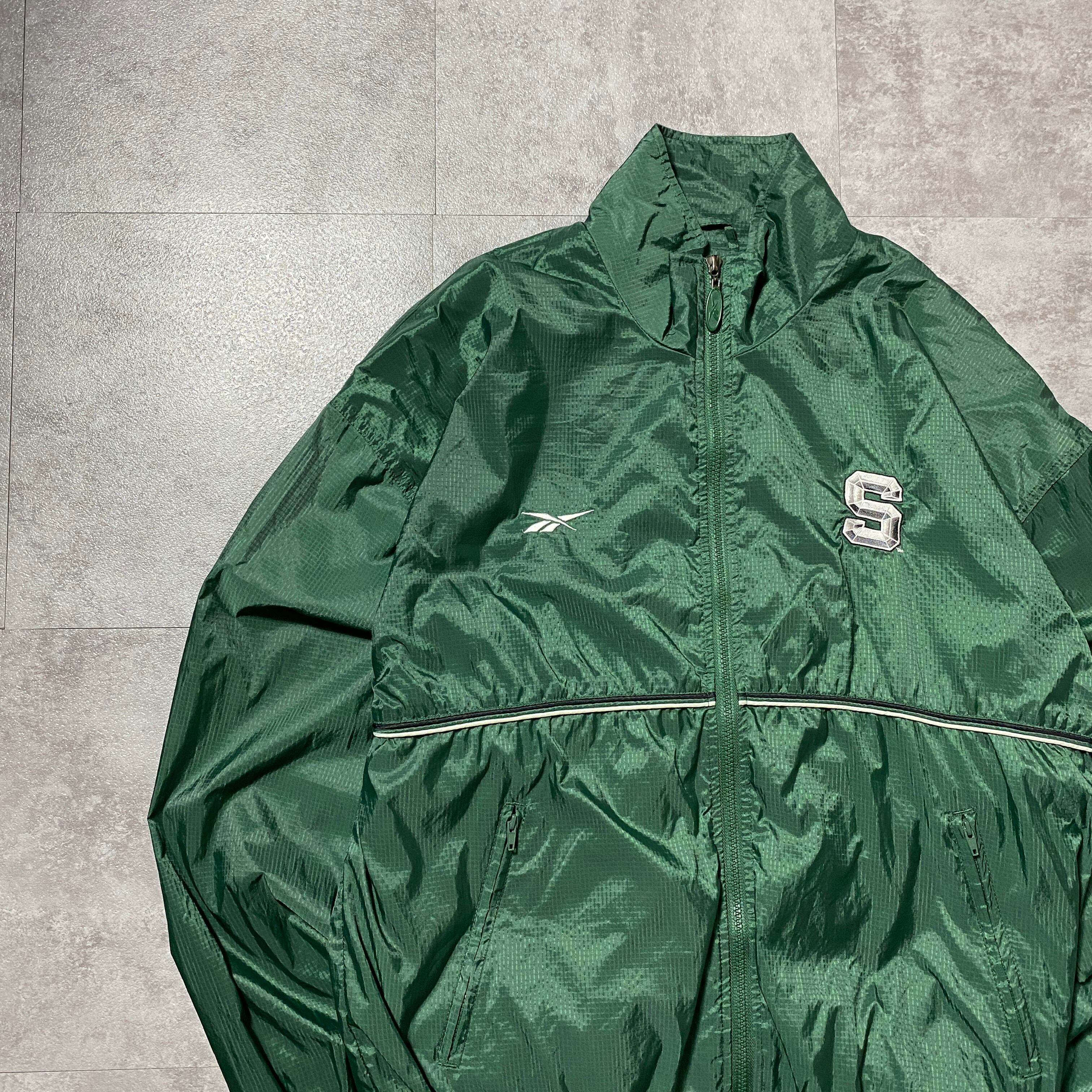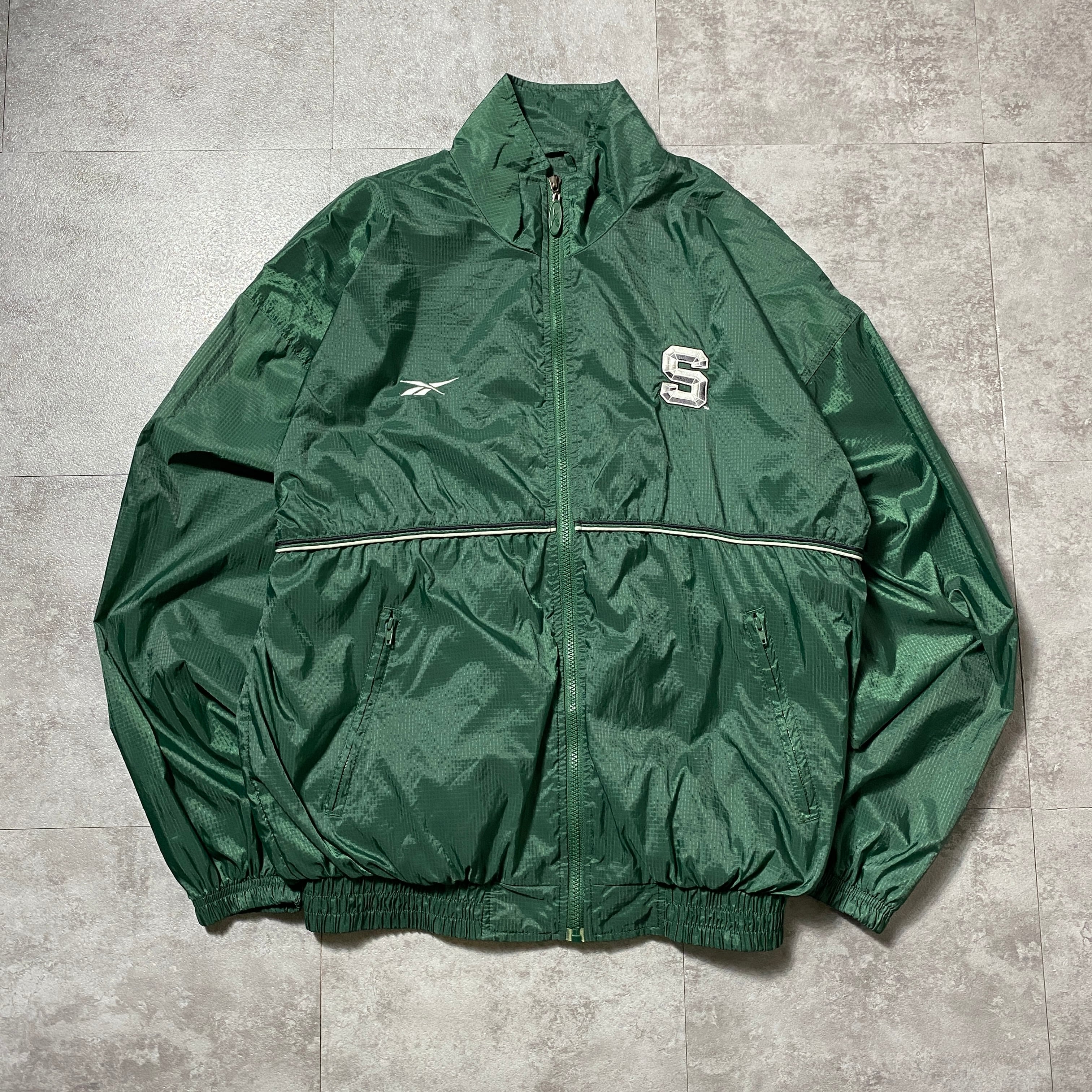 90's Reebok リーボック 刺繍ロゴ グリーン ナイロンジャケット