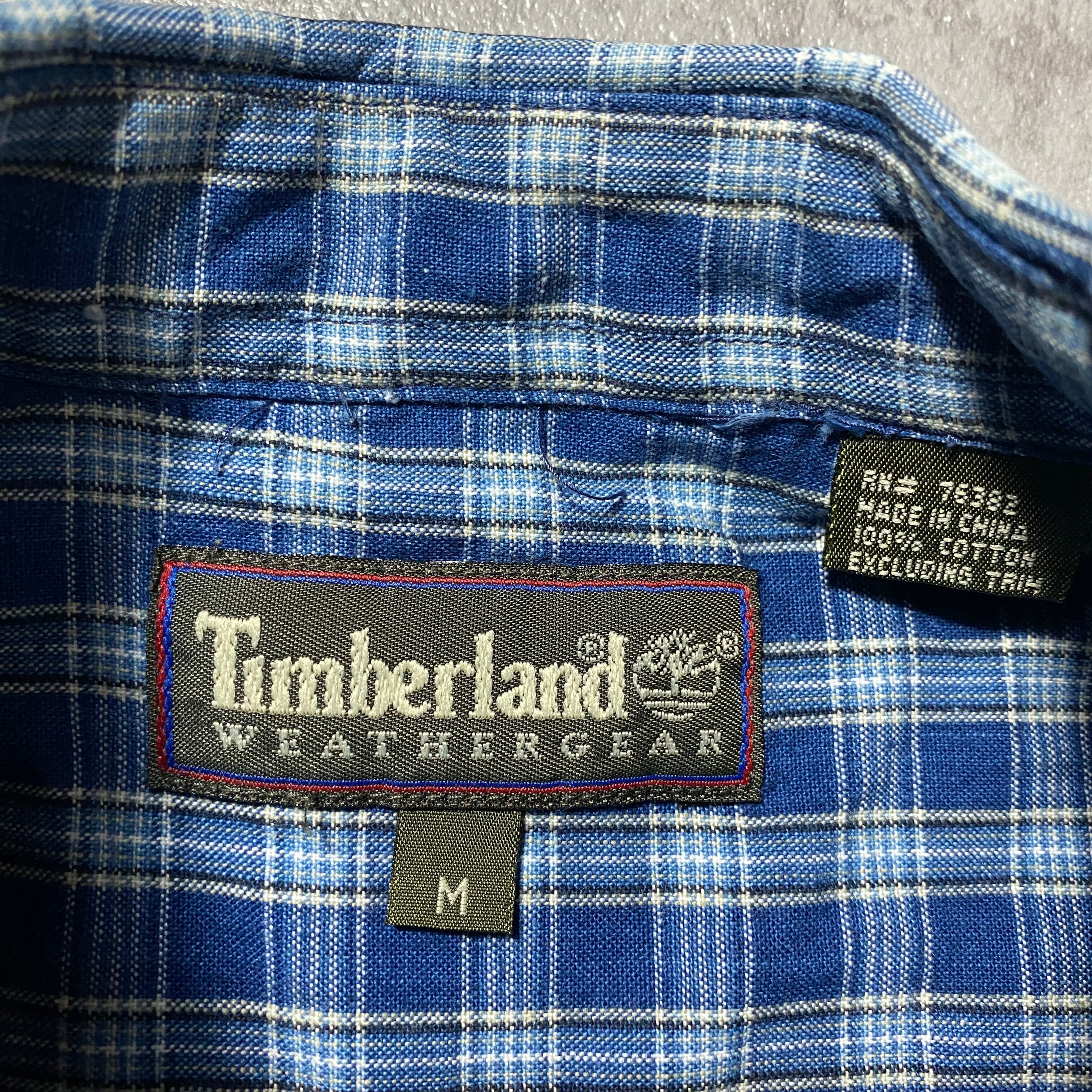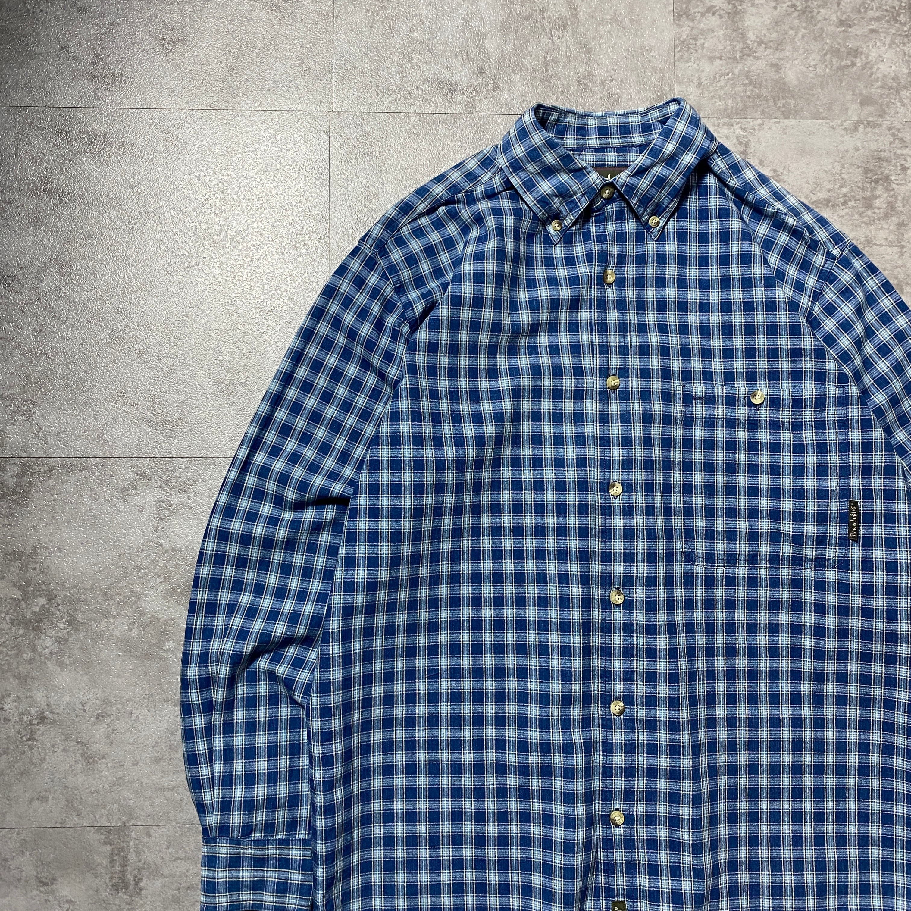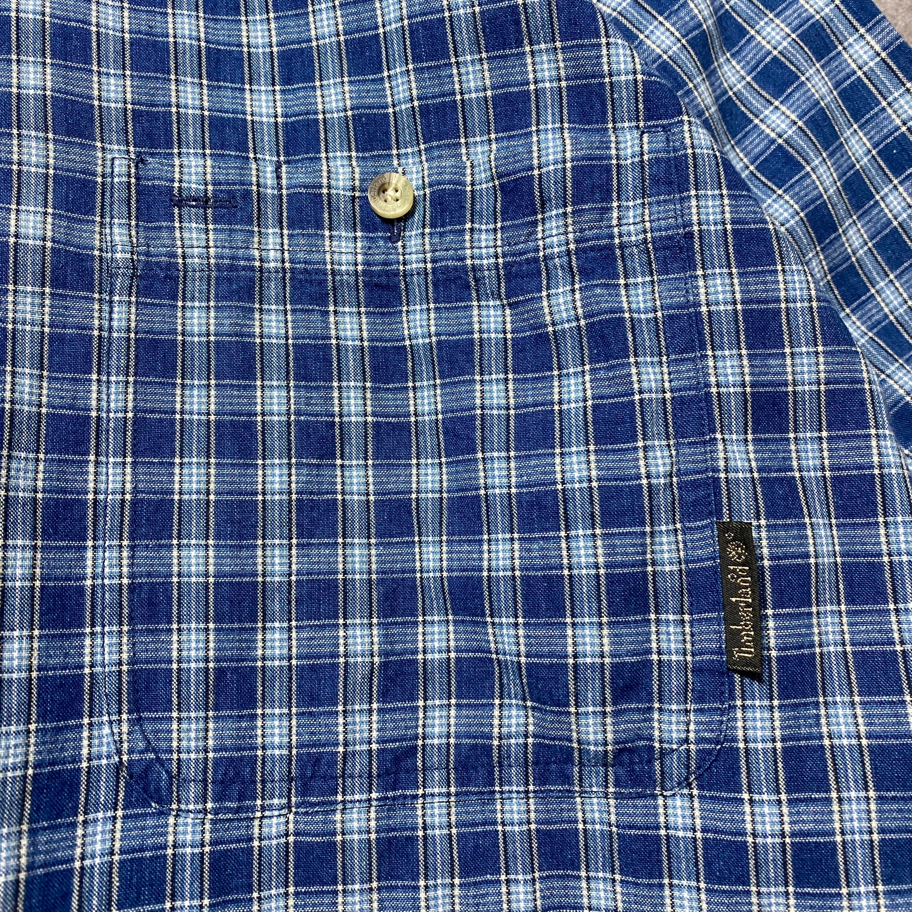 90's Timberland ティンバーランド 胸ポケット チェック総柄 ボタンダウンシャツ