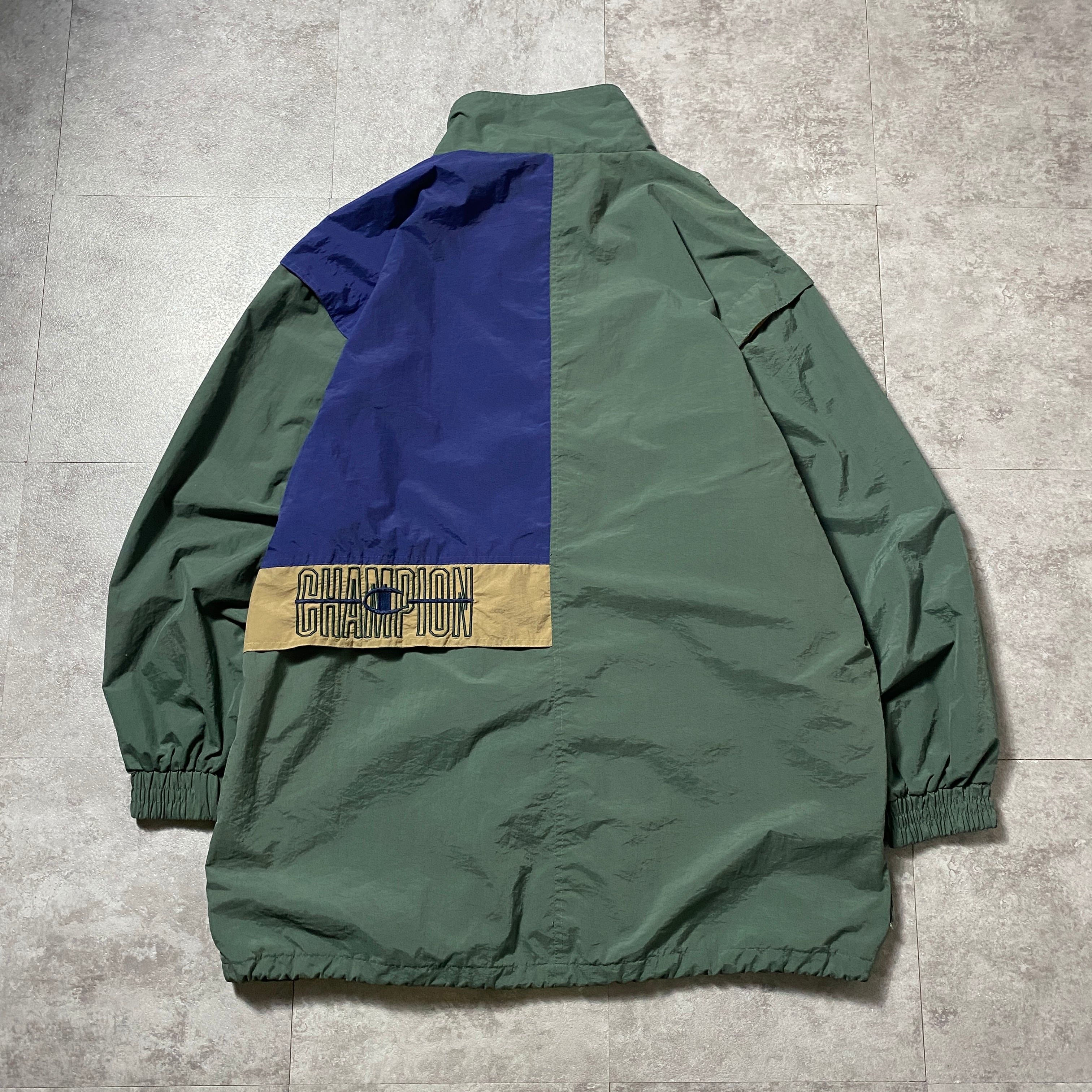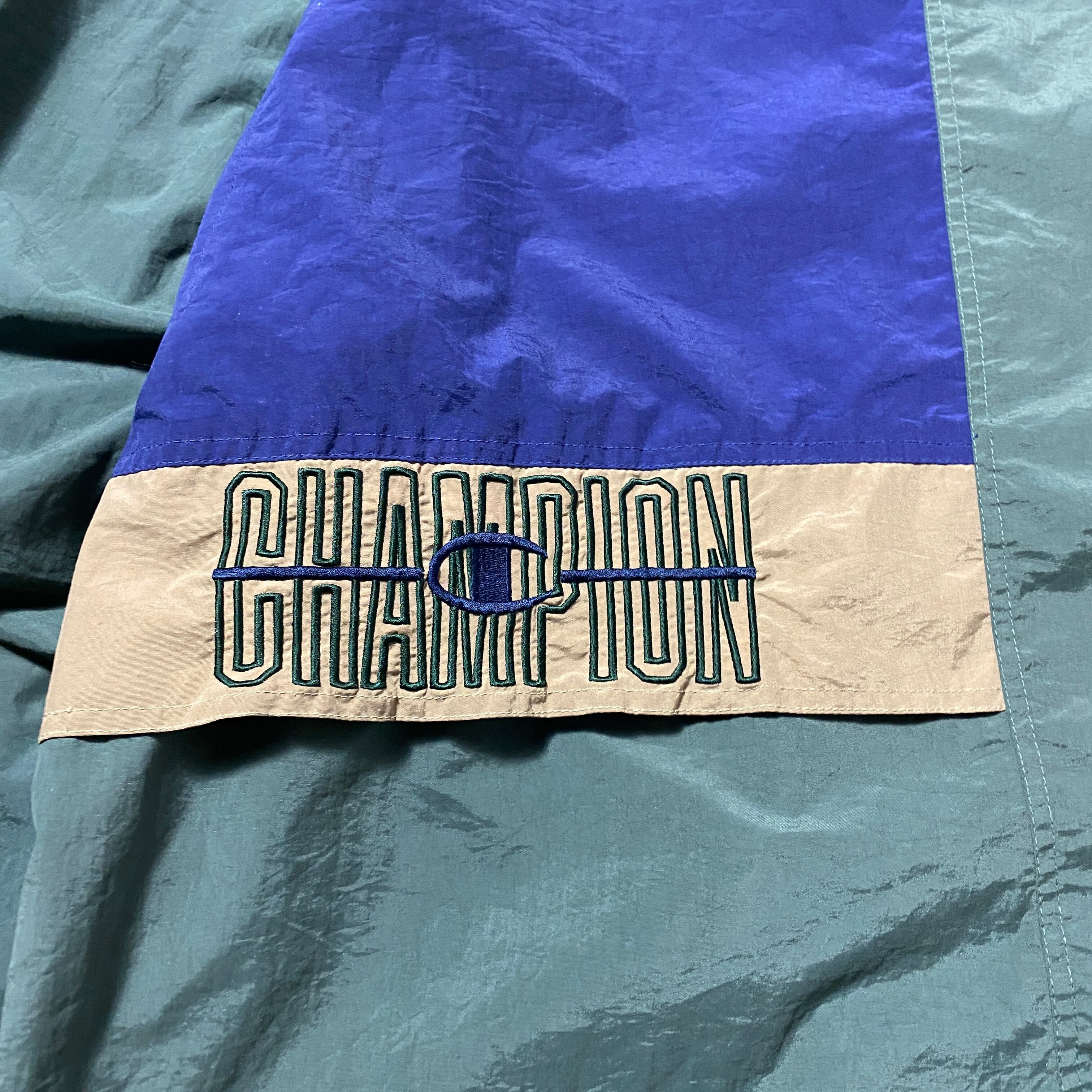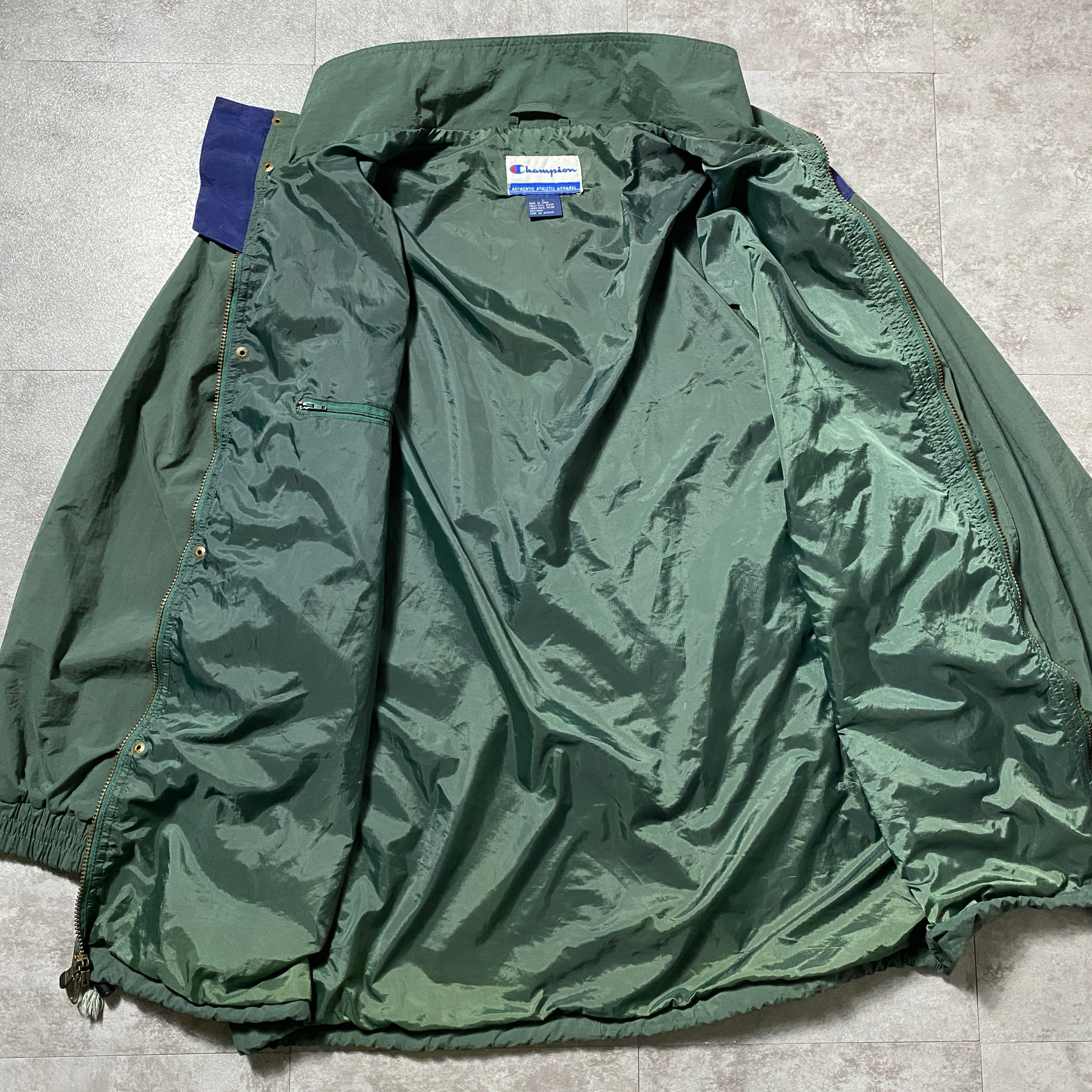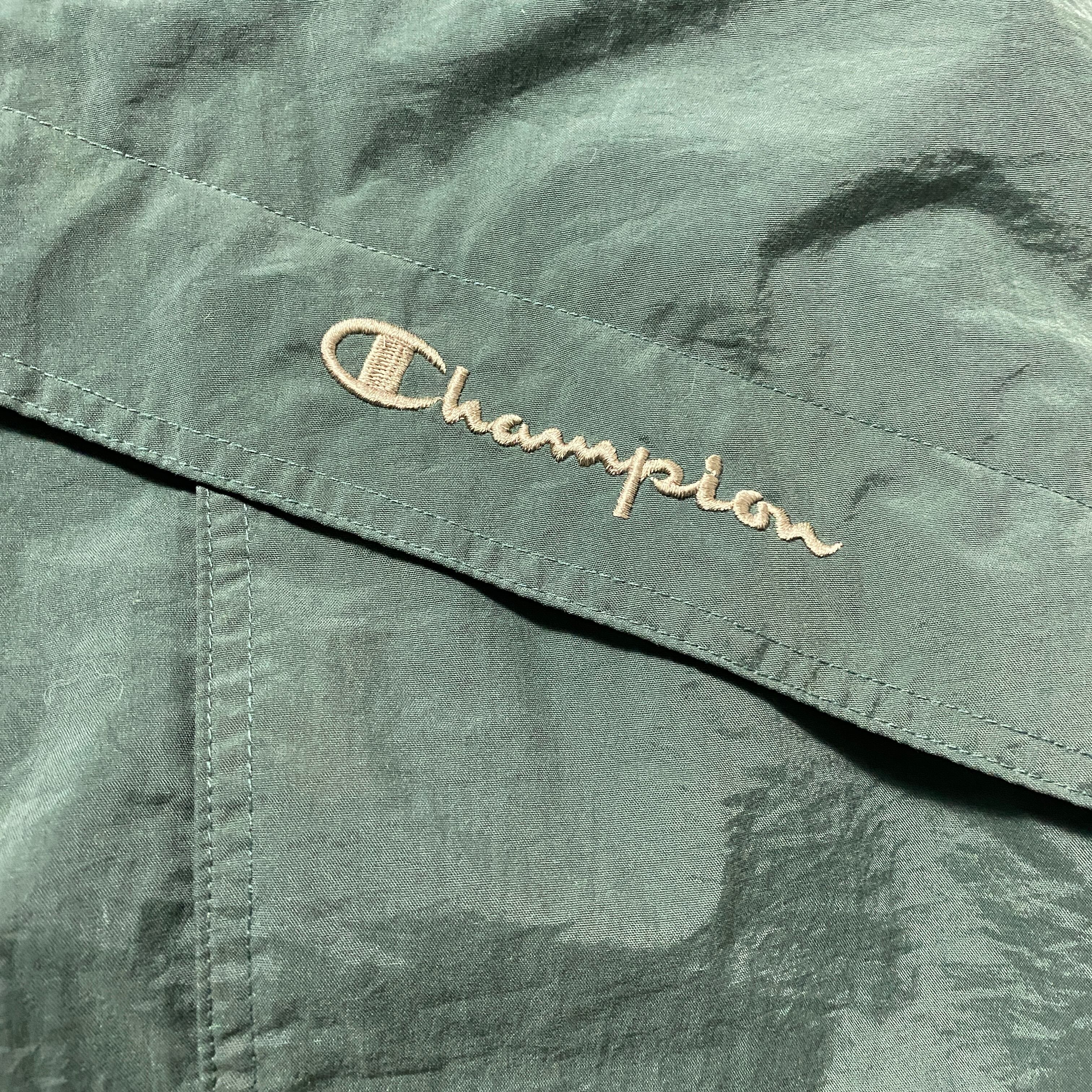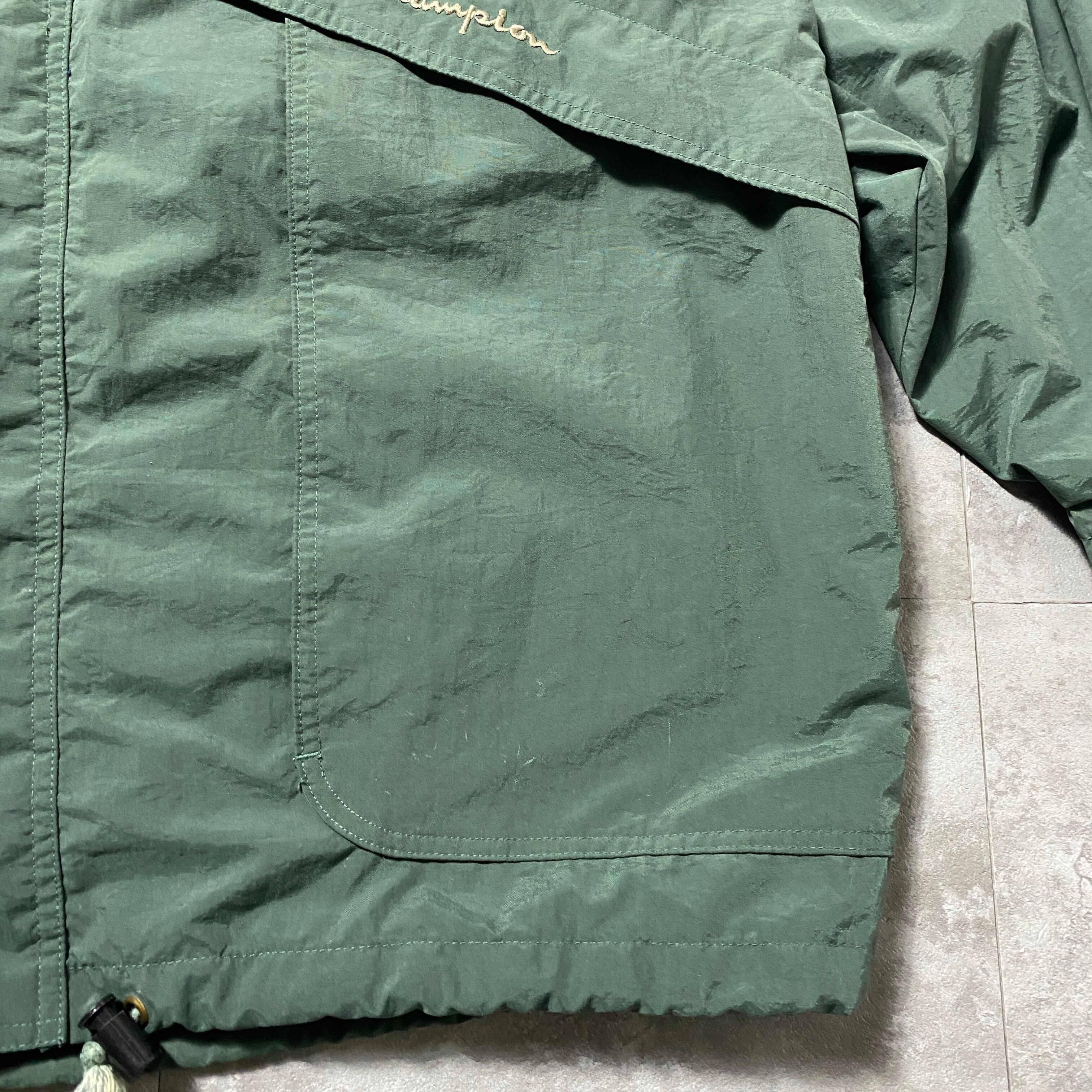 90's Champion チャンピオン 刺繍バックロゴ グリーン ナイロンジャケット マウンテンジャケット
