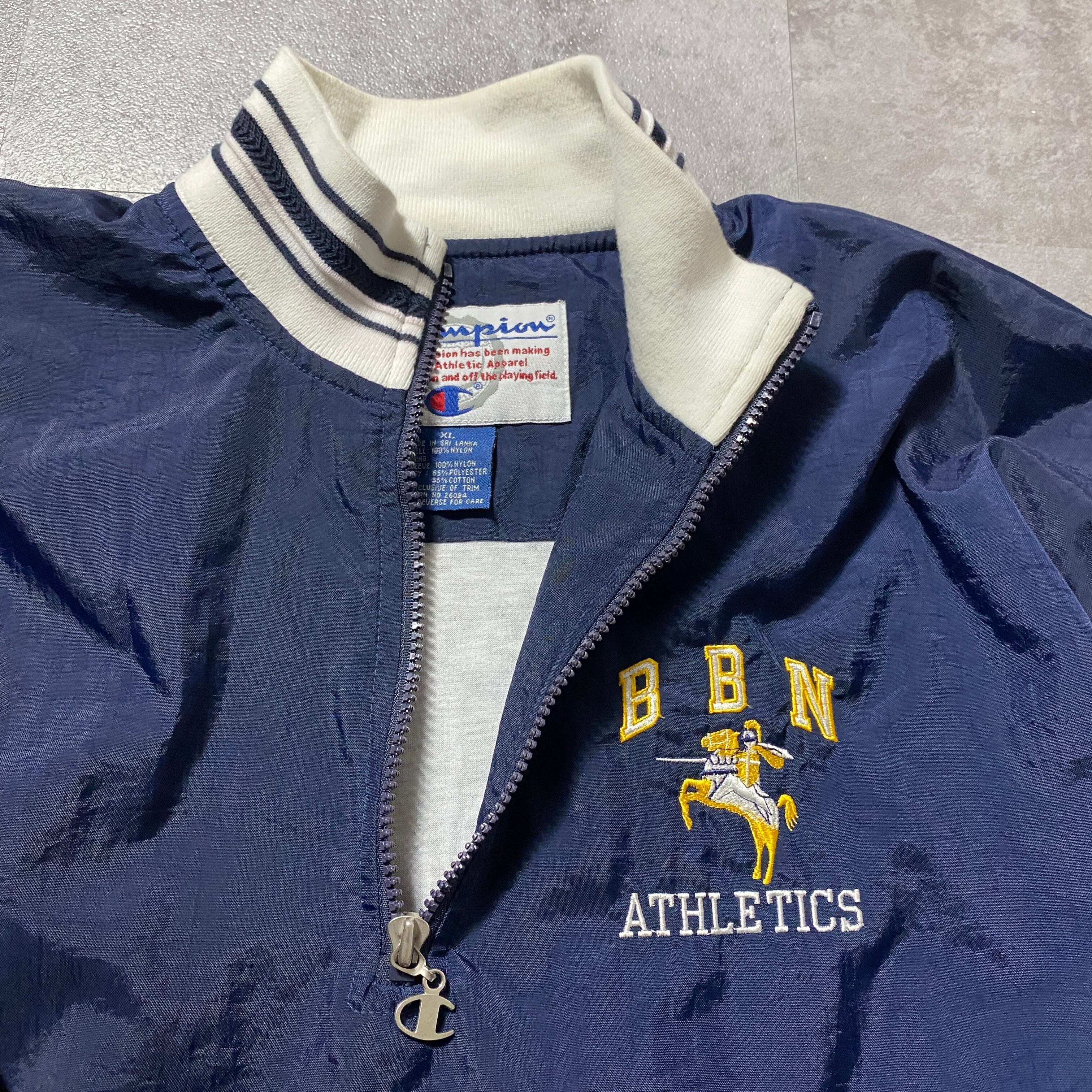 【Size.XL】90's Champion チャンピオン ハーフジップ 刺繍ロゴ ナイロンプルオーバー
