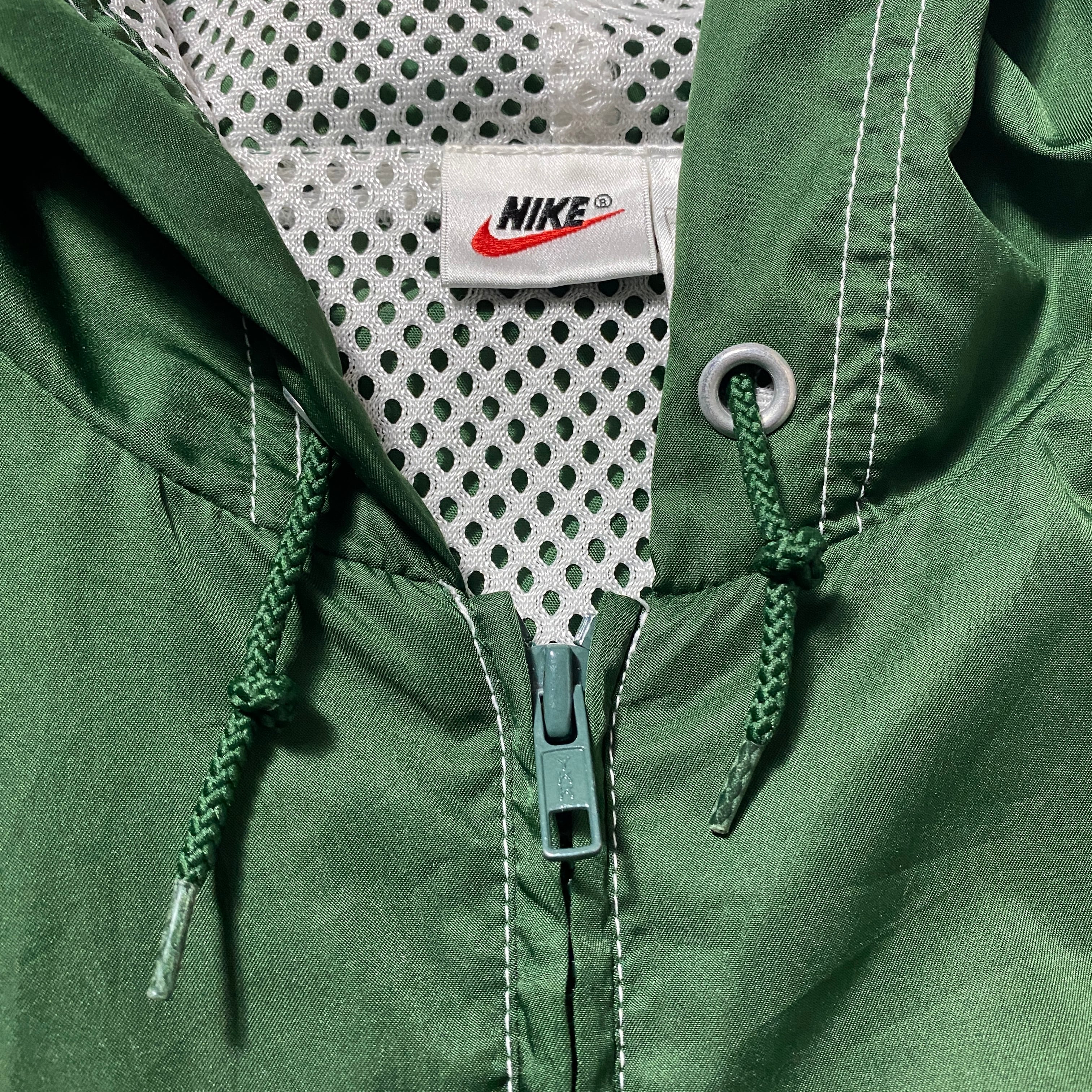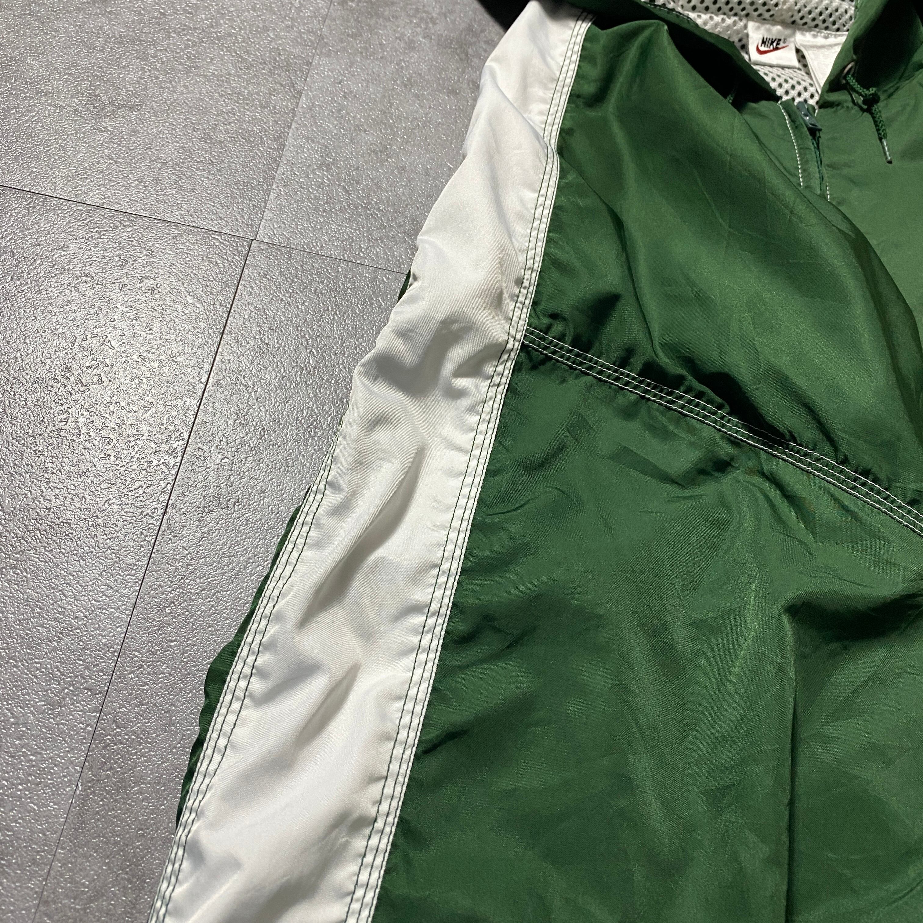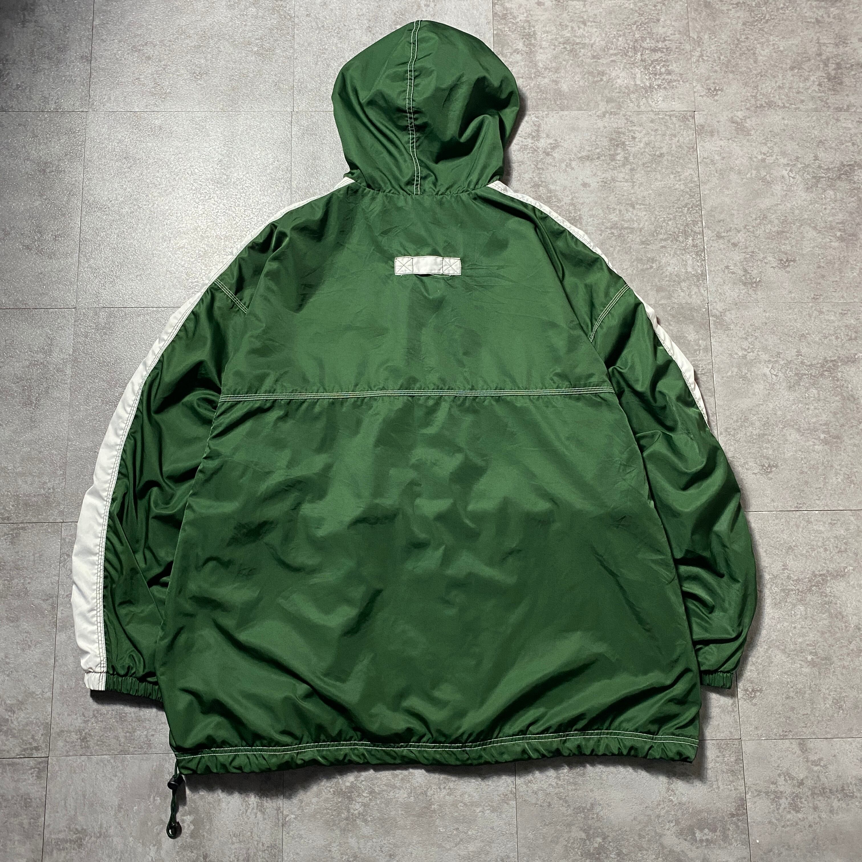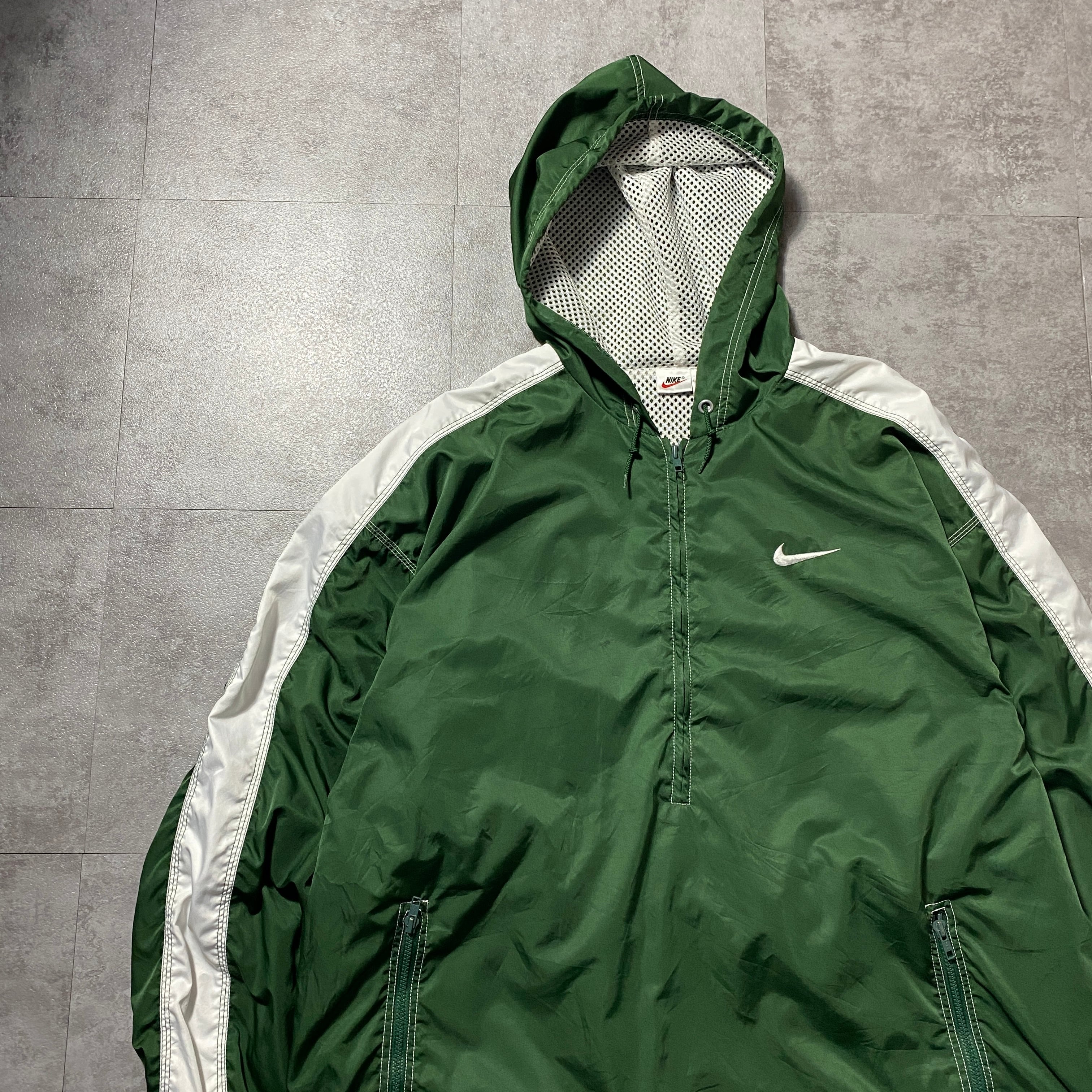 90's NIKE ナイキ スウォッシュ 刺繍ワンポイント ハーフジップ グリーン ナイロン アノラックパーカー