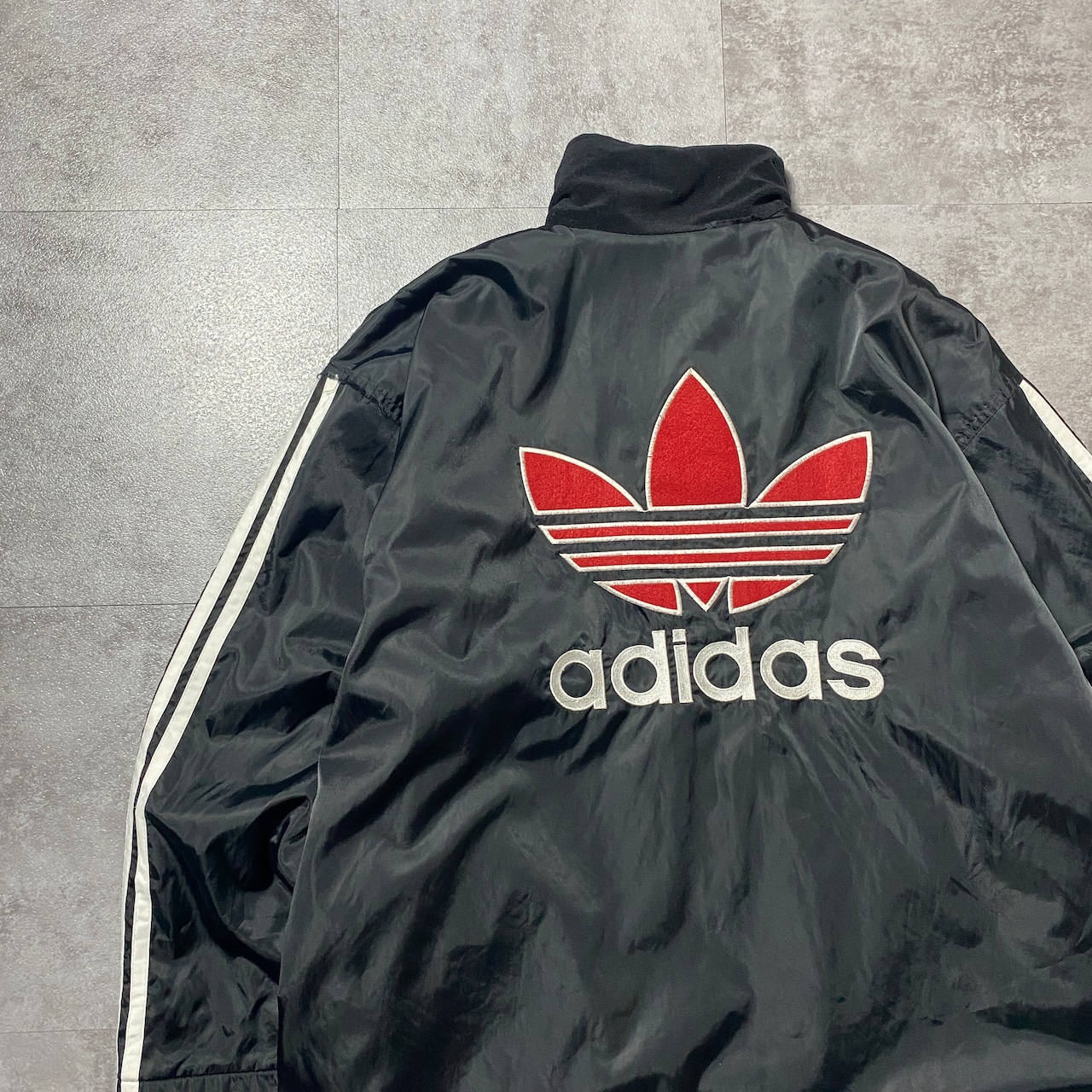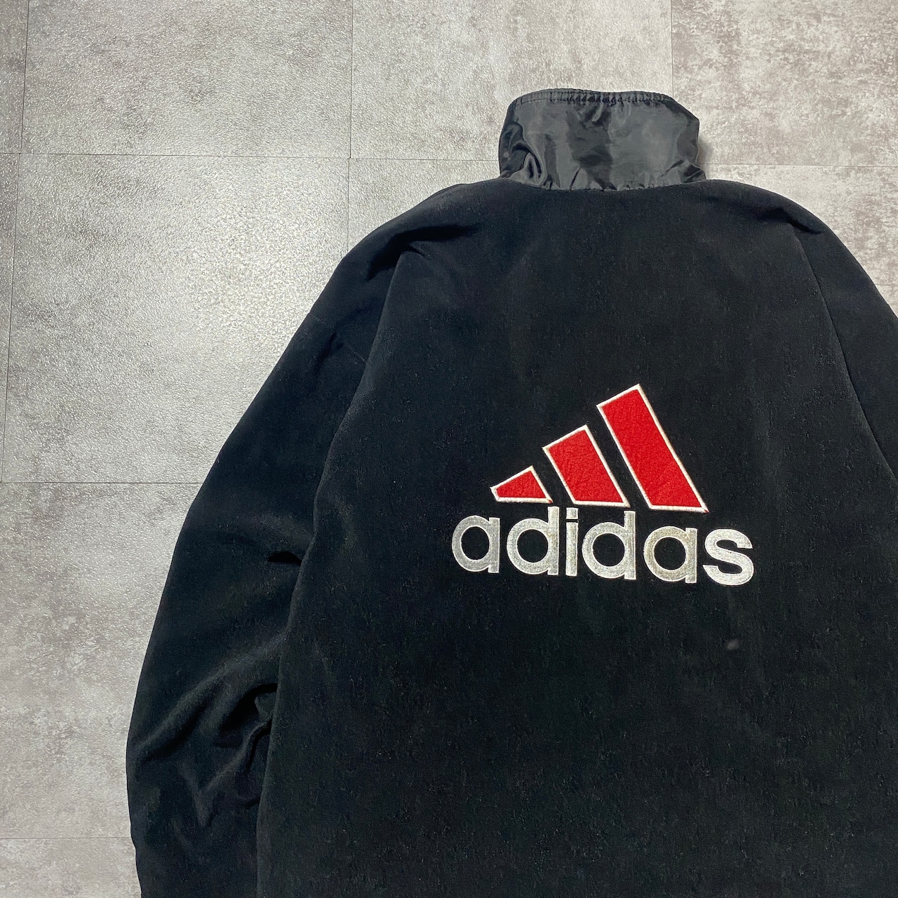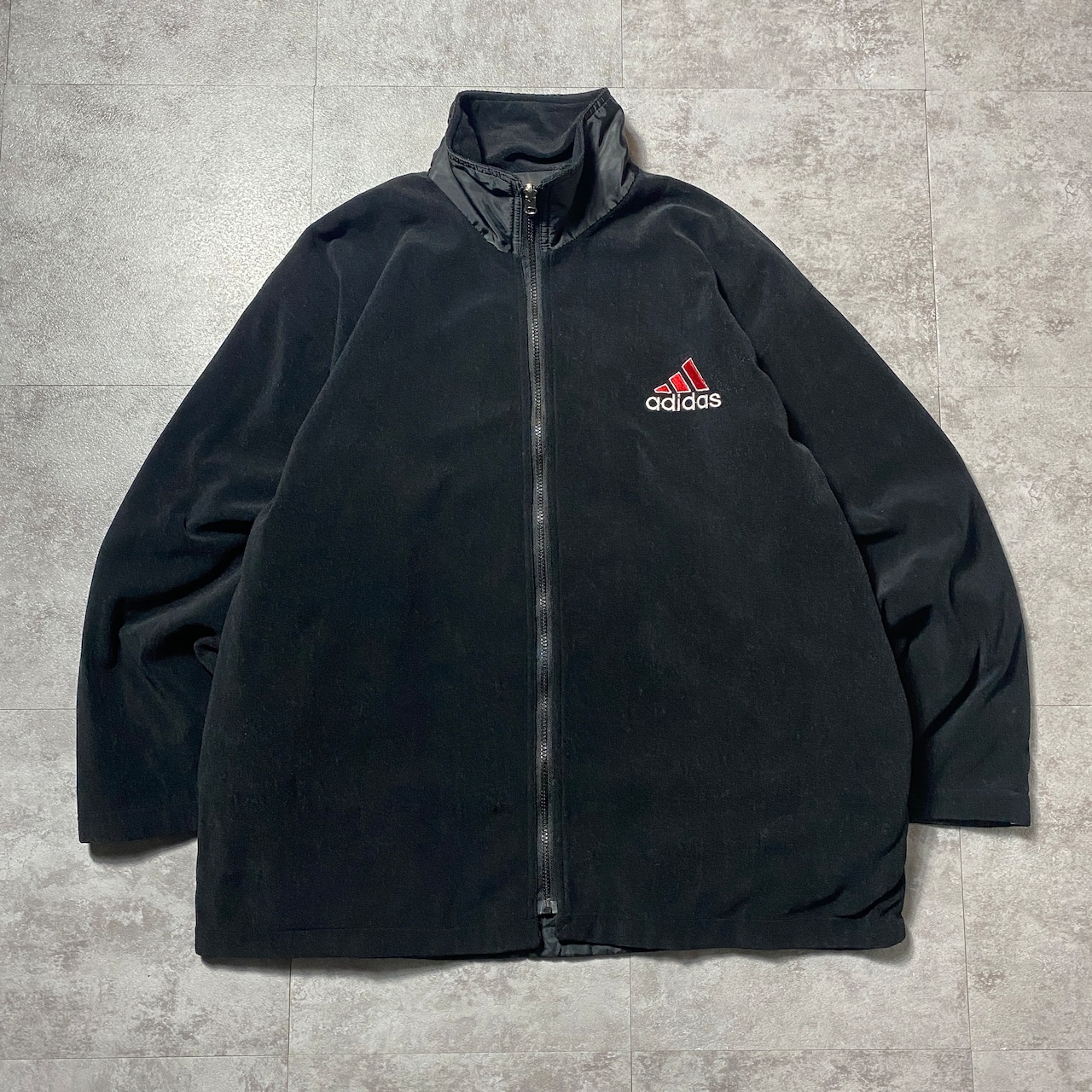 90's adidasアディダス トレフォイル&パフォーマンスロゴ 刺繍 フリース ナイロン リバーシブルジャケット