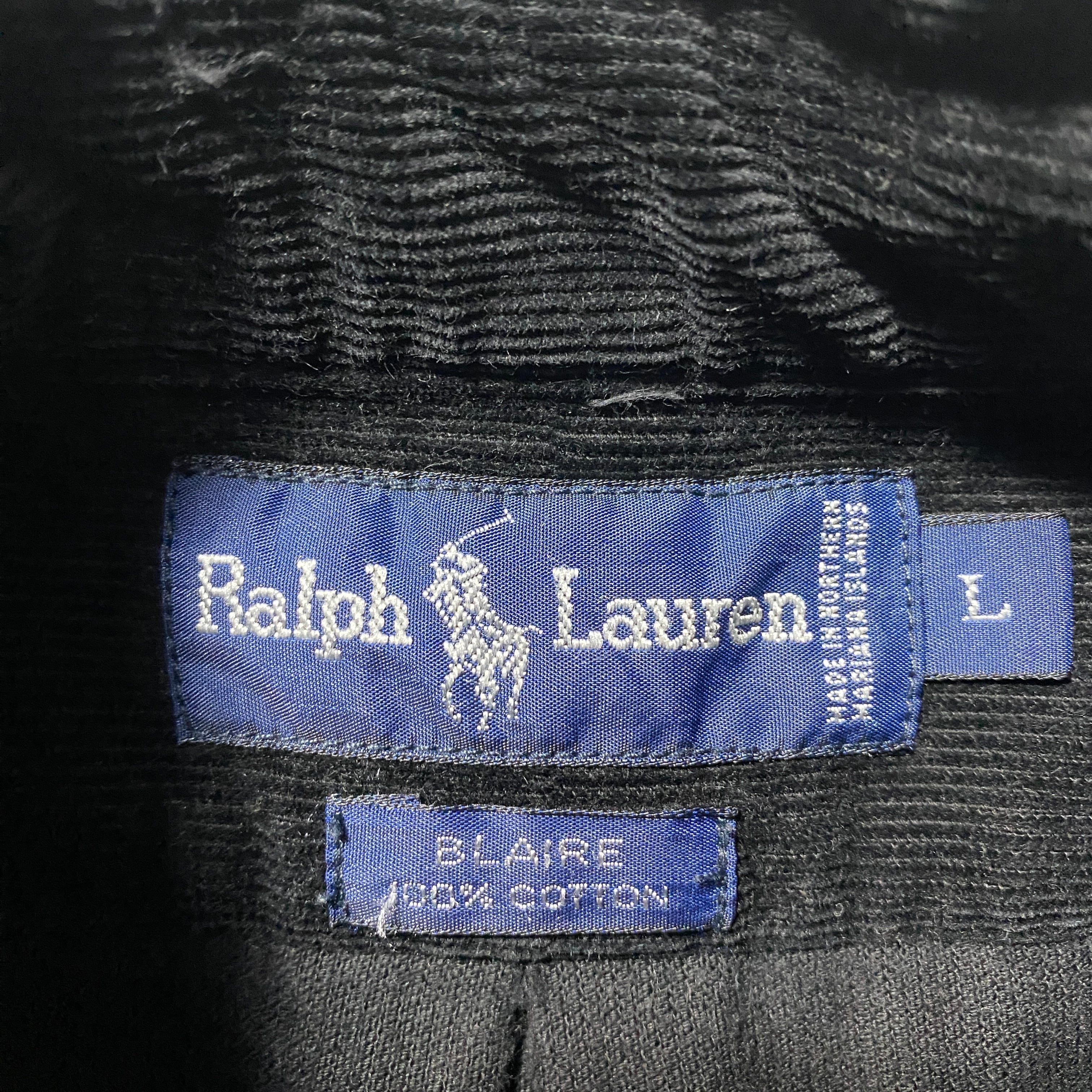 Ralph Lauren ラルフローレン 刺繍ロゴ コーデュロイ生地 ブラック ボタンダウンシャツ