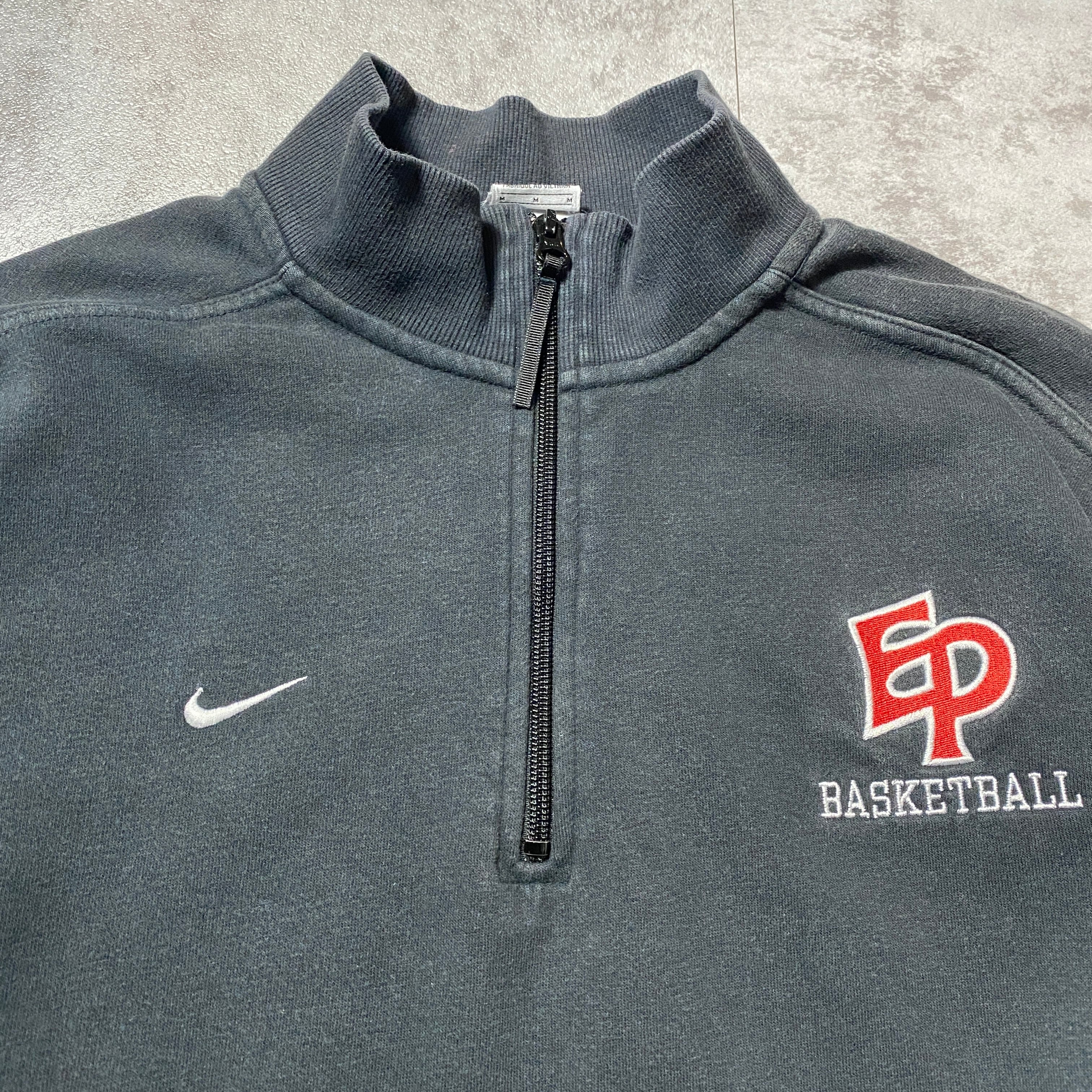 00's NIKE ナイキ スウォッシュ 刺繍チームロゴ ハーフジップ ブラック 黒 スウェット トレーナー