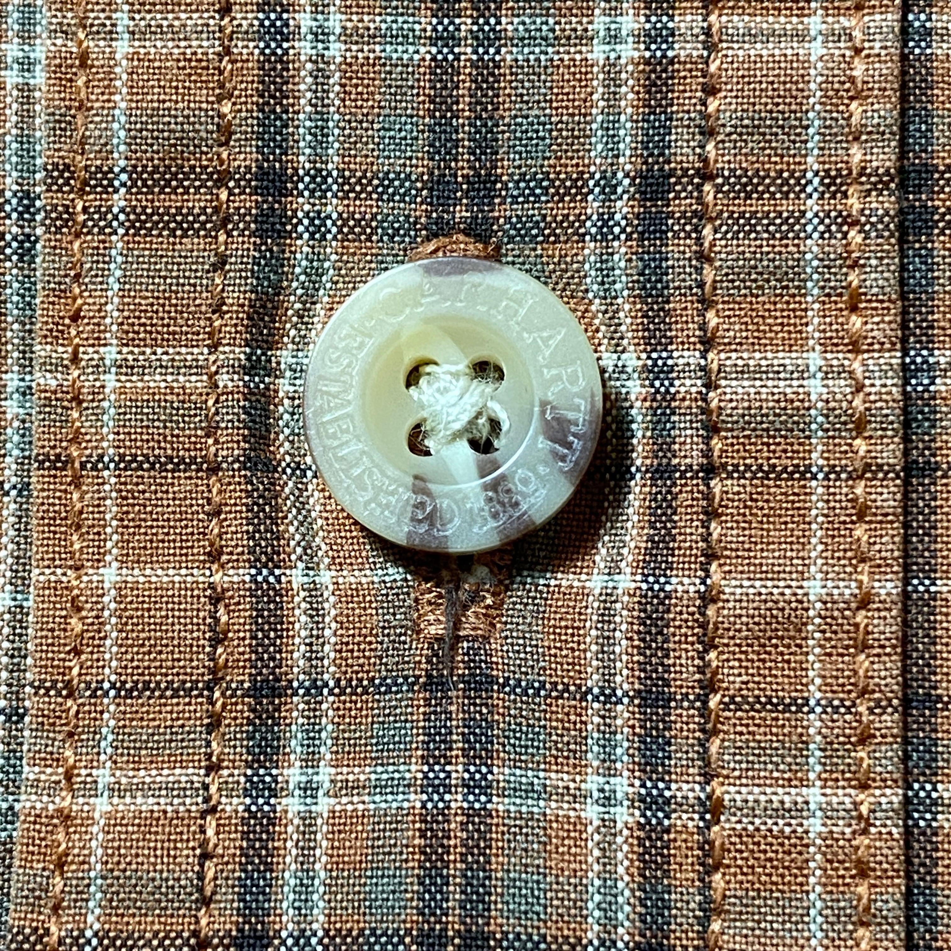 【Size.XL】carhartt カーハート 革ラベル ブラウン チェック総柄 ボタンダウン シャツ
