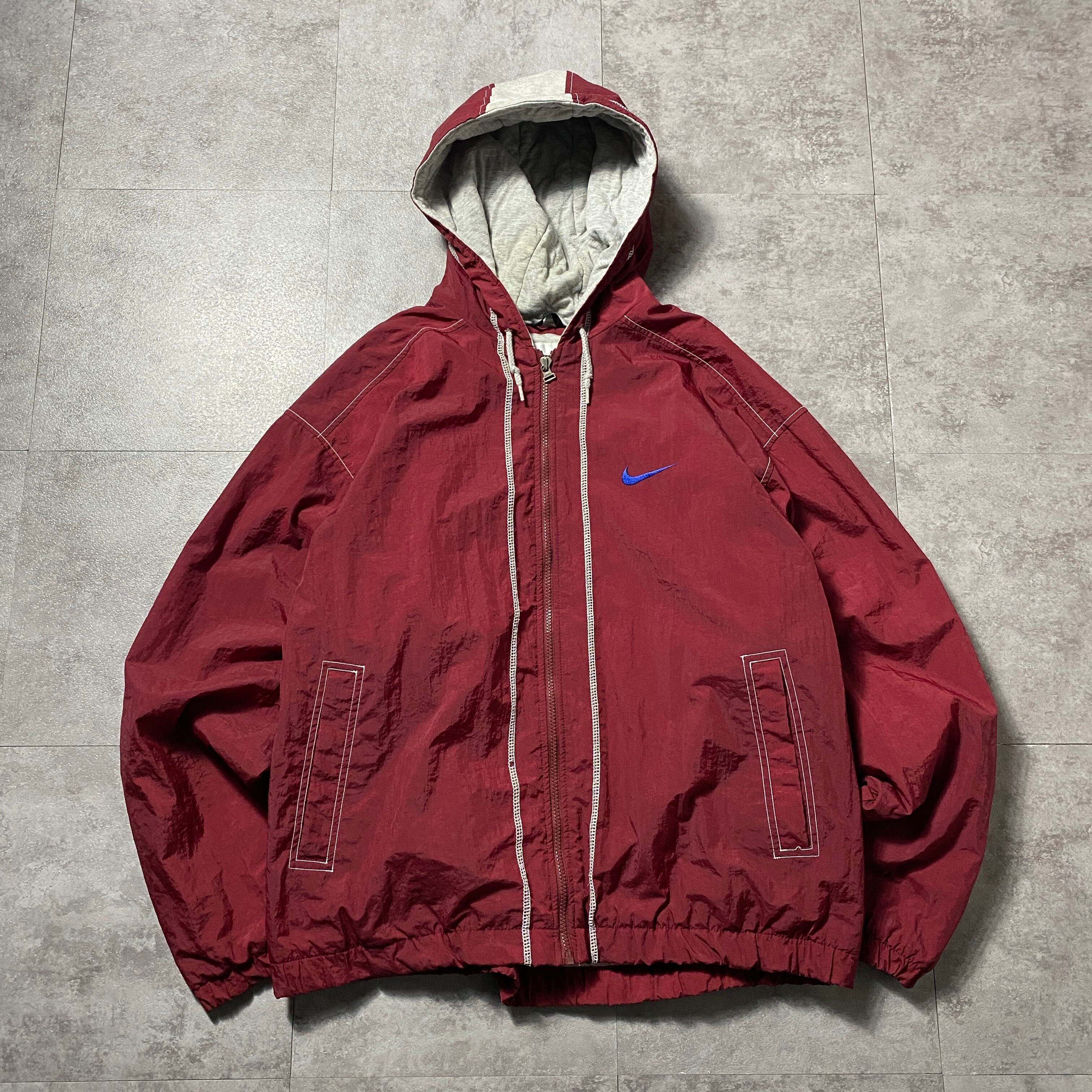 90's NIKE ナイキ スウォッシュ 刺繍ワンポイント バックロゴ レッド 中綿 ナイロンジャケット
