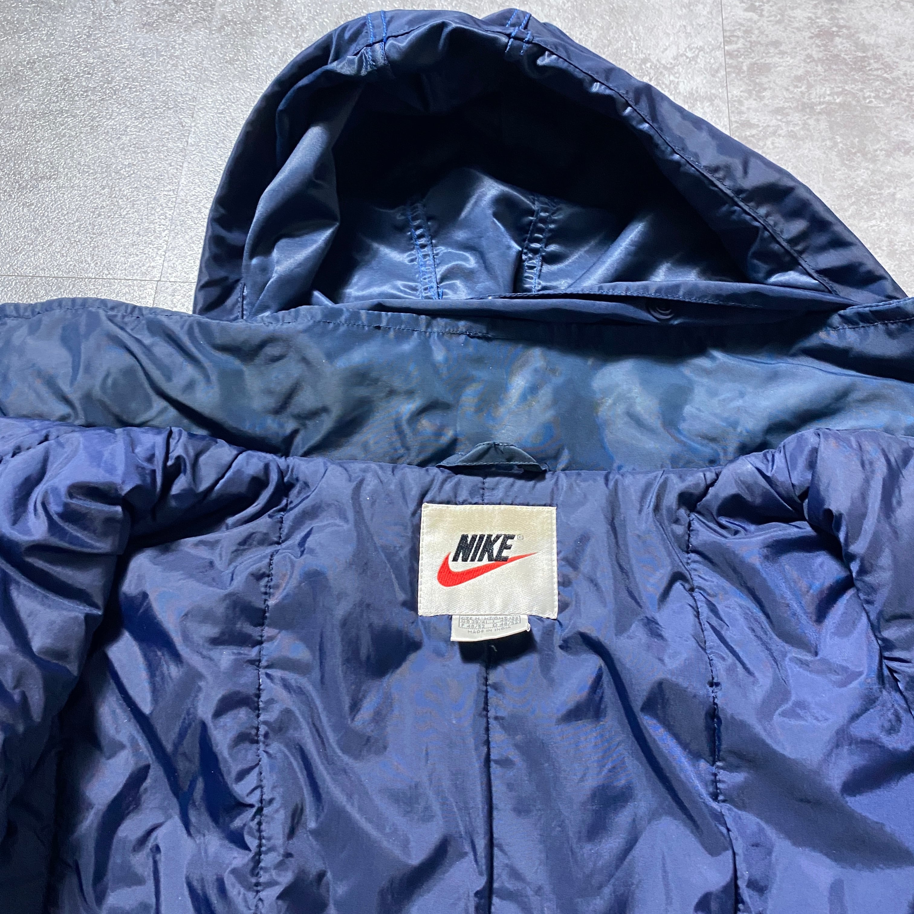 90's NIKE ナイキ スウォッシュ 刺繍ワンポイント アームロゴ 中綿 ネイビー ナイロンジャケット