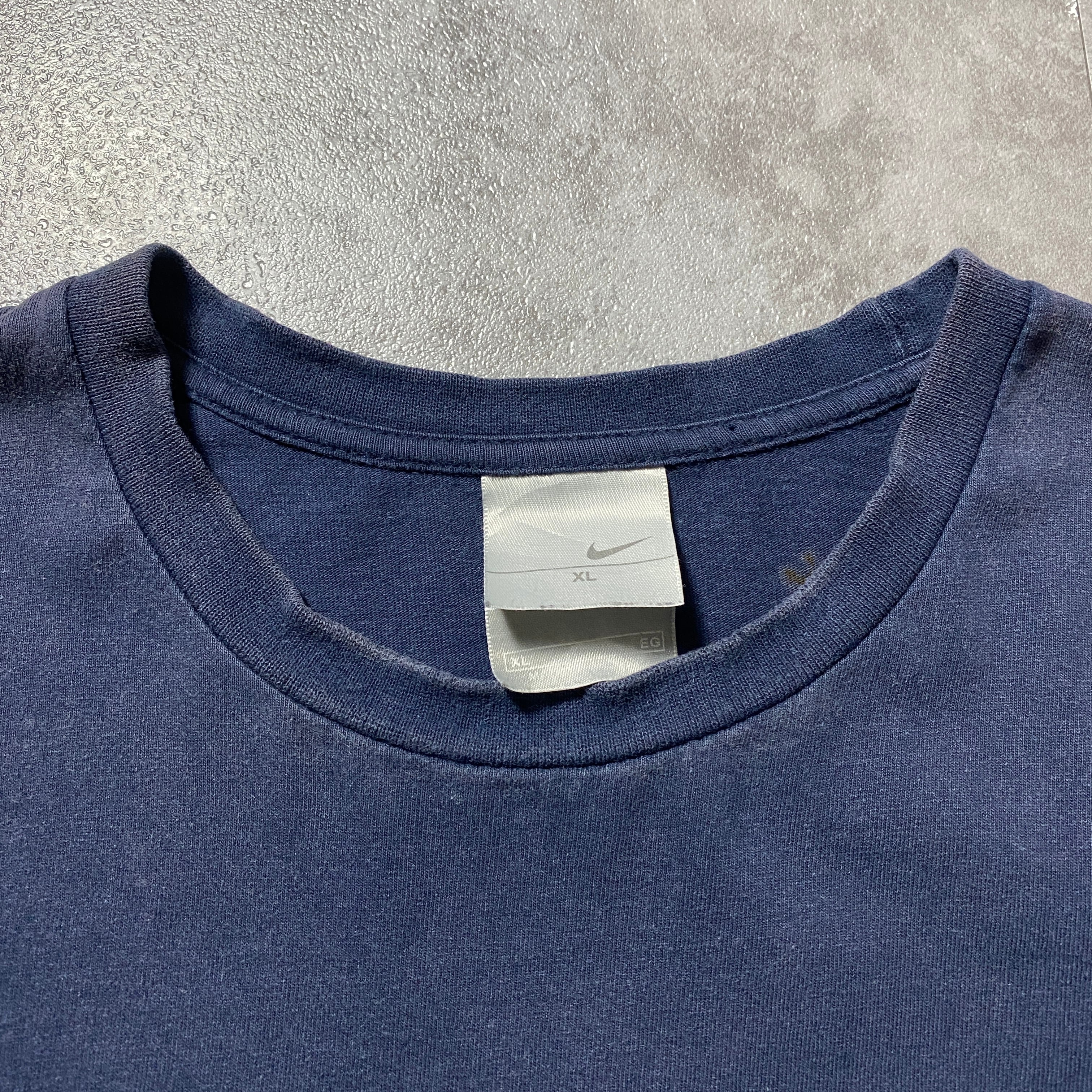 【Size.XL】00's NIKE ナイキ バスケットボールプレイヤー 刺繍デザイン フェードネイビー Tシャツ ロンT