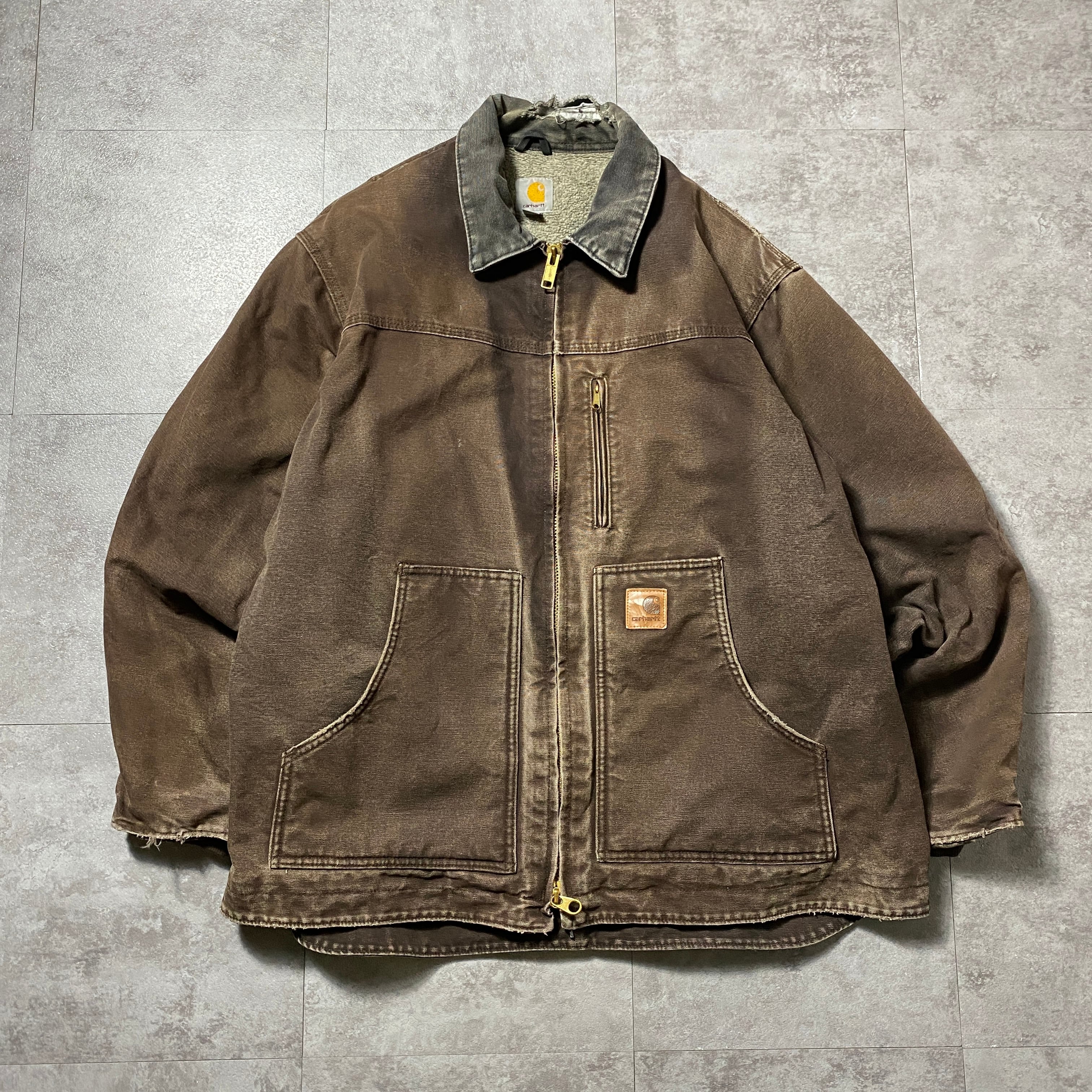 【Size.XL】carhartt カーハート レザーパッチ 内ボア フェードブラウン ダック トラディショナルジャケット