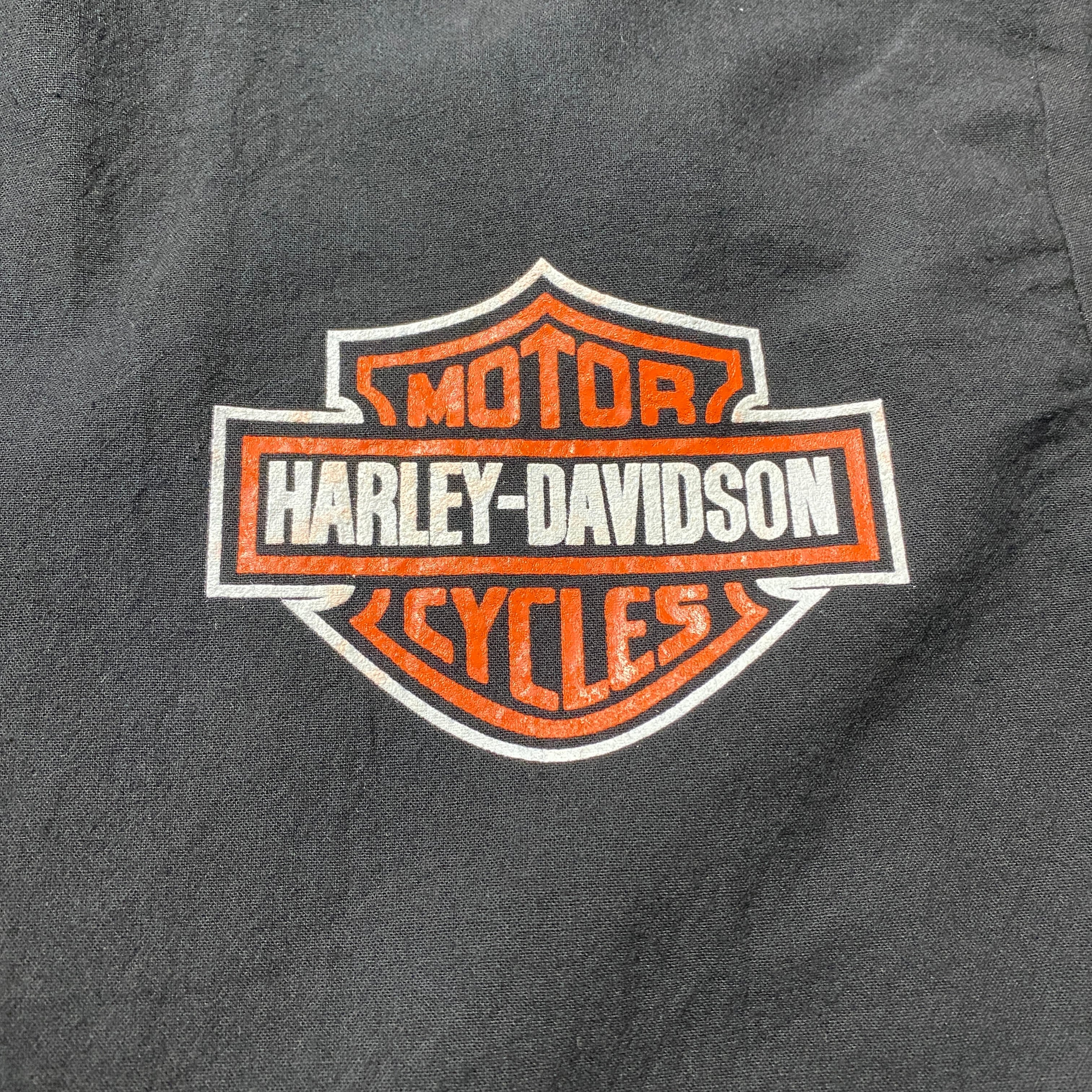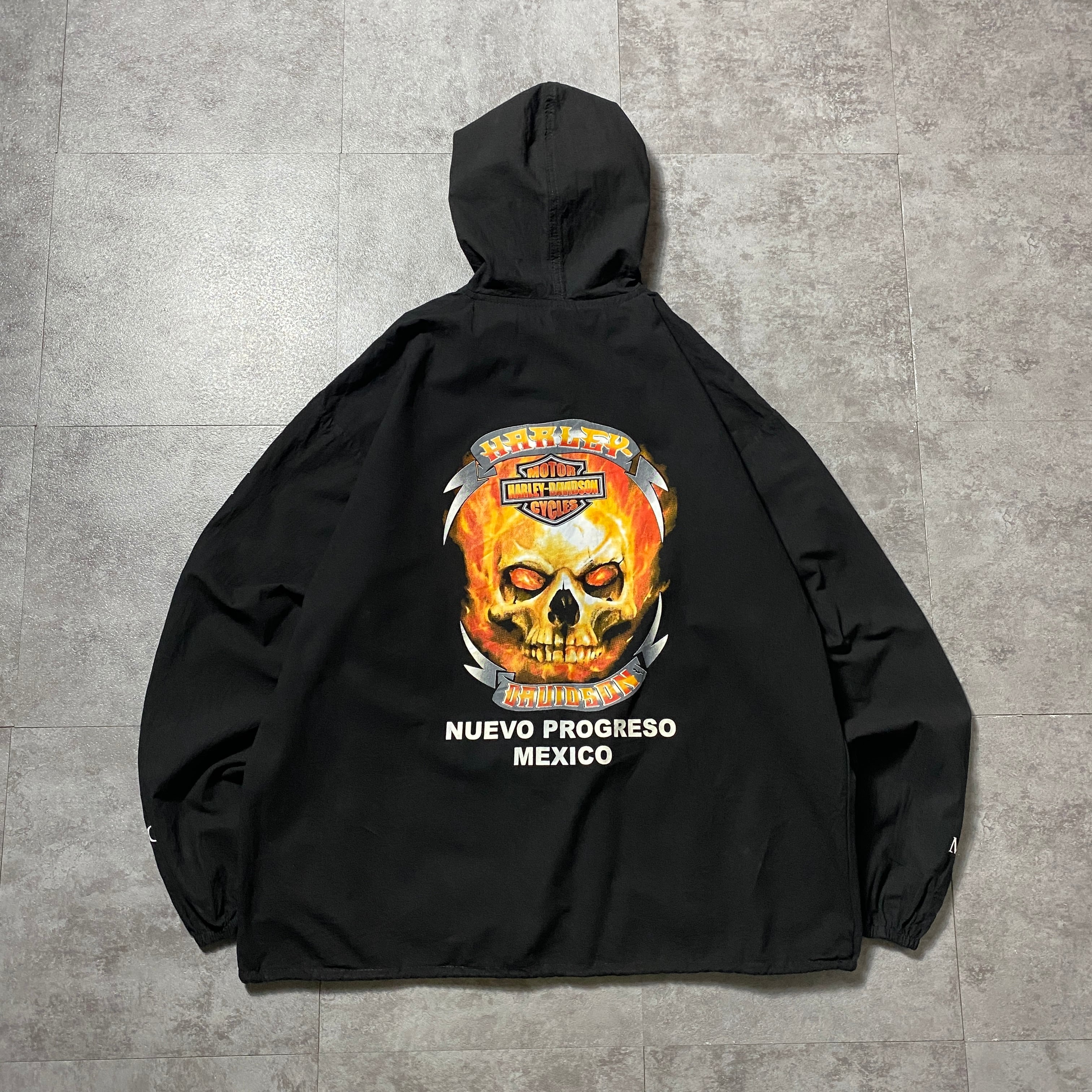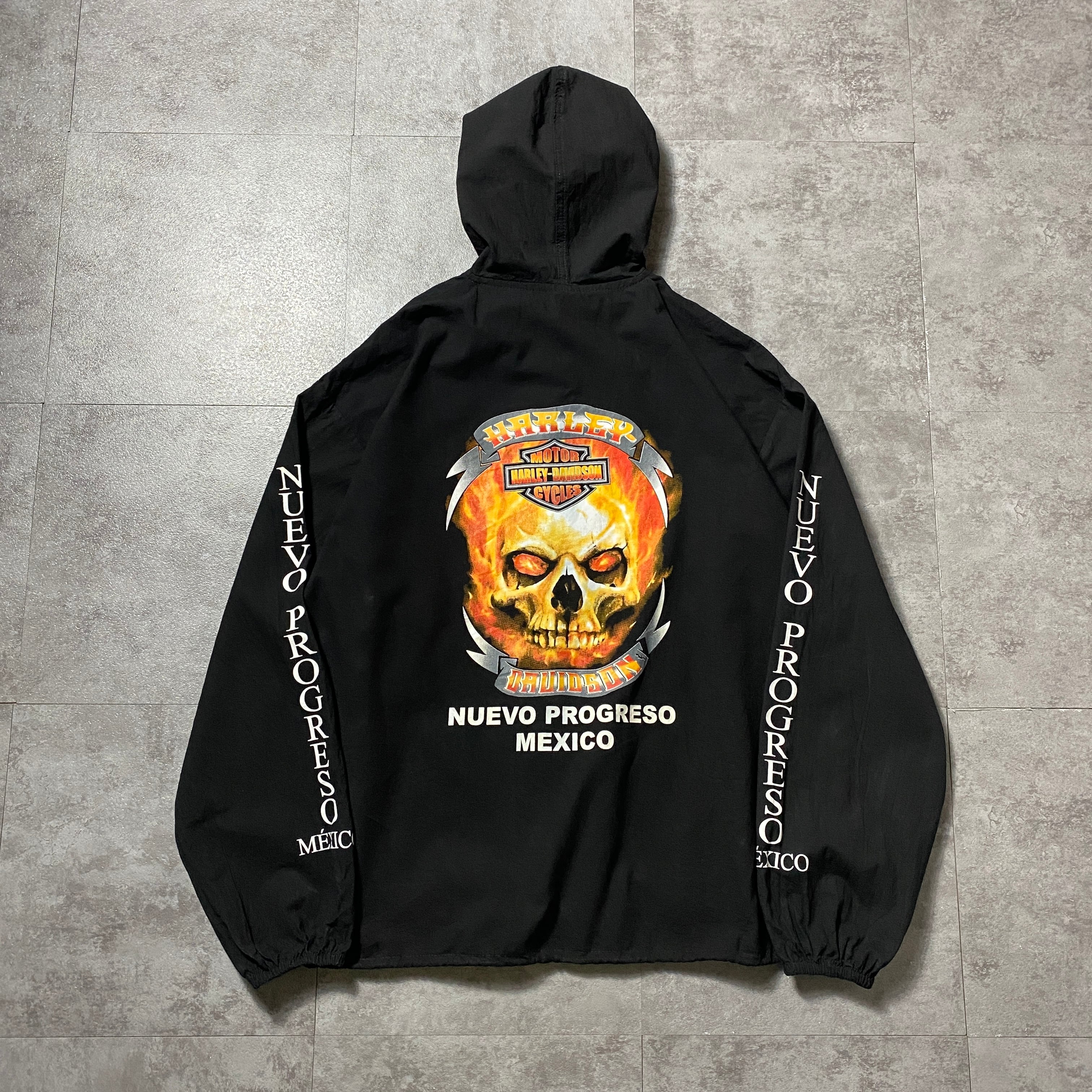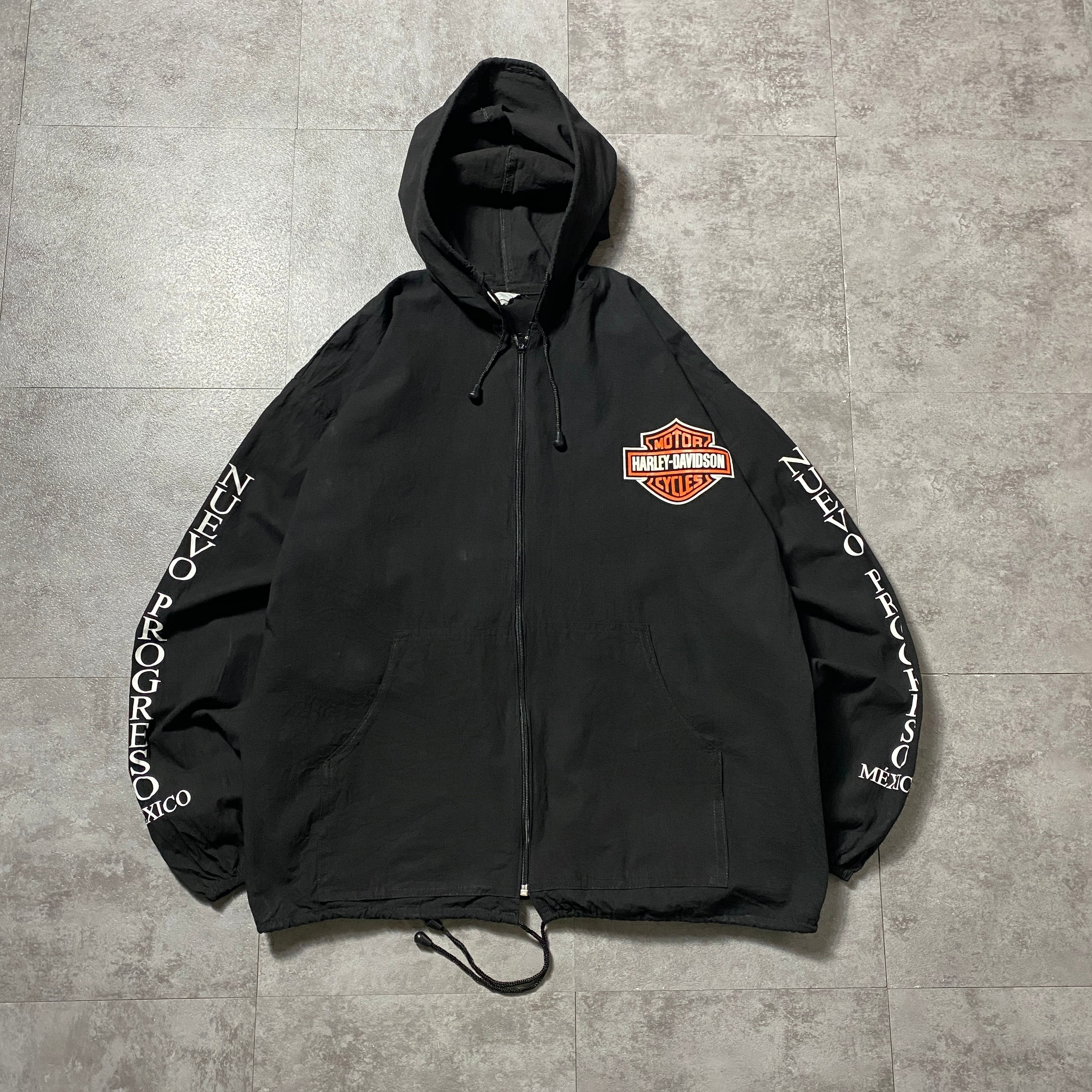 90s Harley-Davidson ハーレーダビッドソン アームプリント スカル バックプリント ブラック コットンジャケット ジップパーカー