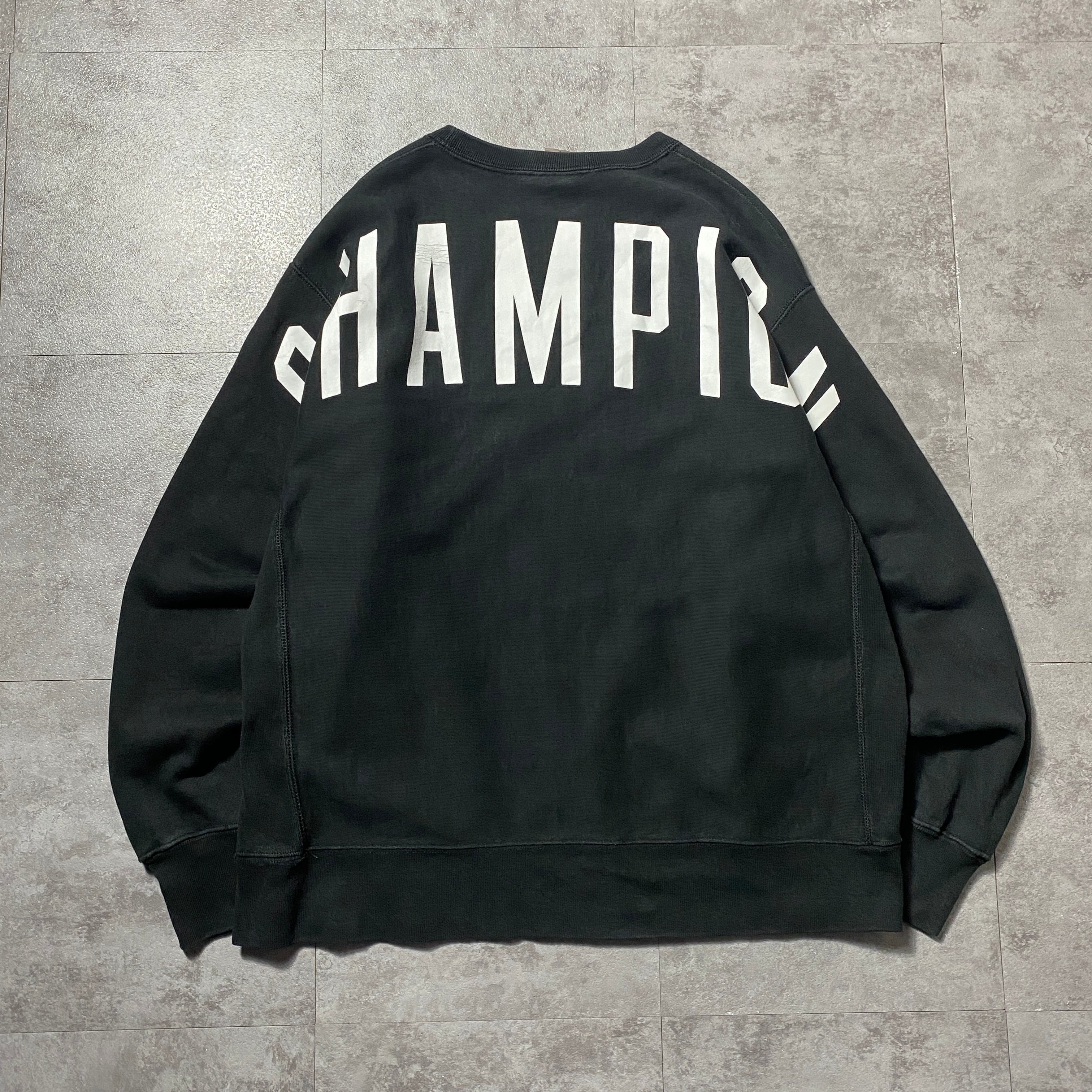 【Size.XL】00's Champion チャンピオン リバースウィーブ 刺繍ワンポイント バックプリント ブラック スウェット トレーナー