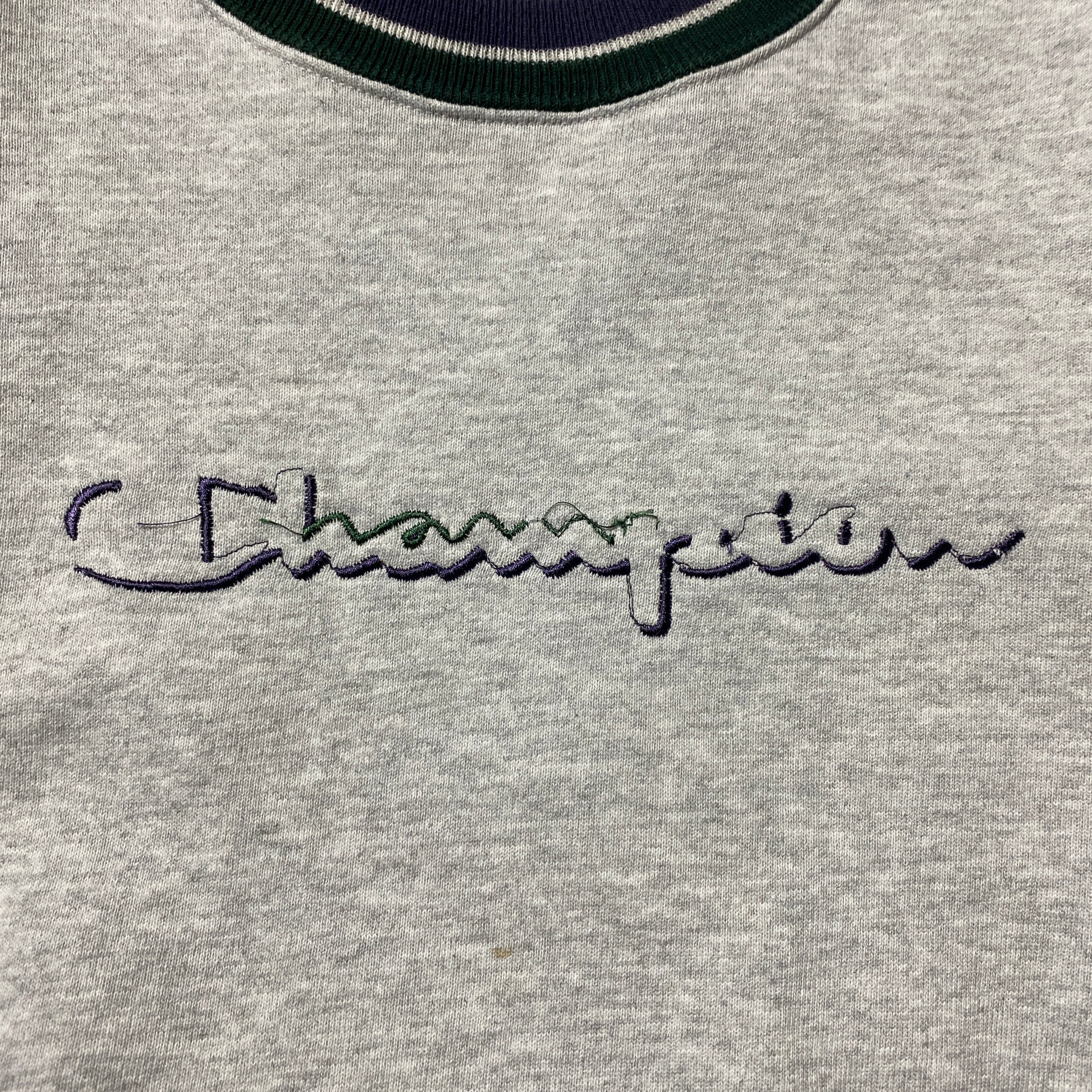 90's 00's Champion チャンピオン 刺繍ロゴ ラインリブ グレー スウェット トレーナー