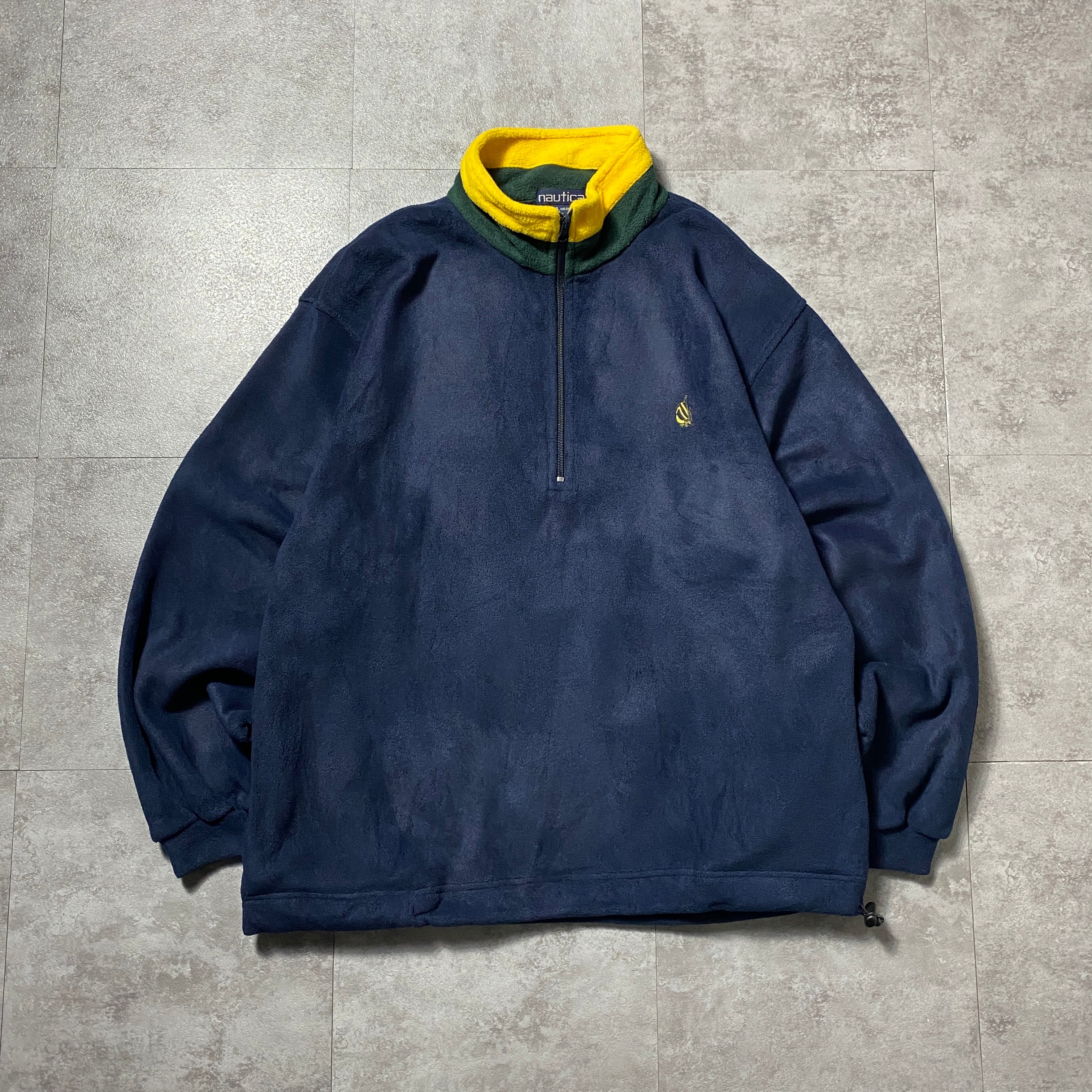 90's nautica ノーティカ 刺繍ワンポイント ハーフジップ ネイビー フリーススウェット