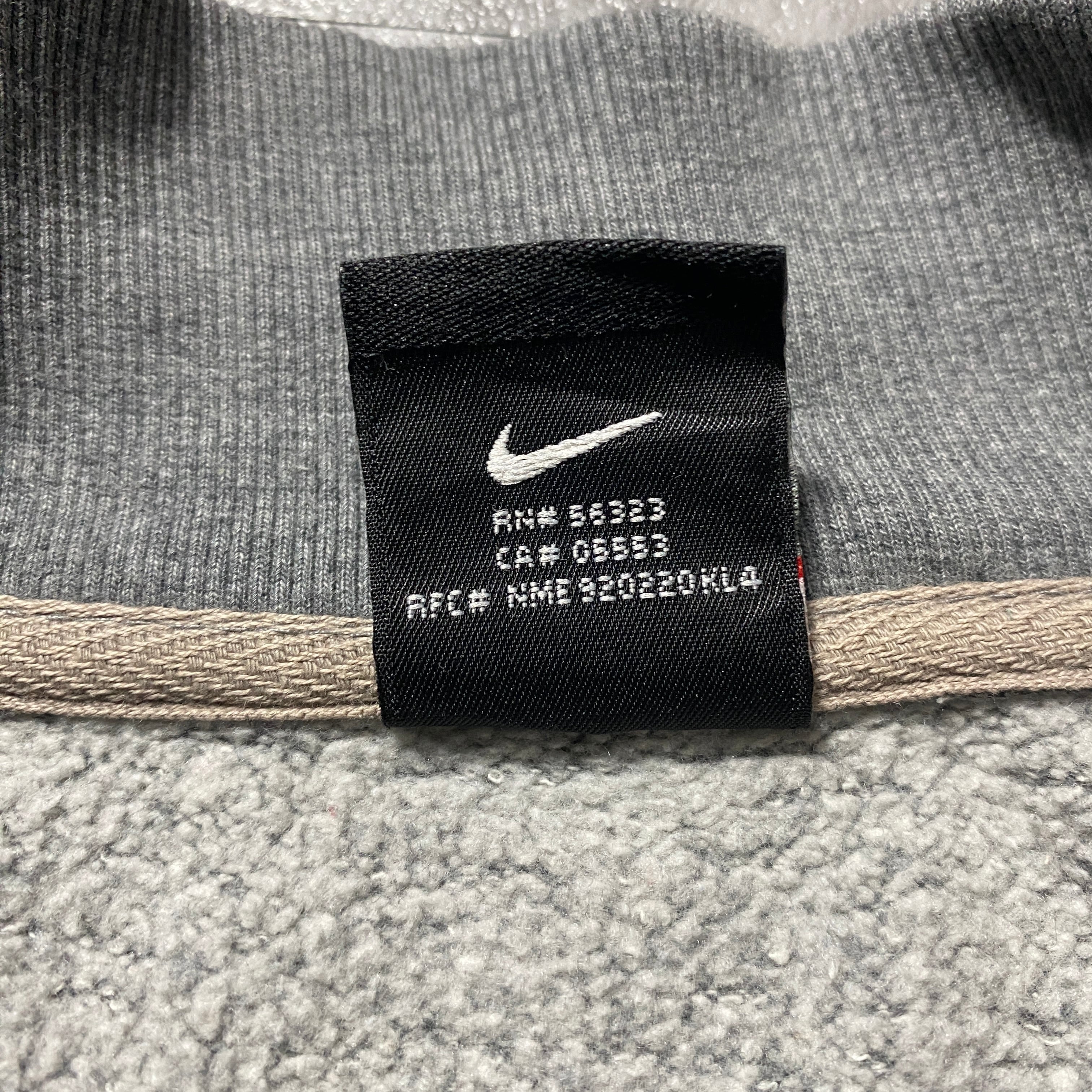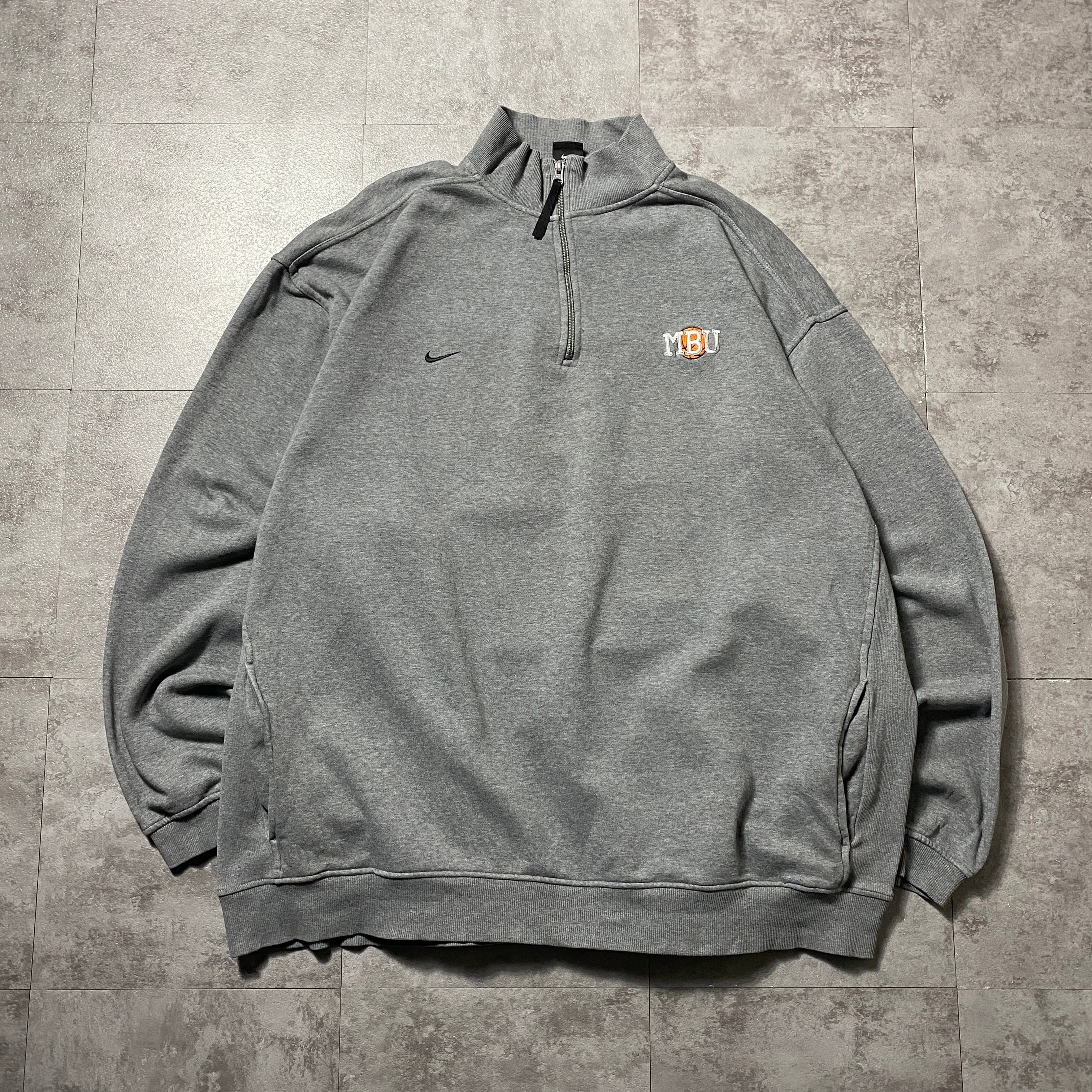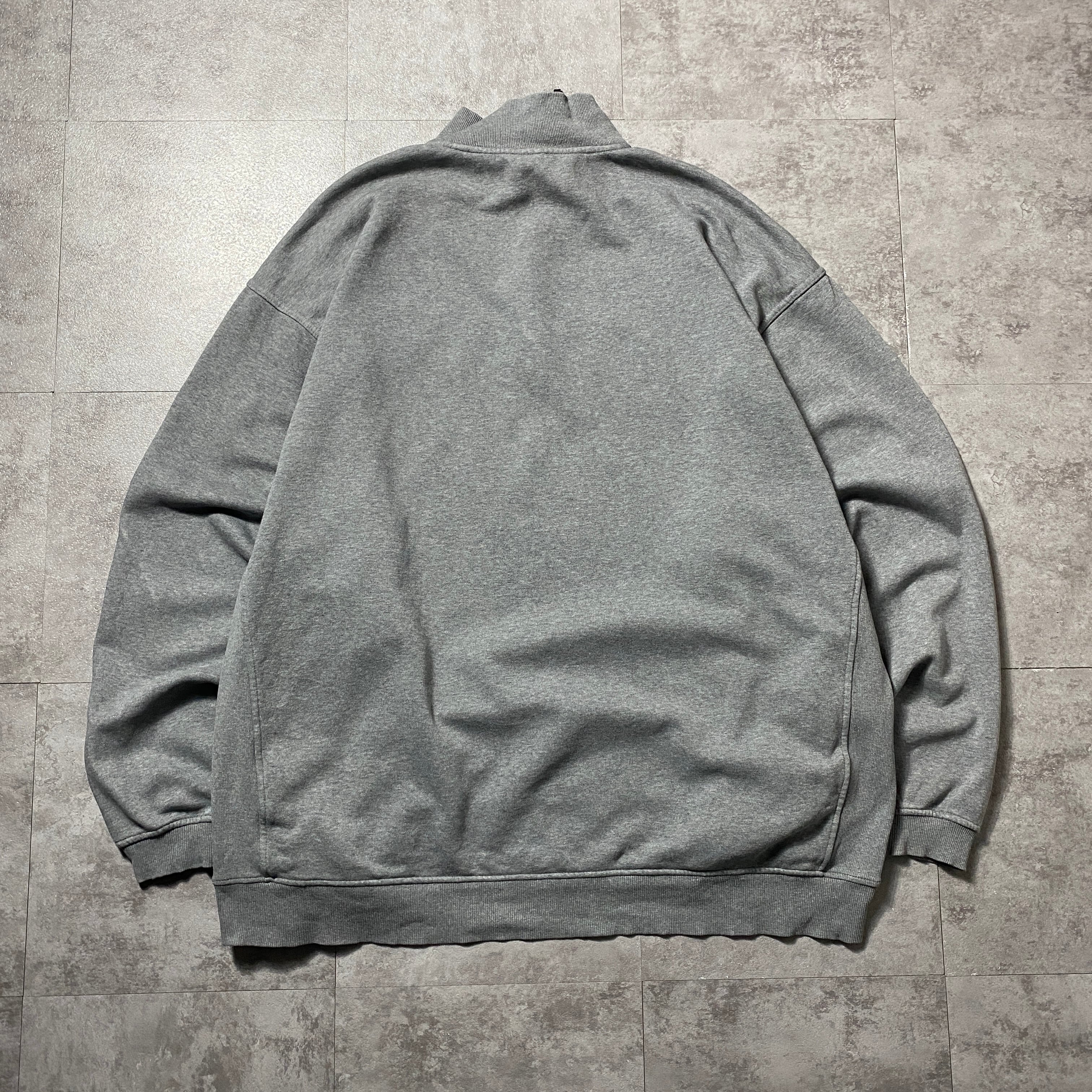 【Size.3XL】00's NIKE ナイキ スウォッシュ×チームエンブレム 刺繍ロゴ ハーフジップ グレー スウェット トレーナー