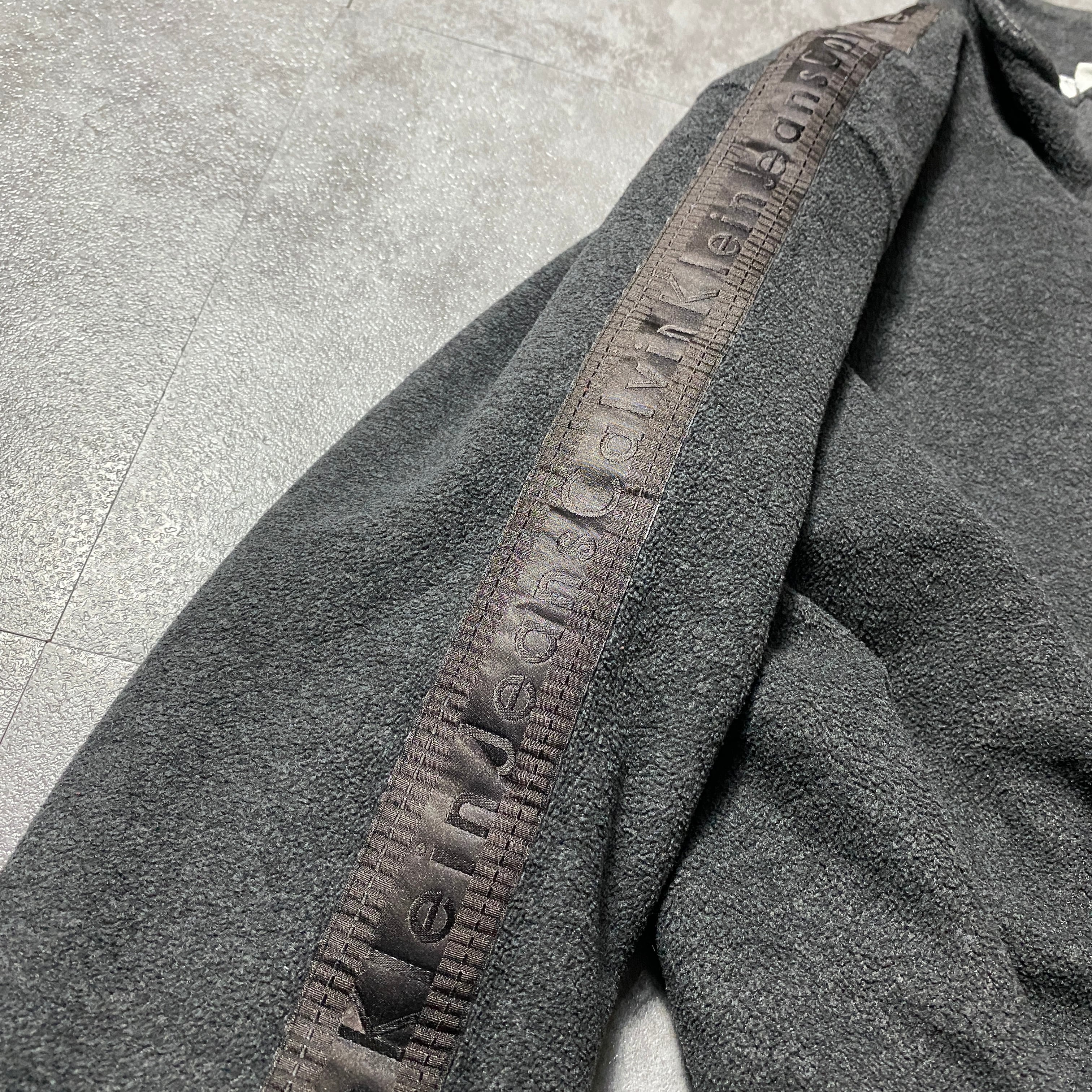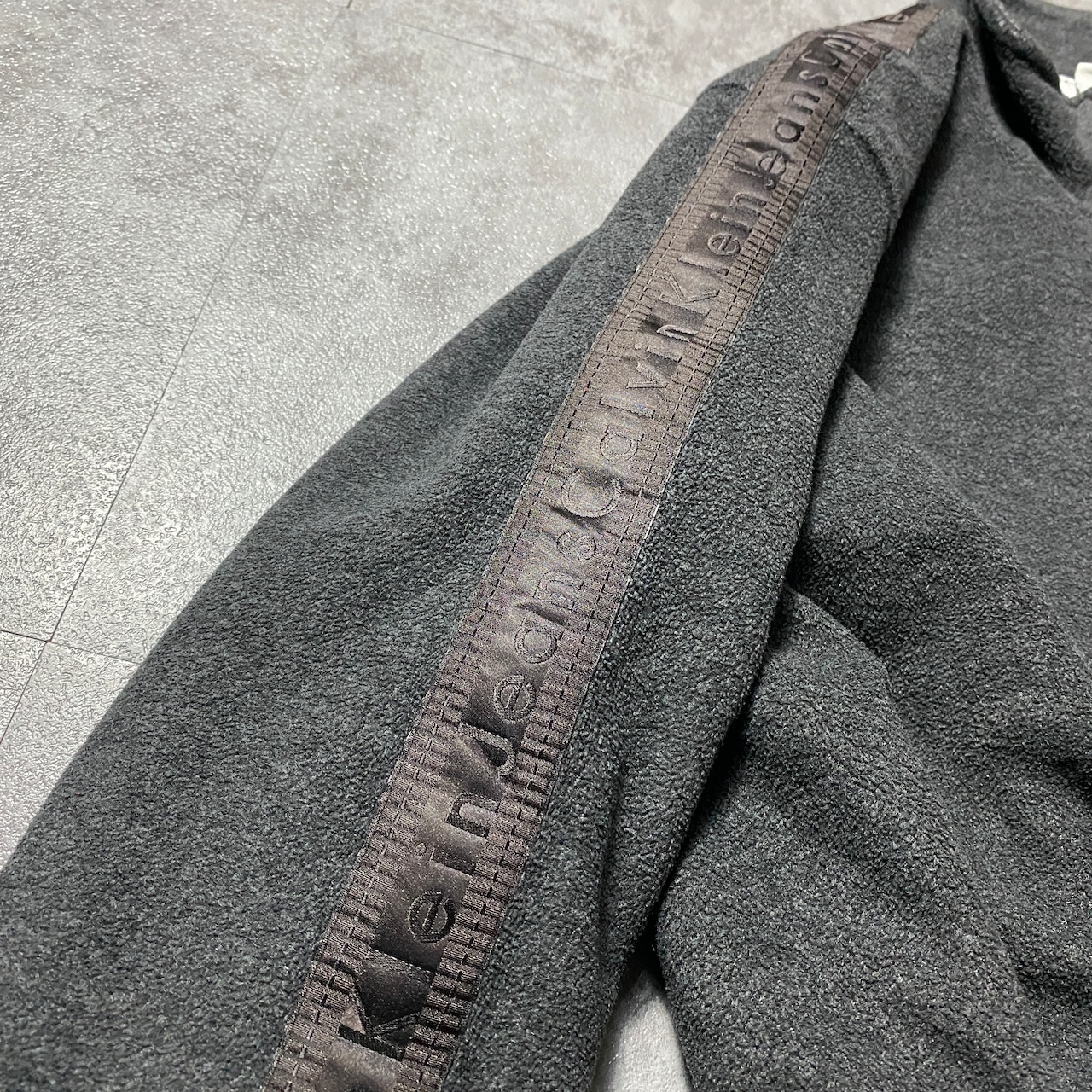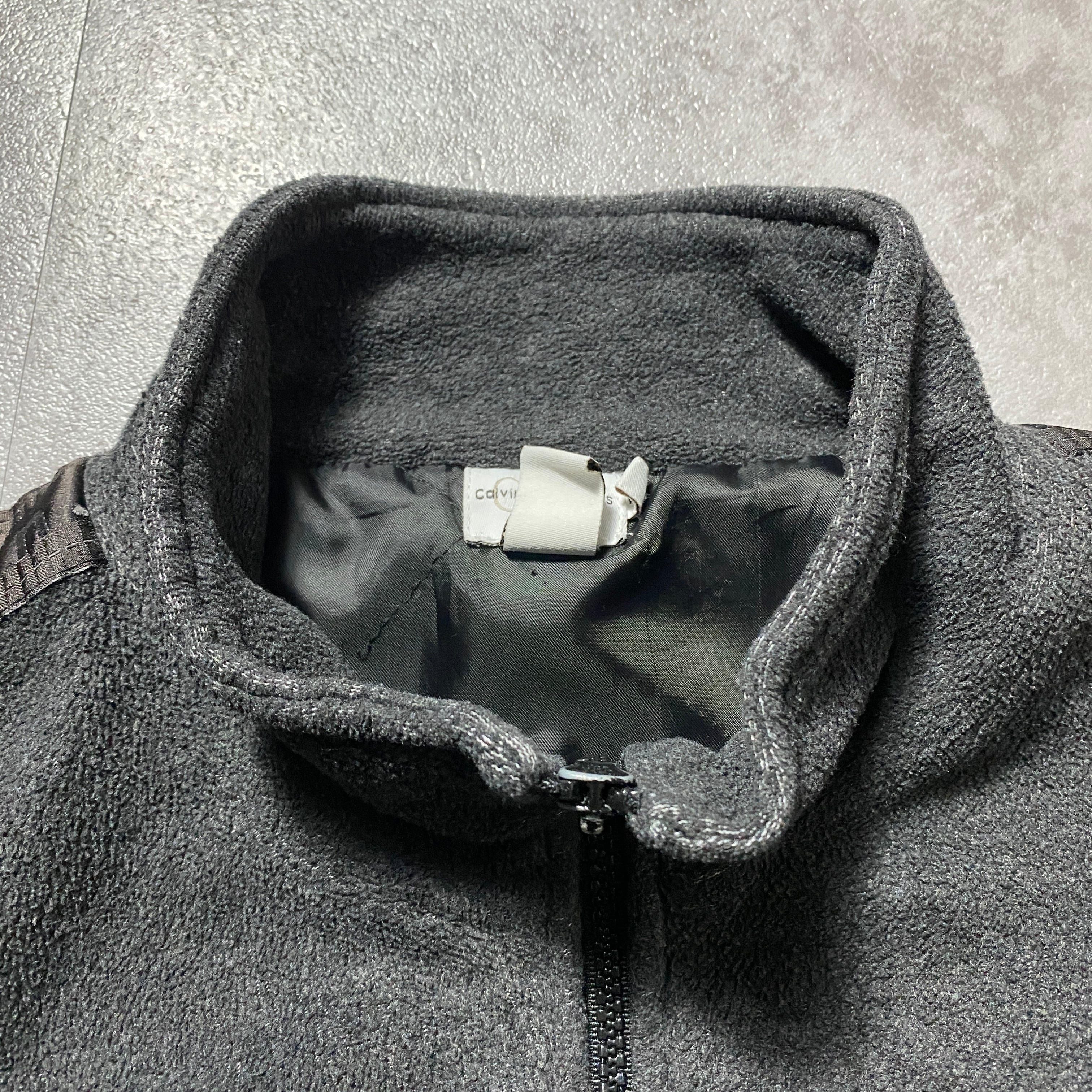 90's Calvin Klein カルバンクライン ワンポイント ラバーロゴ サイドロゴテープ ダークグレー フリースジャケット