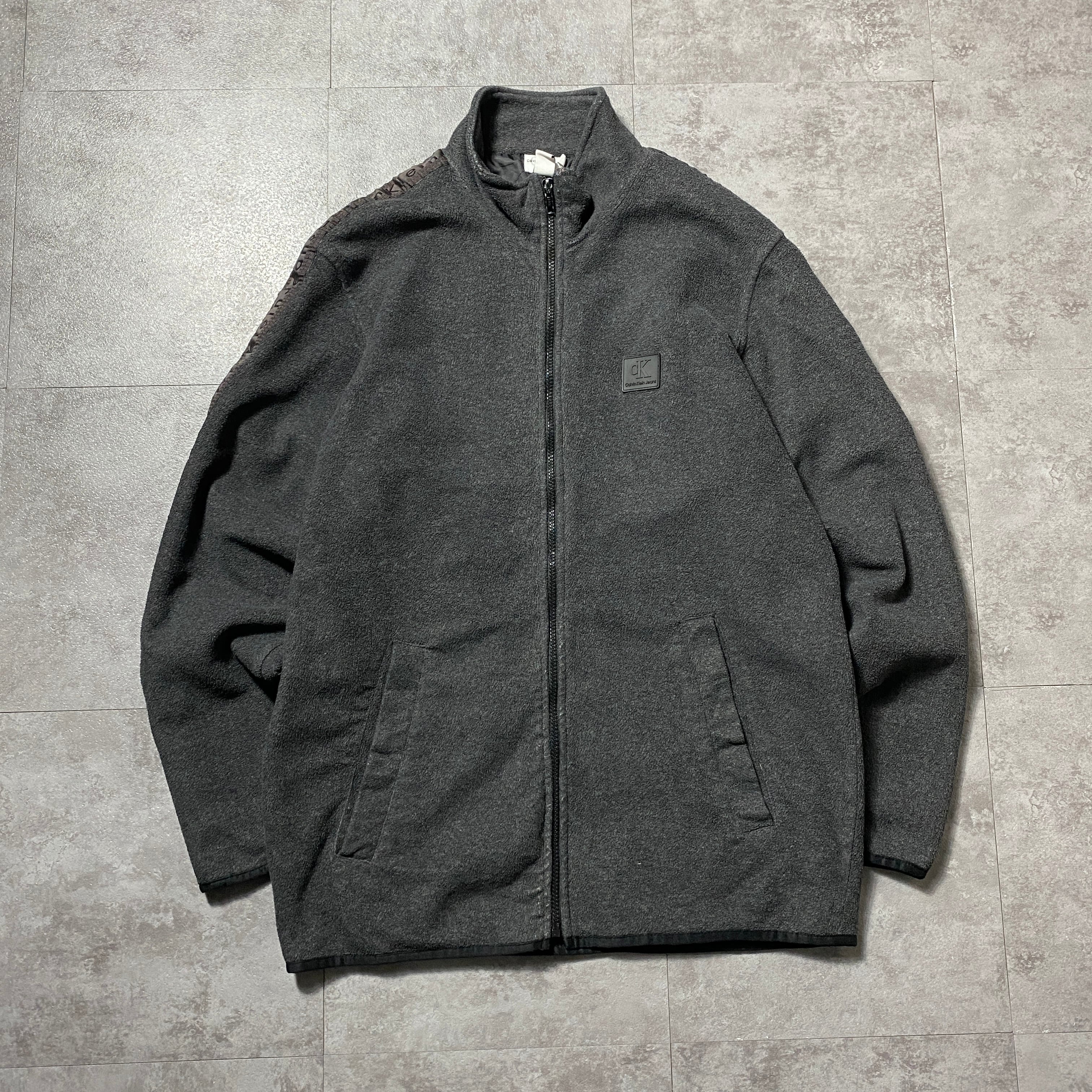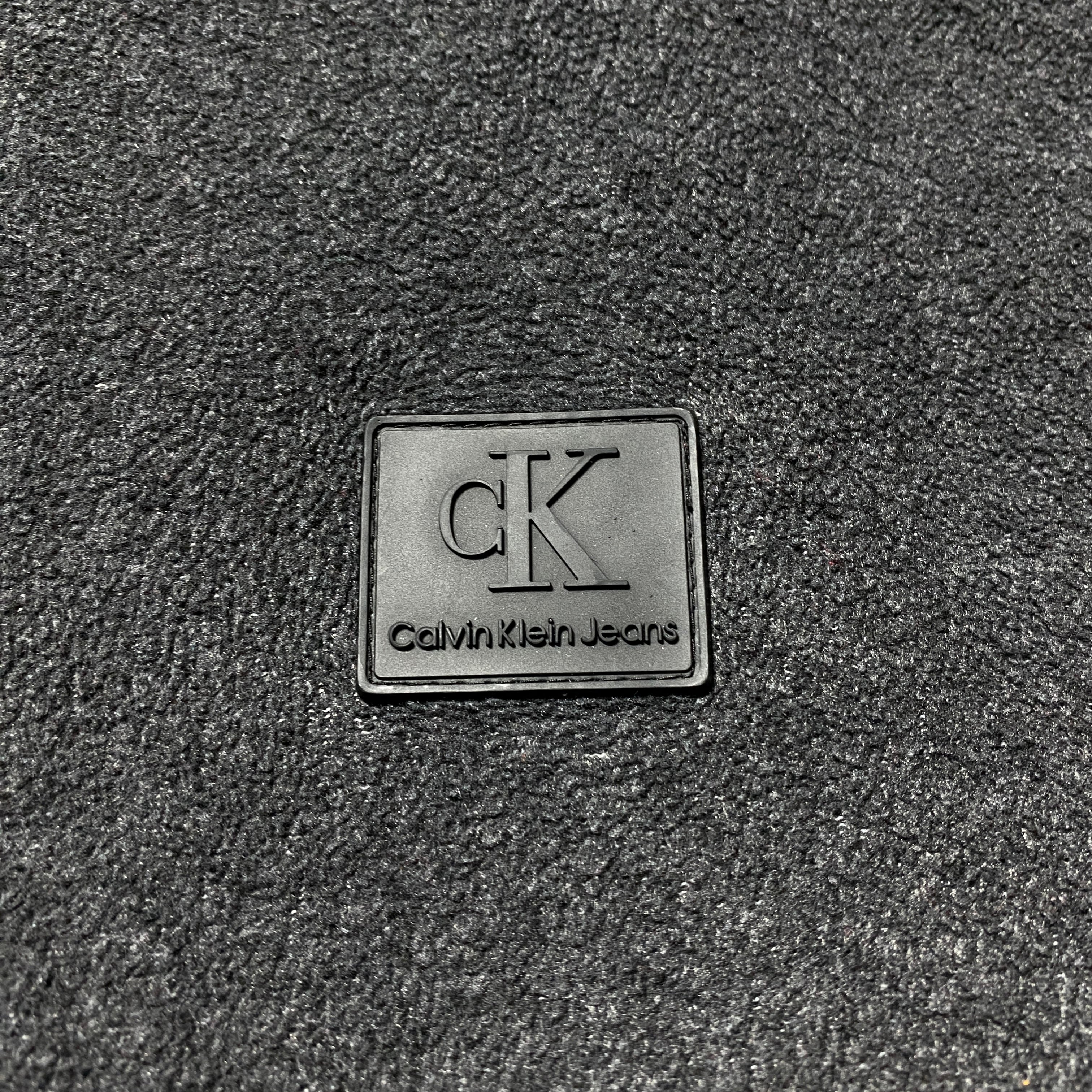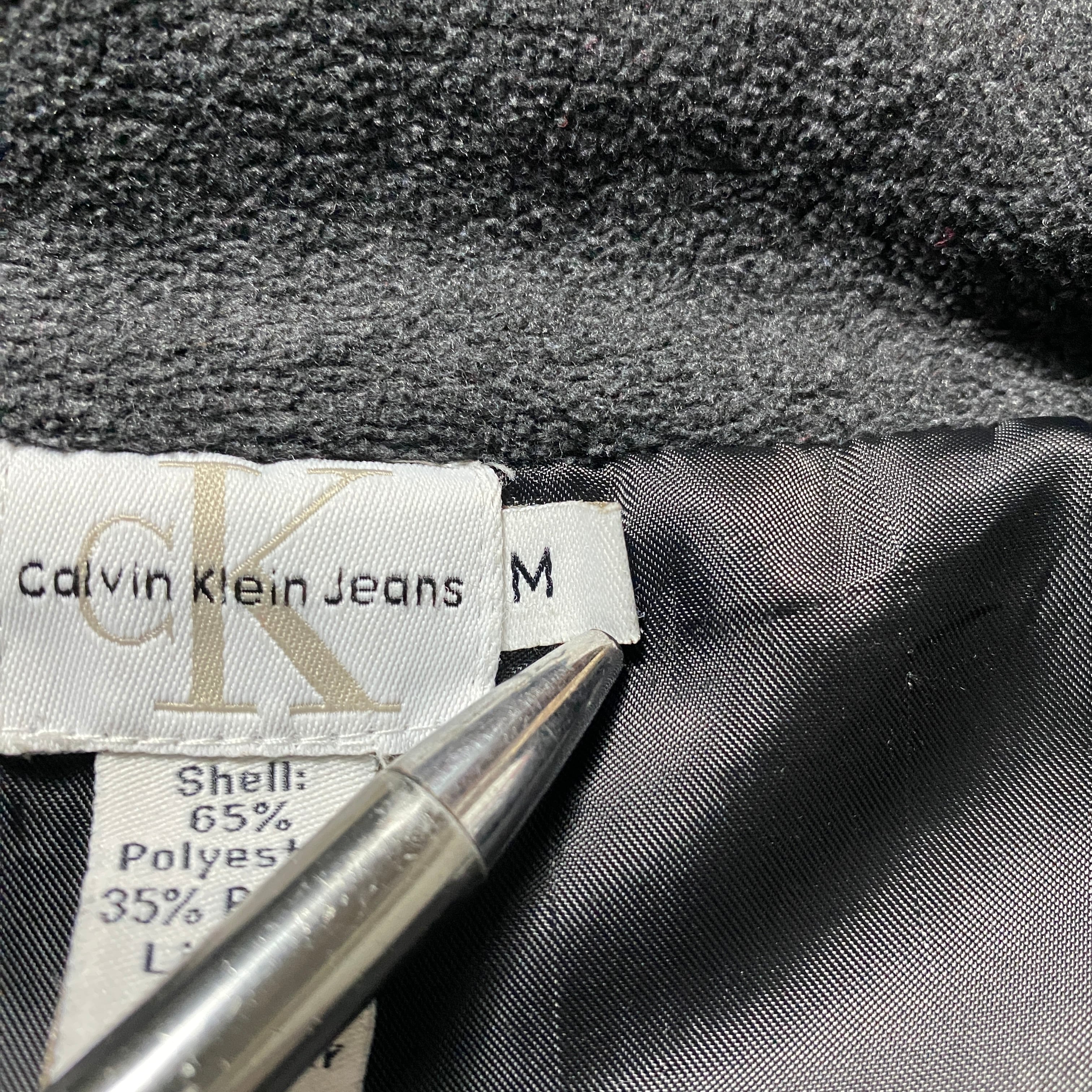 90's Calvin Klein カルバンクライン ワンポイント ラバーロゴ サイドロゴテープ ダークグレー フリースジャケット