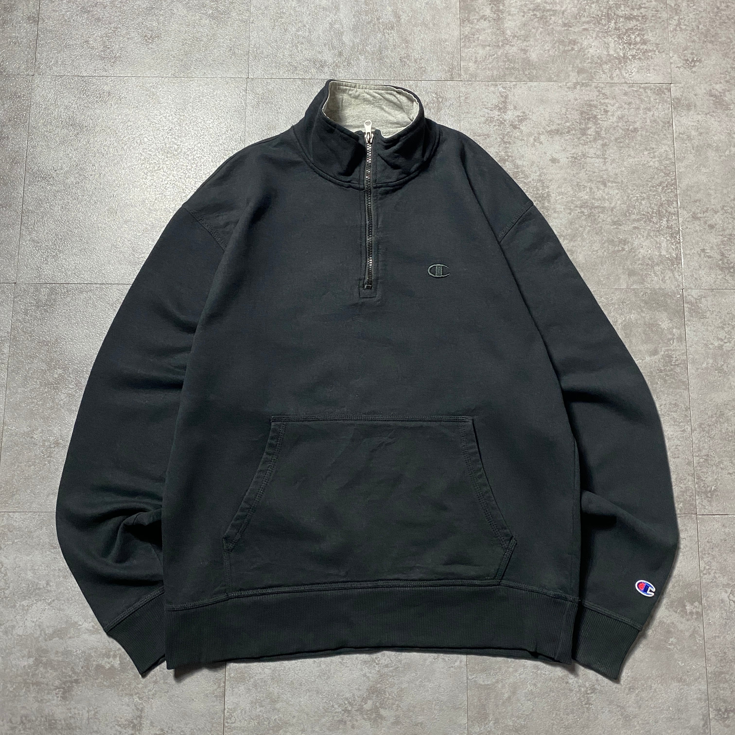 00's Champion チャンピオン 刺繍ワンポイント ハーフジップ ブラック スウェット トレーナー