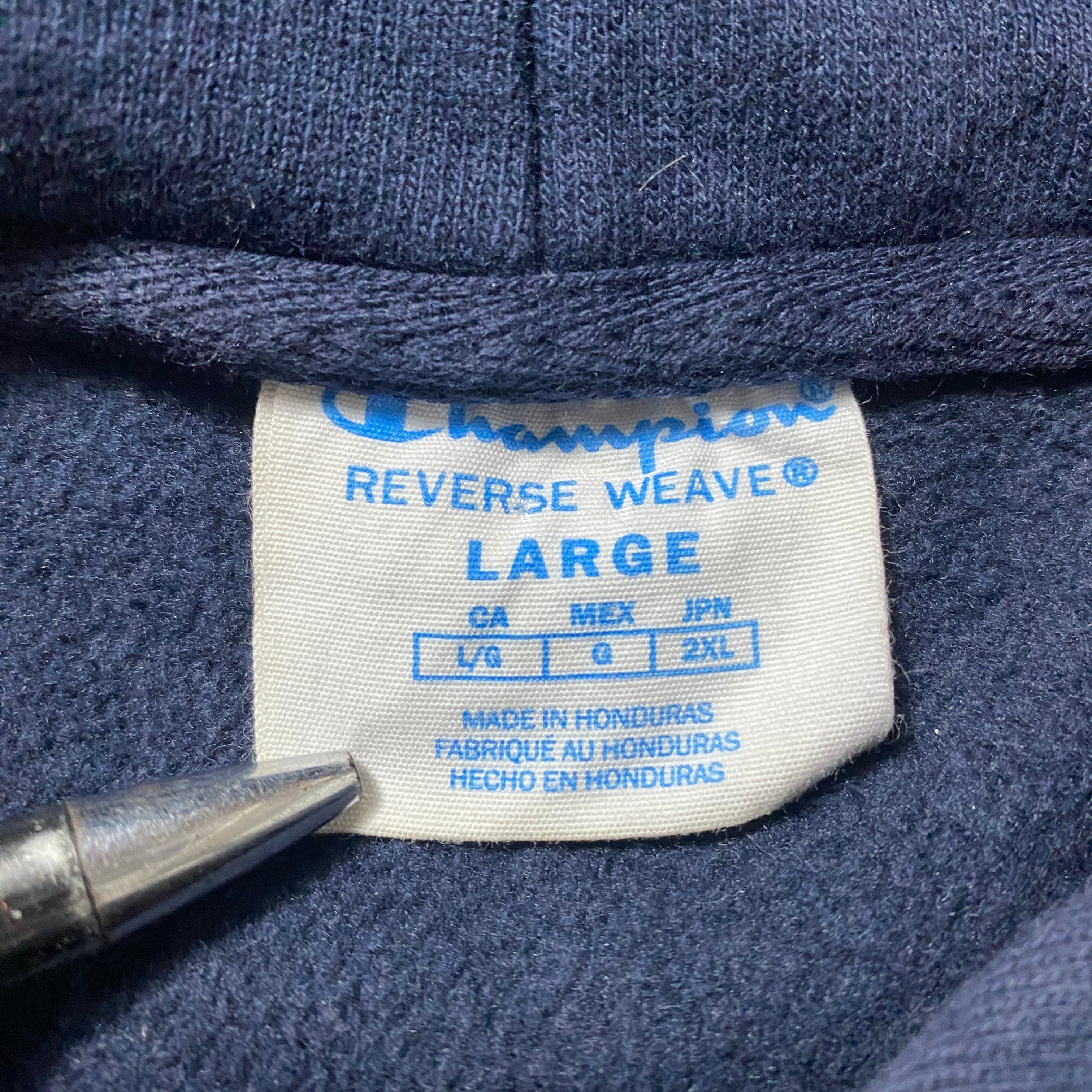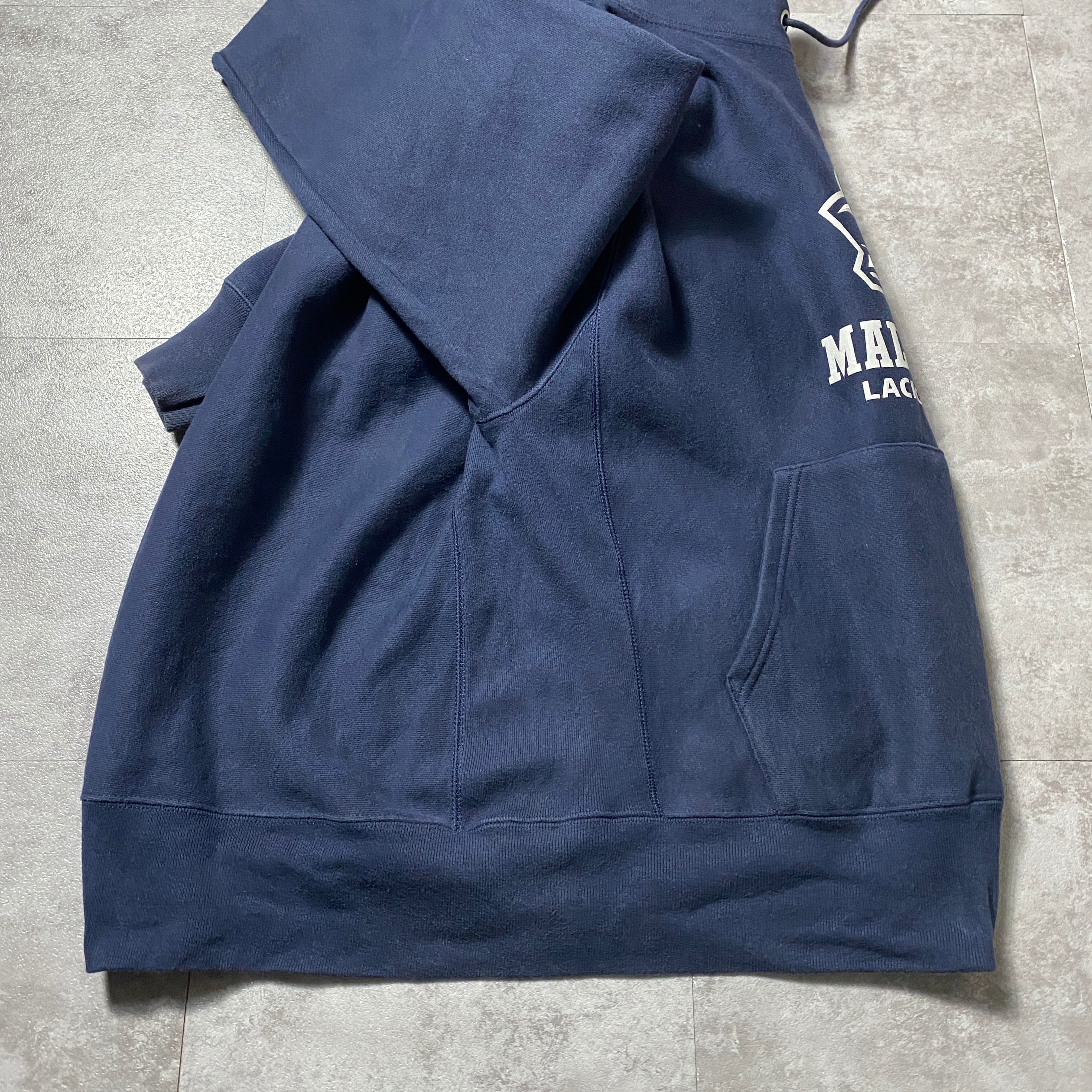 00's Champion チャンピオン リバースウィーブ ラクロス チームロゴ プリント ネイビー スウェット パーカー