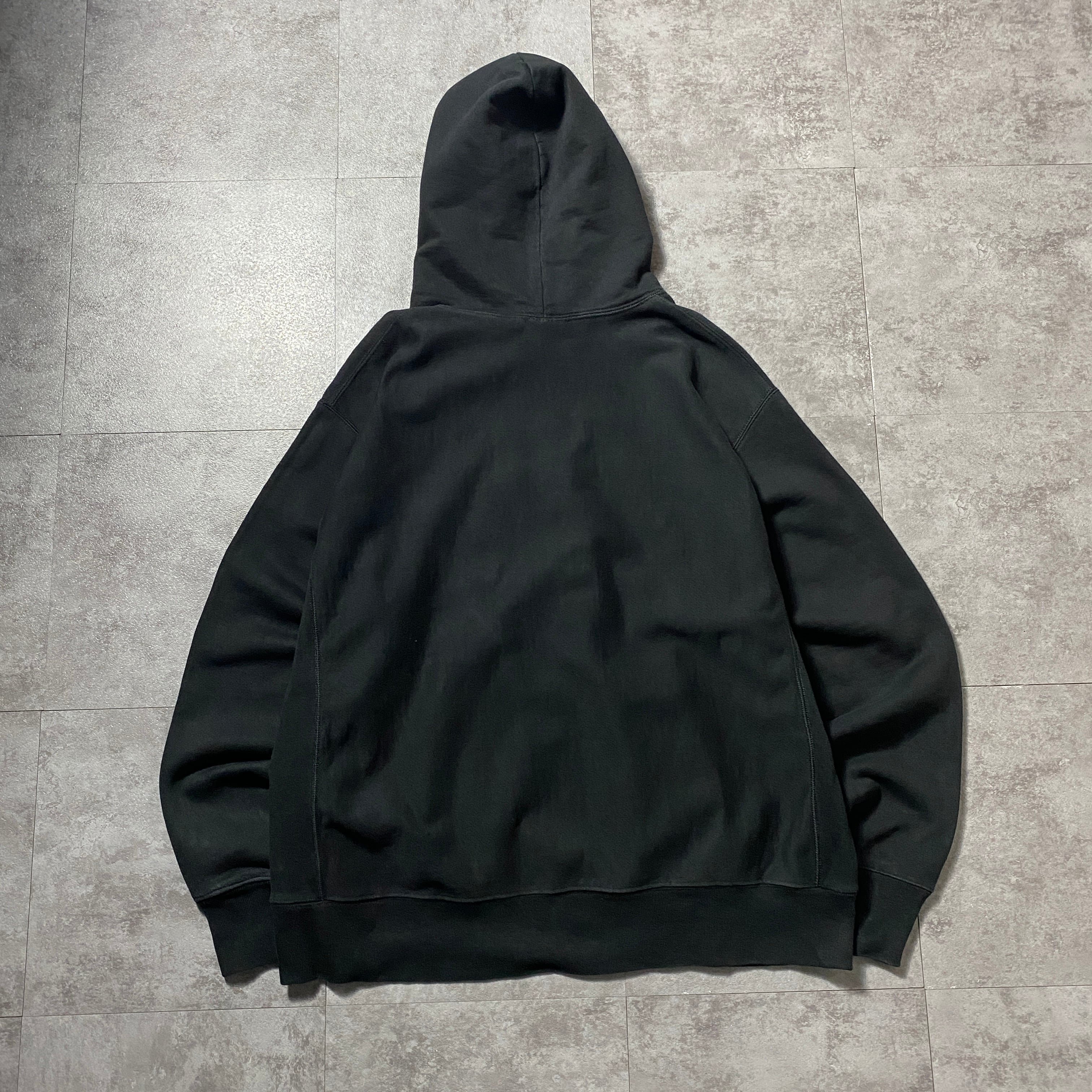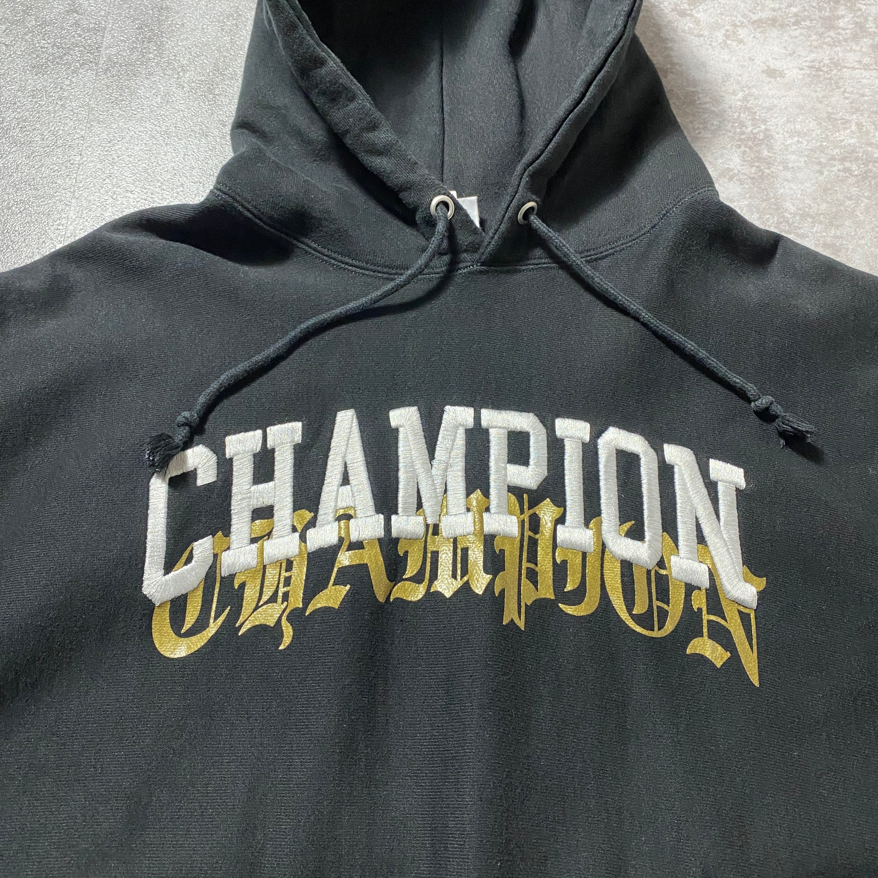 【Size.XL】00's Champion チャンピオン リバースウィーブ 刺繍×プリント ヘビーオンス ブラック スウェット パーカー