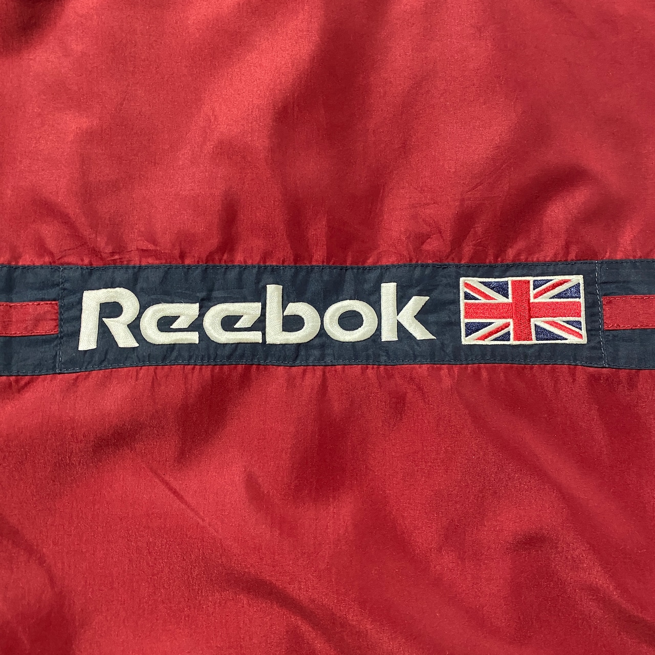 90's Reebok リーボック 刺繍ワンポイント バックロゴ ワインレッド ナイロンジャケット