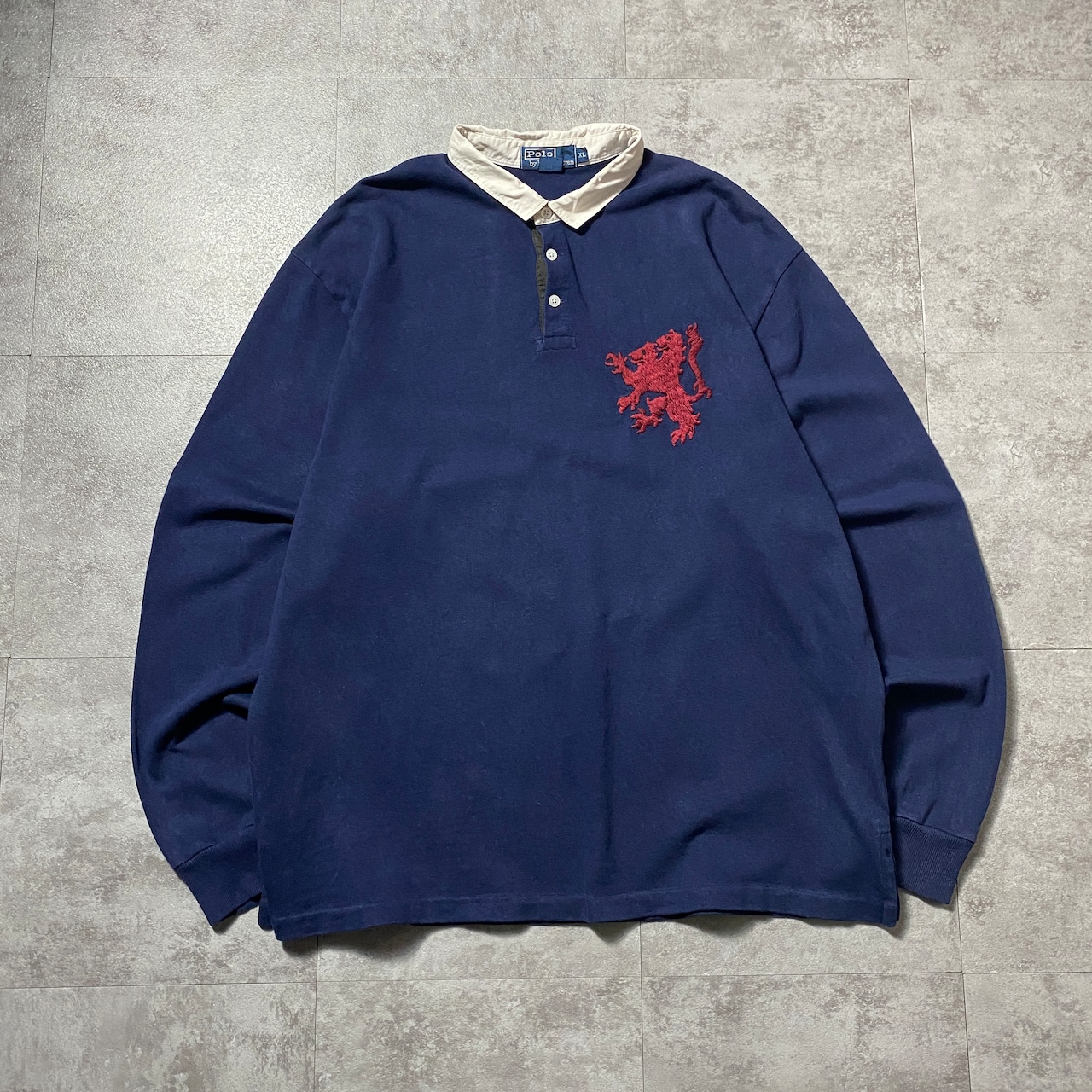 【Size.XL】Polo by Ralph Lauren ポロバイラルフローレン ライオン 刺繍ロゴ ネイビー ポロシャツ ラガーシャツ