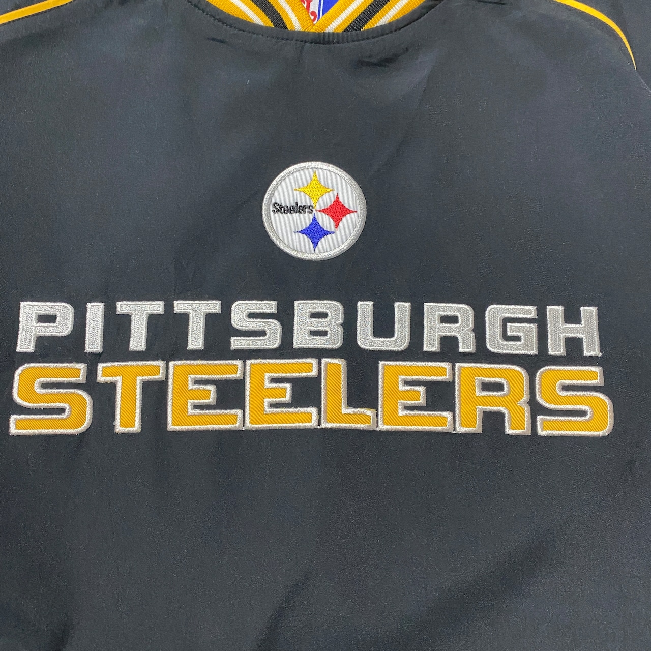 Reebok NFL Steelers リーボック スティーラーズ チームロゴ ラインリブ ブラック ナイロンプルオーバー