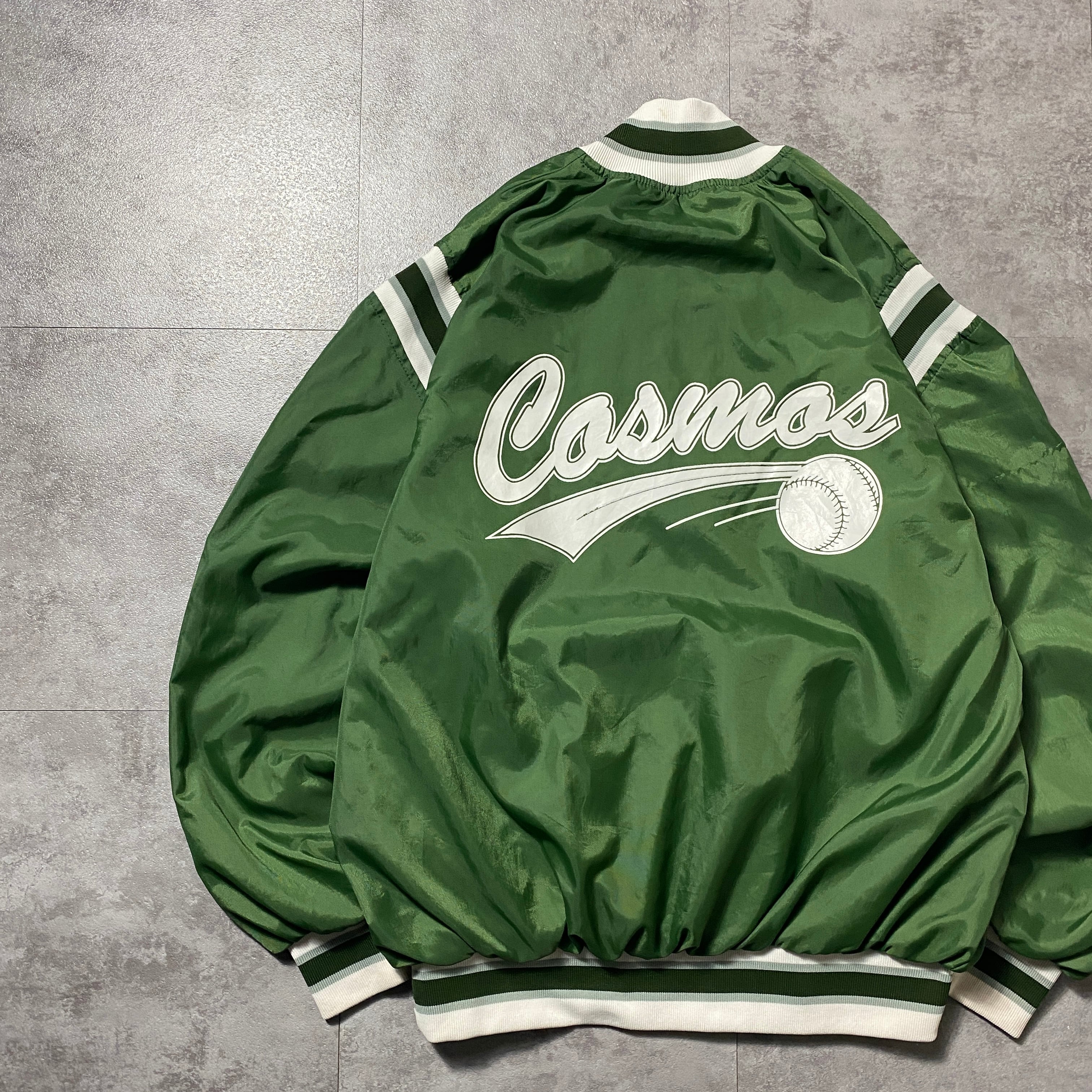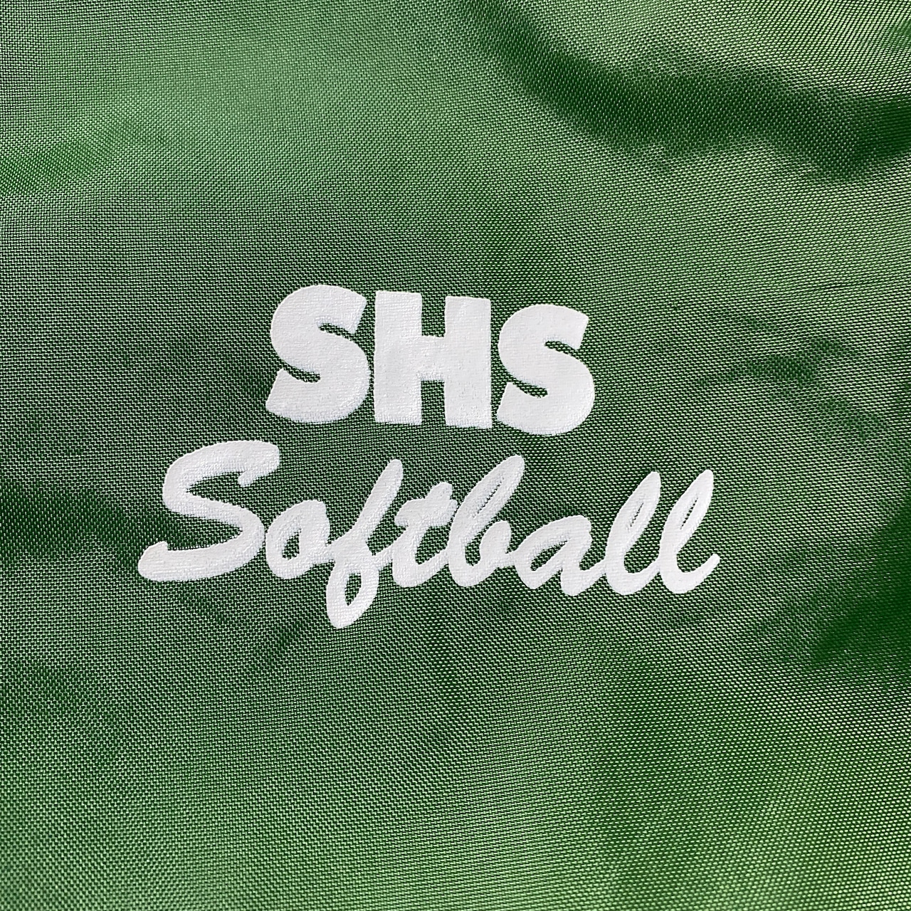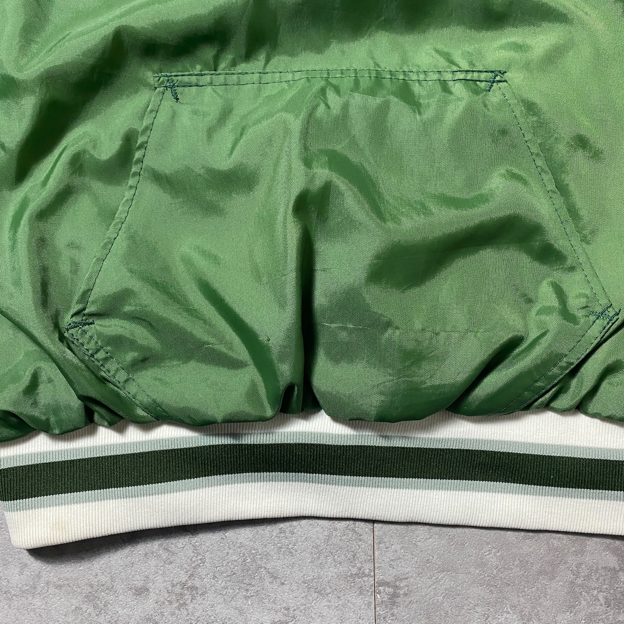 【USA製】00's Birdie ハーフジップ バックプリント ラインリブ グリーン ナイロンプルオーバー