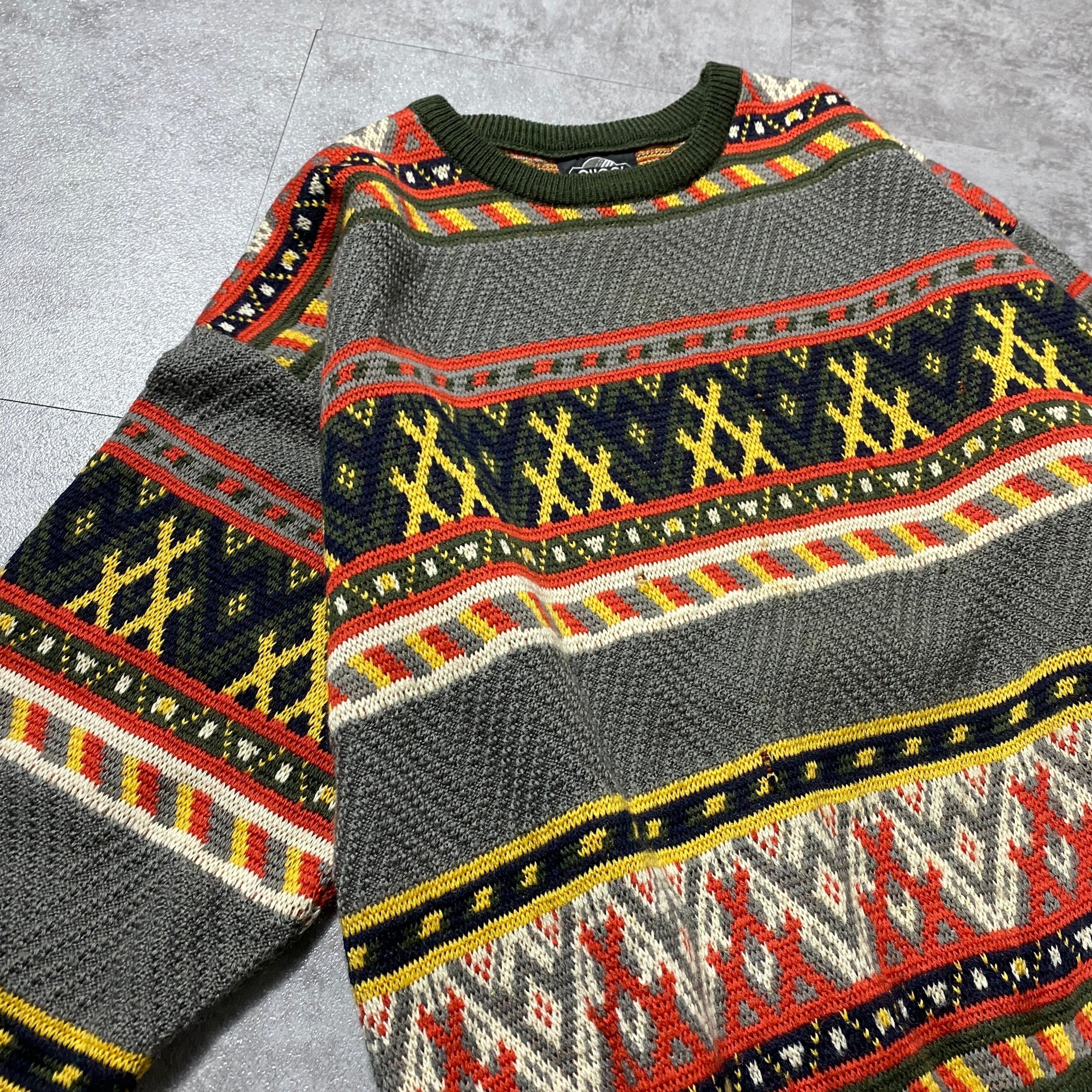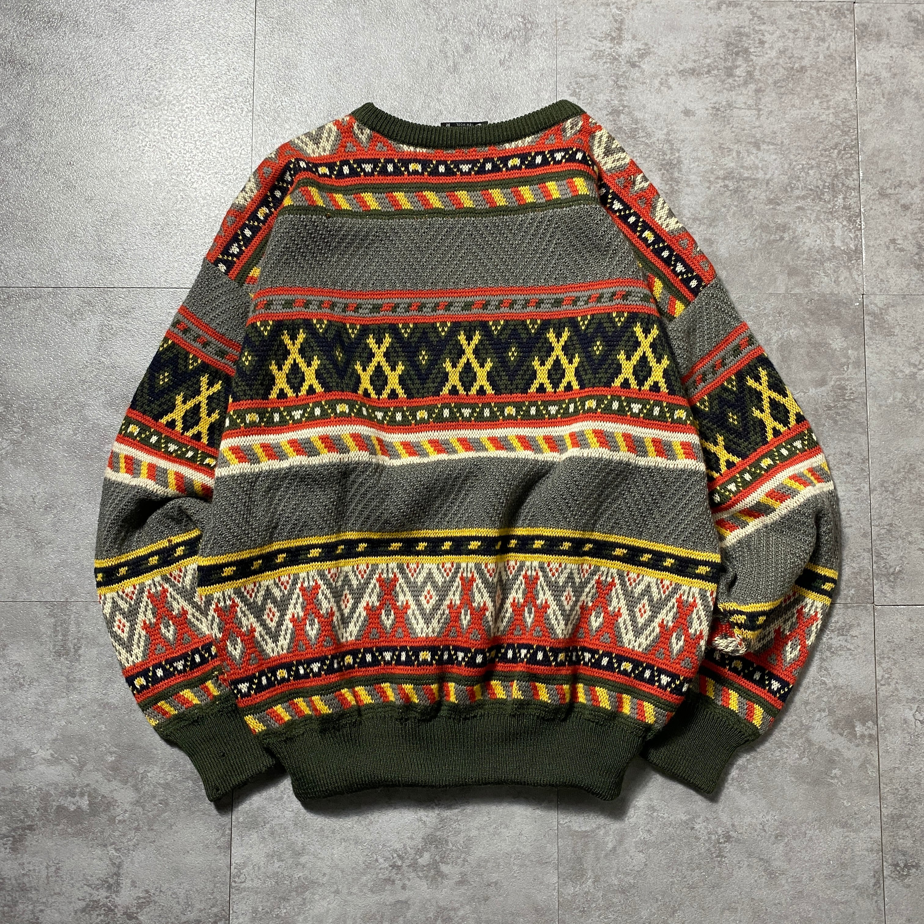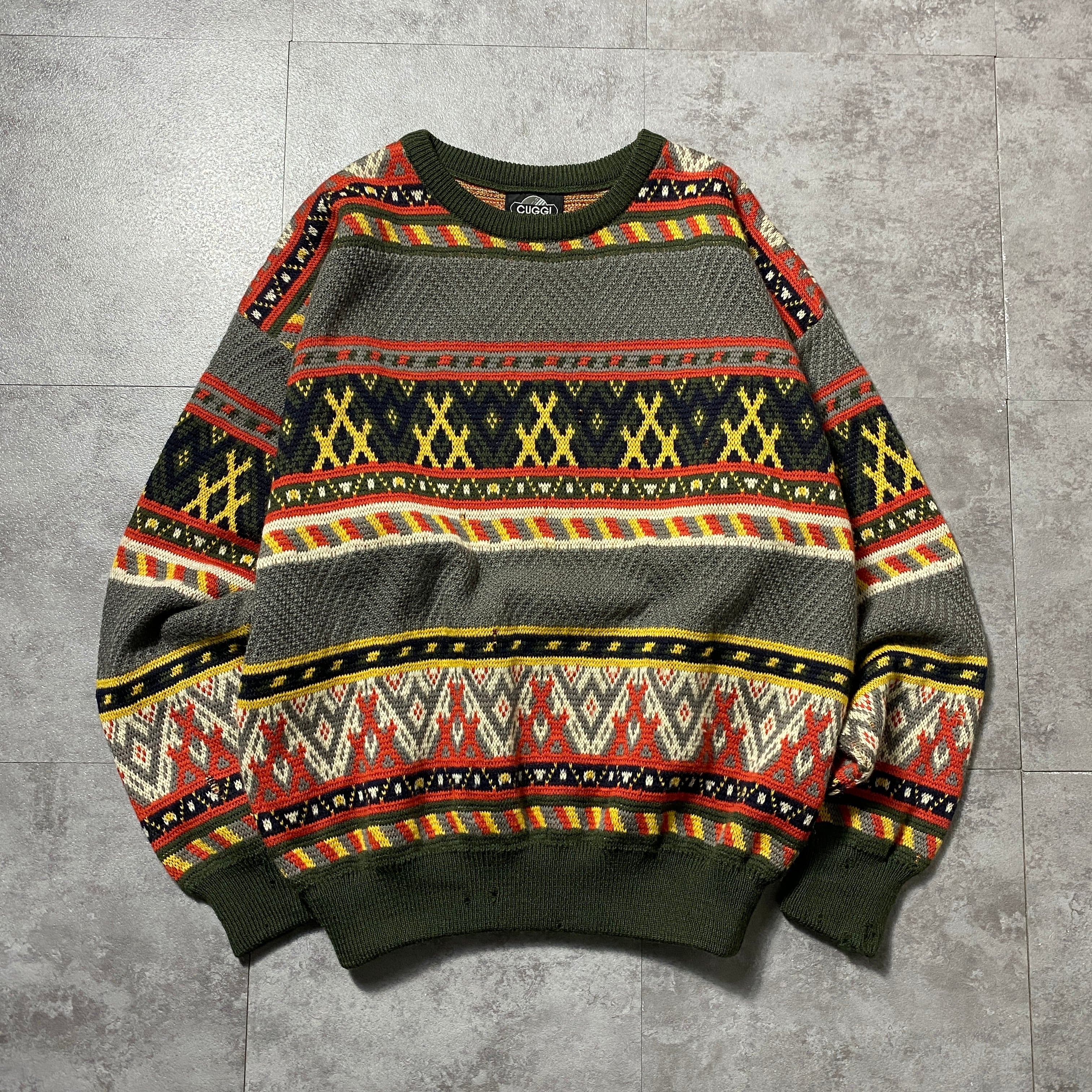 80's CUGGI オールドクージー 旧タグ ノルディック柄 総柄デザイン ウール ニット セーター